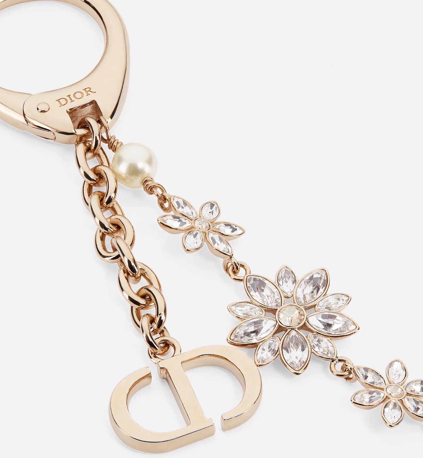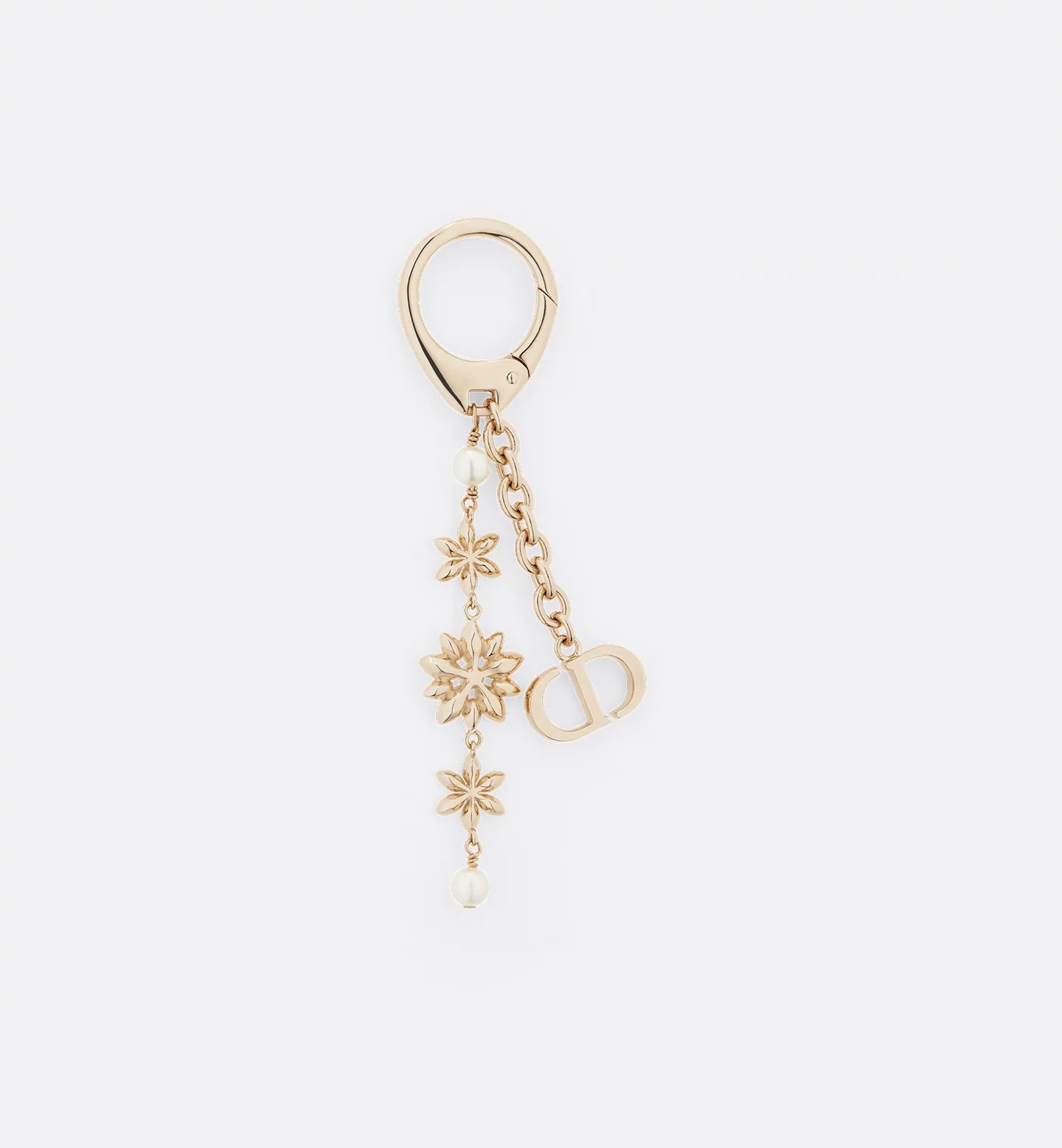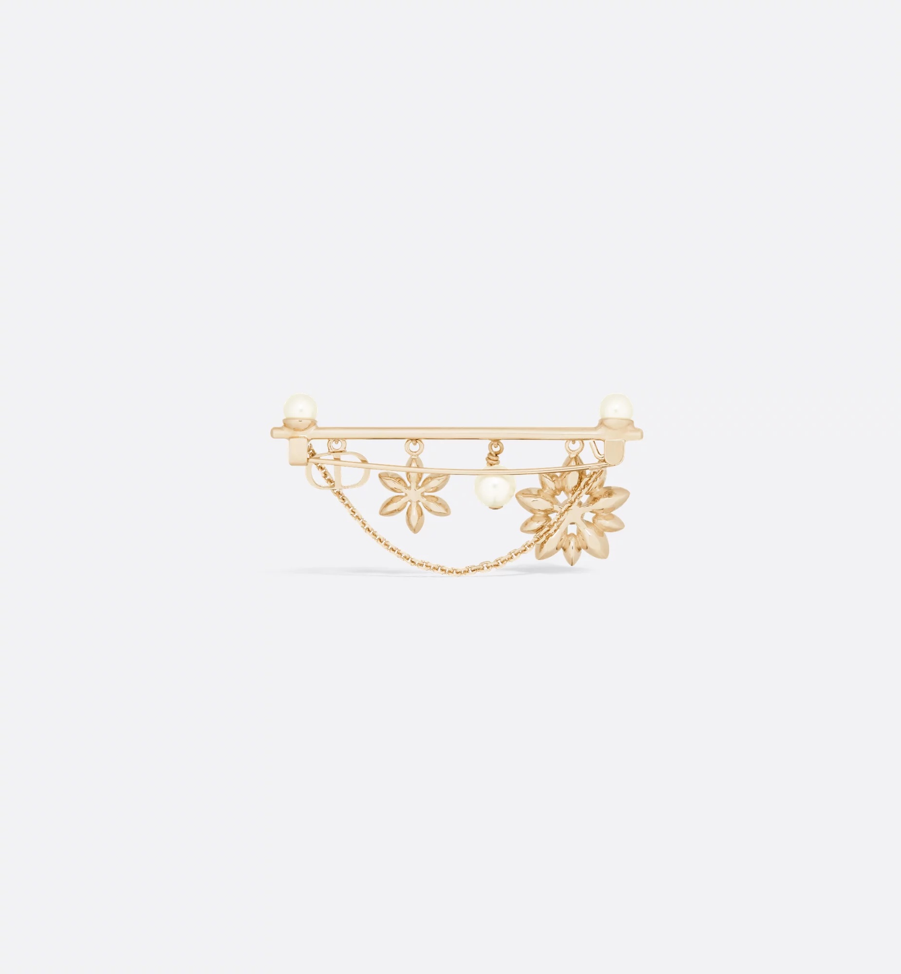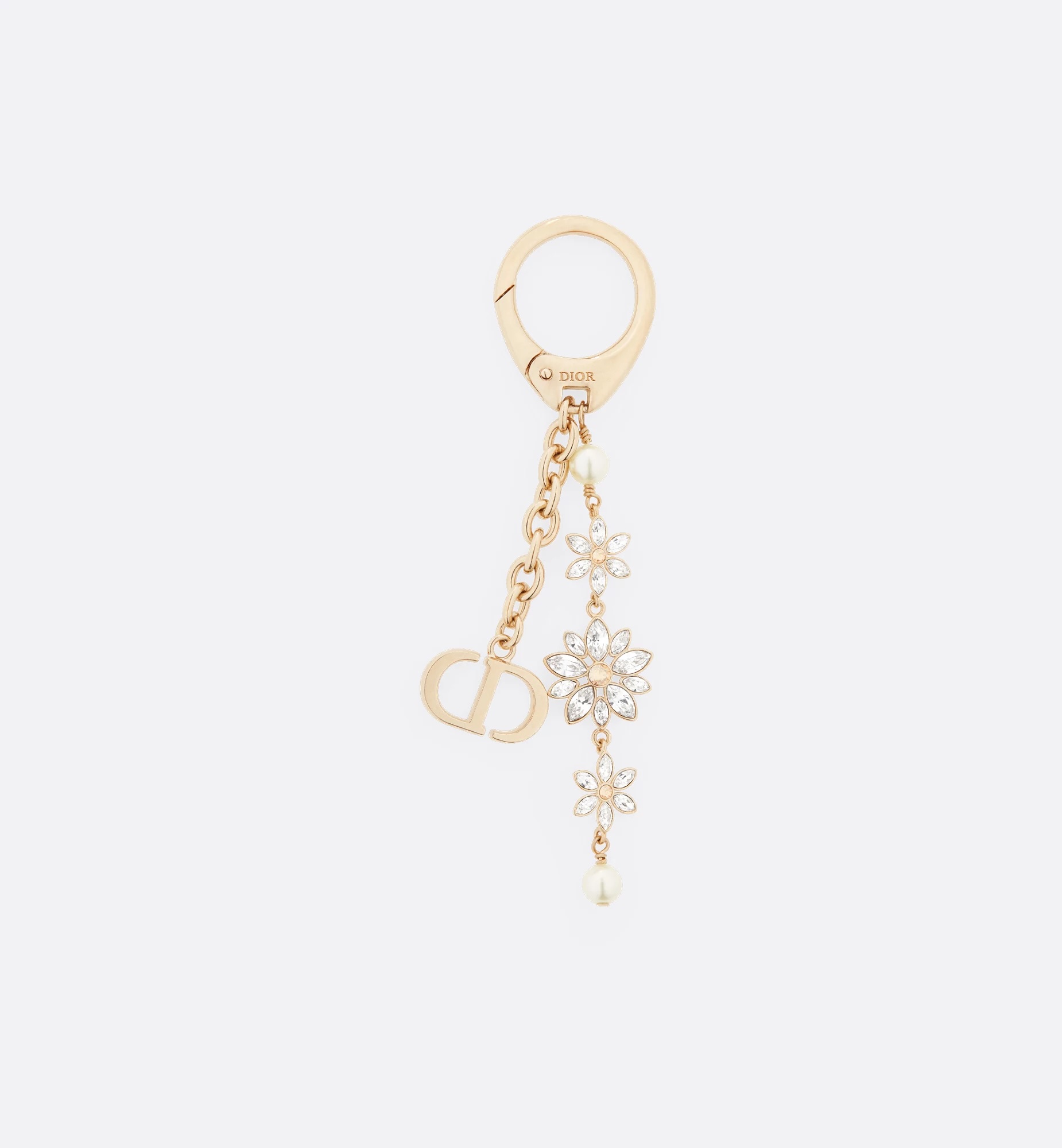 Fleur de Glace 來自 2026 度假系列新品,以小雛菊元素為題,以淡金色飾面金屬製成,兩朵花朵的花瓣為銀色水晶,中央鑲嵌一顆金色水晶,搭配金色飾品金屬鏈手鏈,上面有金色和銀色水晶點綴,並飾有 CD 標誌,設計饒富詩意,精緻高雅,包含手鍊、胸針、項鍊、包款吊飾、以及耳環等。