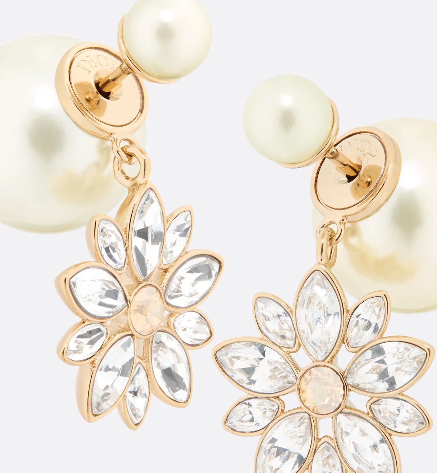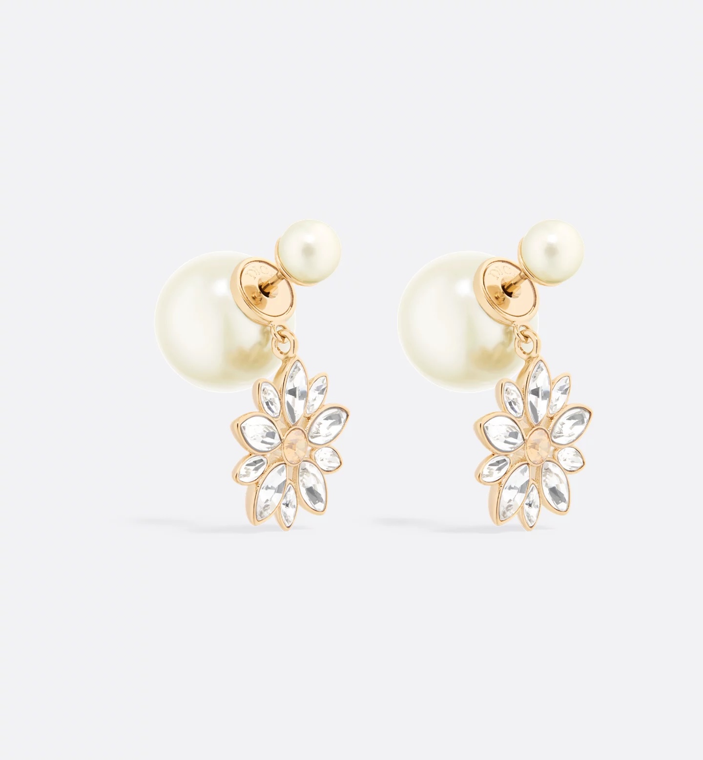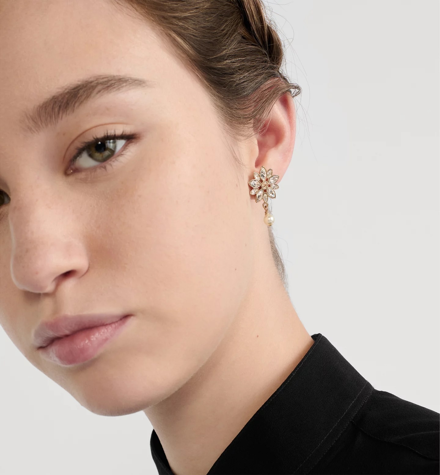 耳環的部分則有多款選擇,像是小花串連大花的造型、搭配白色樹脂珍珠的款式、還有不對稱設計:一側點綴白色樹脂珍珠,另一側點綴 CD 標誌款式。