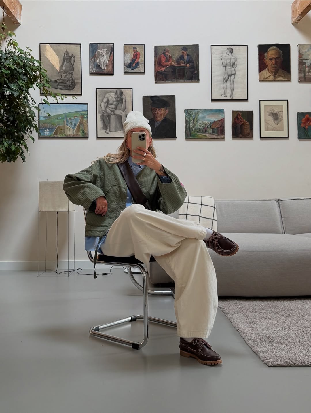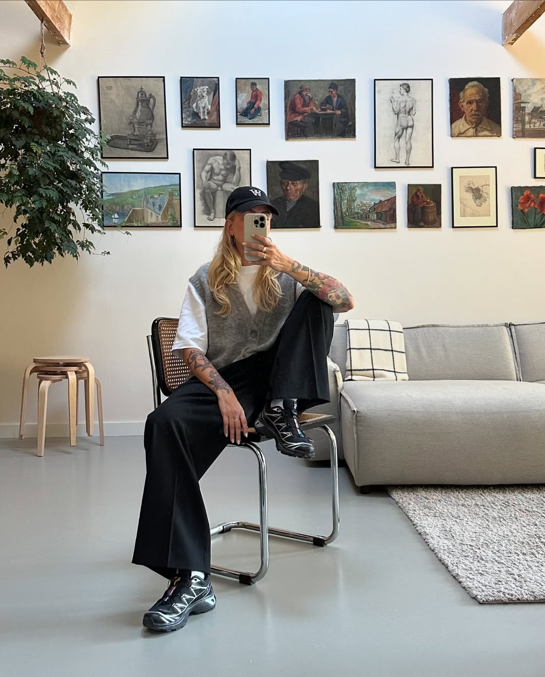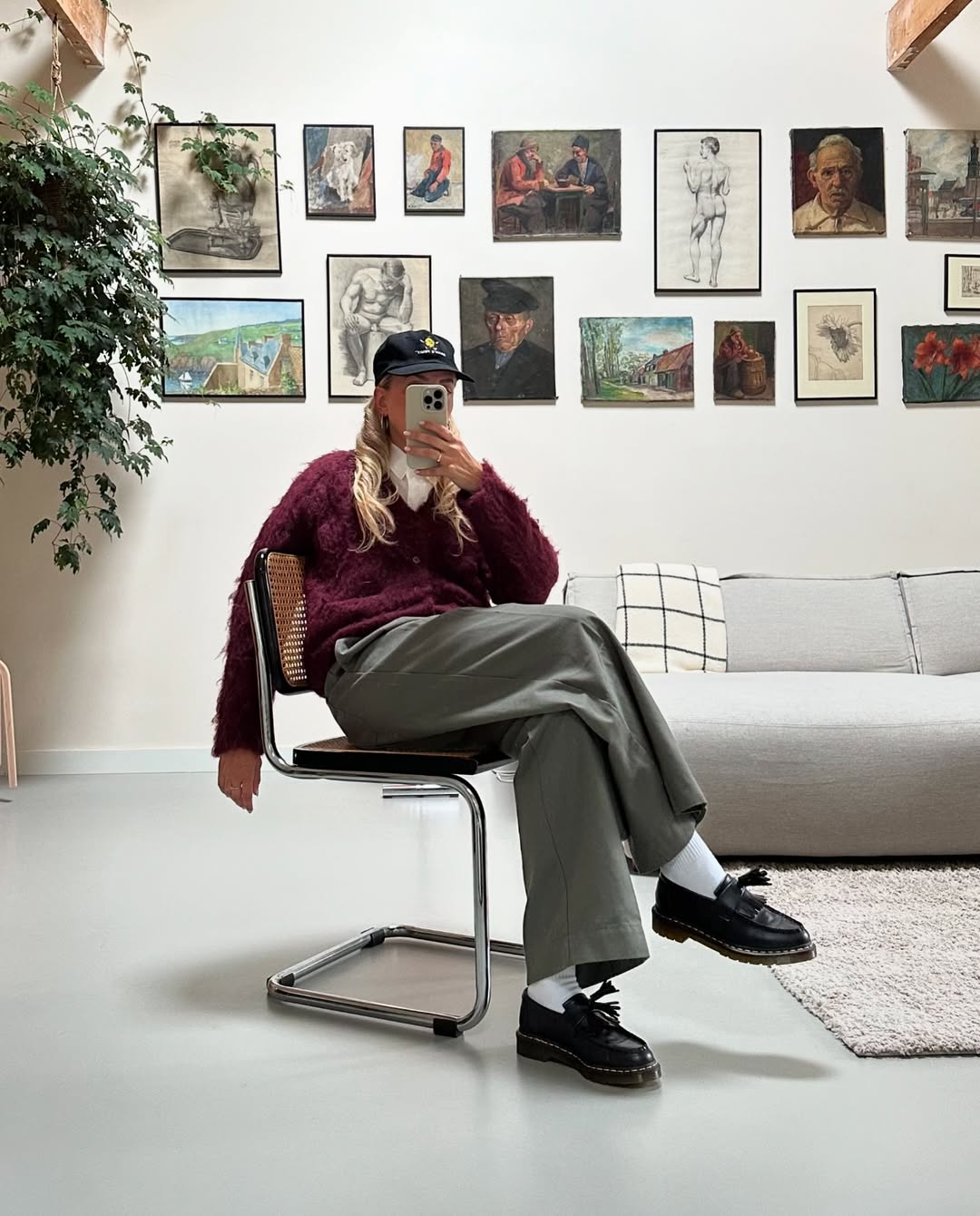 最初會被 Coco Rachèl 吸引不全然是因為她的穿搭風格,還有她對鏡子自拍流露出的隨性氣息,肢體輕鬆卻很有態度,讓造型大大加分,看了也好想跟她穿一樣,比如她會搭靠在椅背上,讓雙腳自然延伸或翹個二郎腿,整個身體形成一個自然隨性的姿態,地板再放個大包,每日在家的時尚大片就出來了。