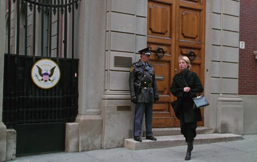 此外,她在電影中的造型也令人難忘,比如在電影《Great Expectations》(烈愛風雲/愛情有刺)中的綠色套裝,這一套出自品牌 Donna Karan 1996 春夏系列,她單穿襯衫,並只扣了中間一顆鈕扣,營造出 V 領,小蠻腰若隱若現,搭配帶跟的涼鞋與手袋,極簡時髦。