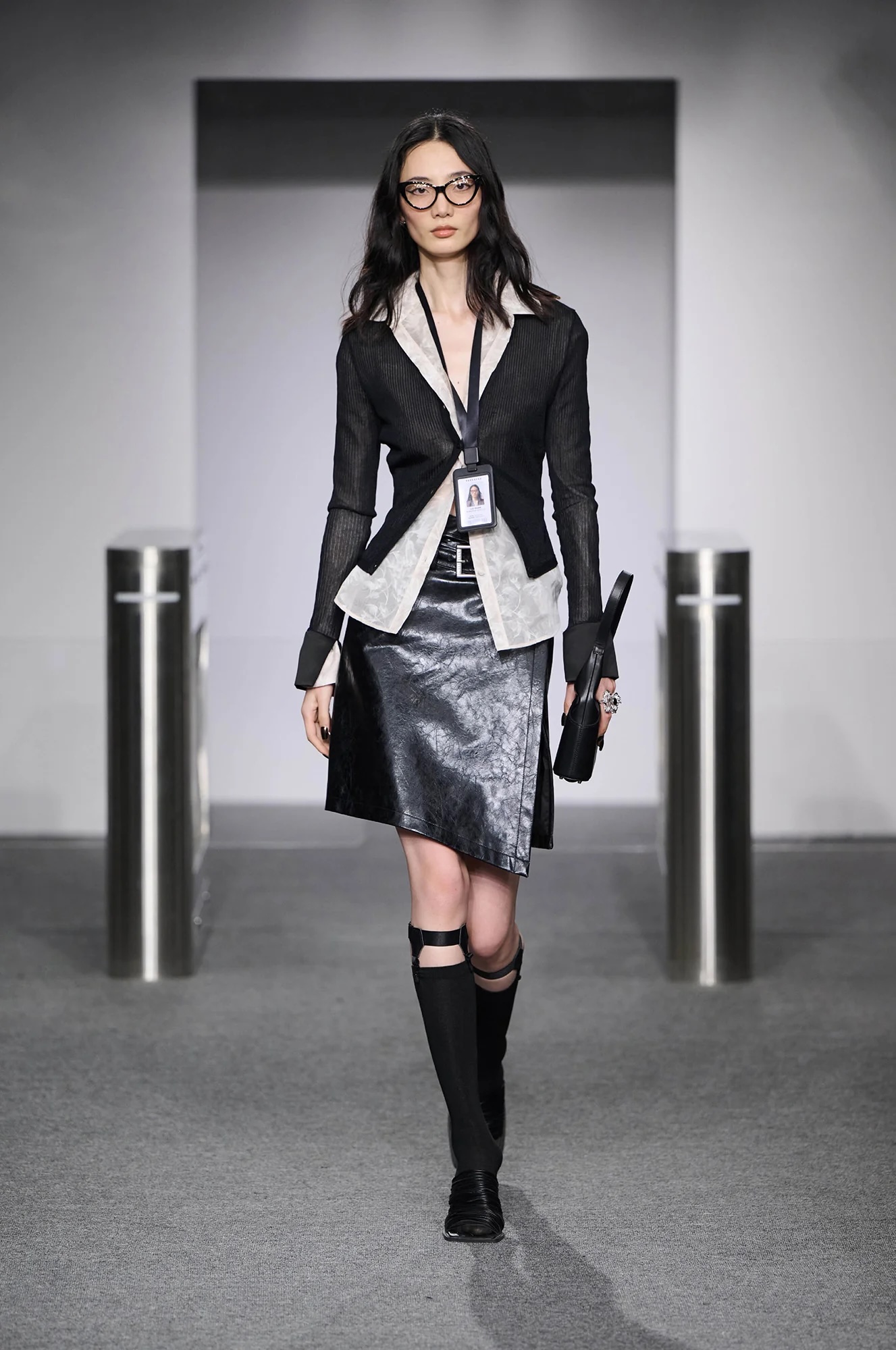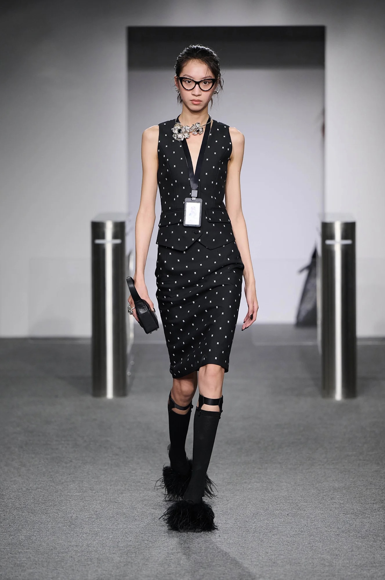 新晉設計師品牌 Markgong 2024 春夏系列,更直接向 Geek Chic 致敬, 以《Sex and the City》(慾望城市 / 色慾都市)裡的 Samantha Jones 一角作為本季靈感來源,塑造出幹練且獨立的辦公室女性形象。
