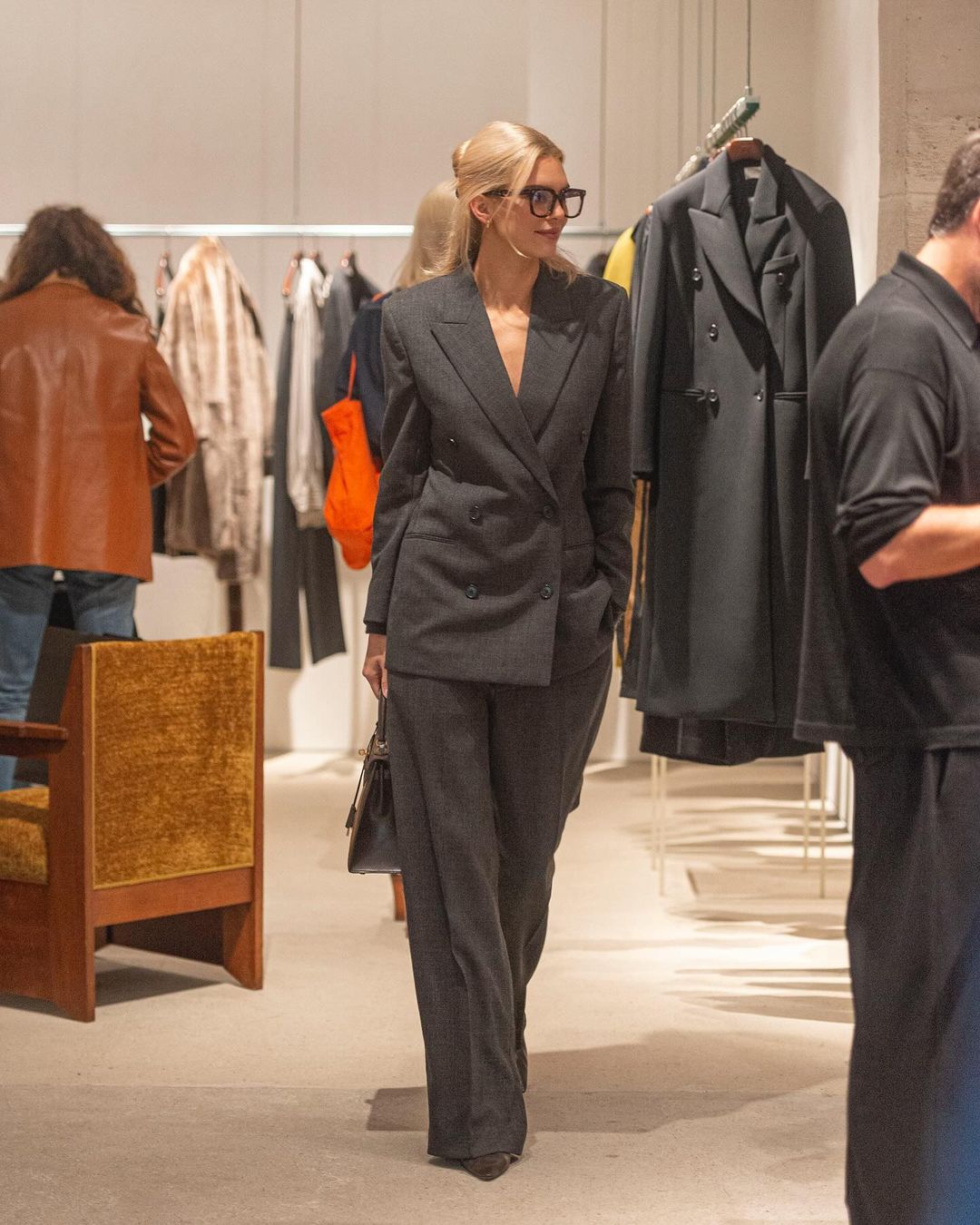 其他像是 Kendall Jenner、Hailey Bieber 則是更以寬肩西裝外套搭配眼鏡,穿出了聰明人的風範。