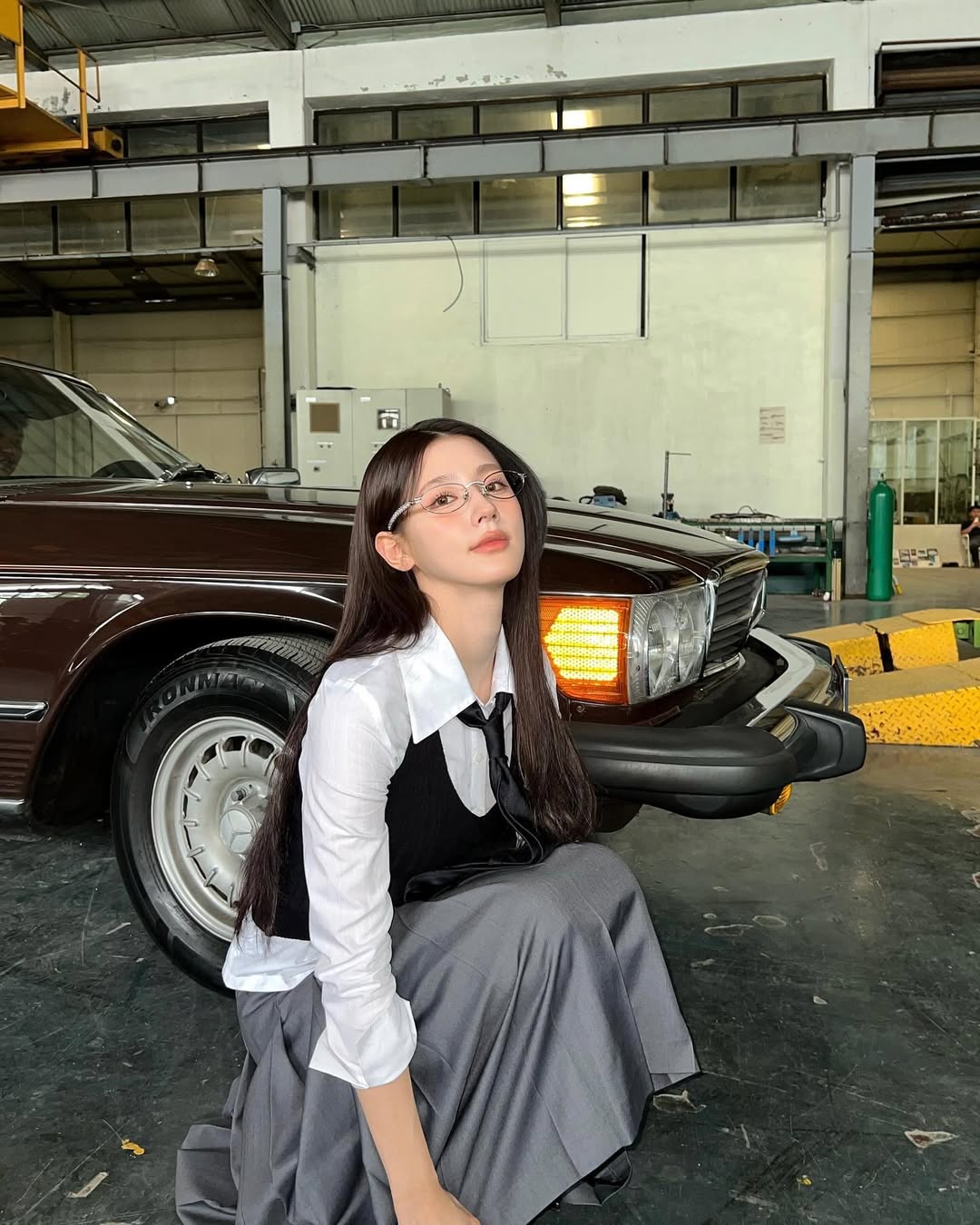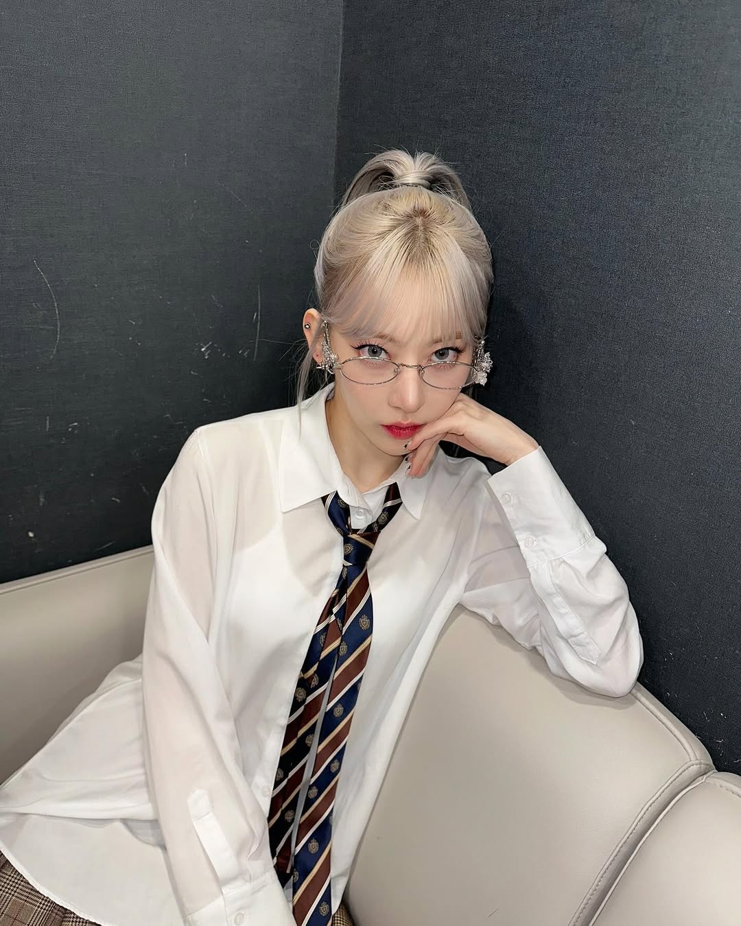 當然,韓國明星們也是這波風潮的帶貨王,從原先一頭熱的 Y2K 風突然轉向,紛紛嘗試了 Geek Chic,像是 Jisoo、IVE 回歸的造型都很有時髦書呆子的味道。