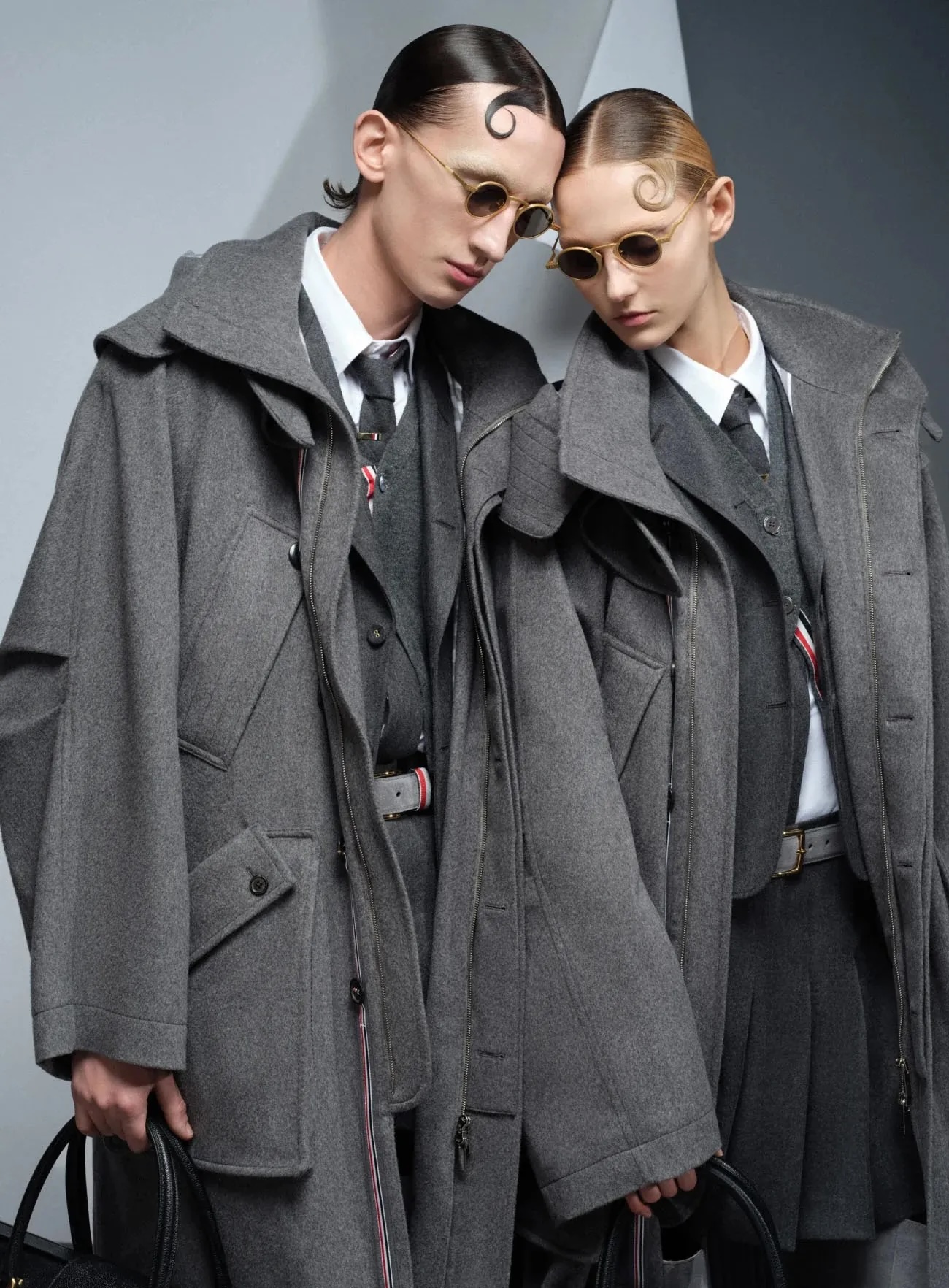 Thom Browne 雖不屬於傳統意義上的 Geek Chic,比起低調的書卷氣,他的美學更加張揚,但由於源自制服與學院風格,兩者有著相似的服裝語言,在某種程度上對 Geek Chic 風潮也有推波助瀾的作用。