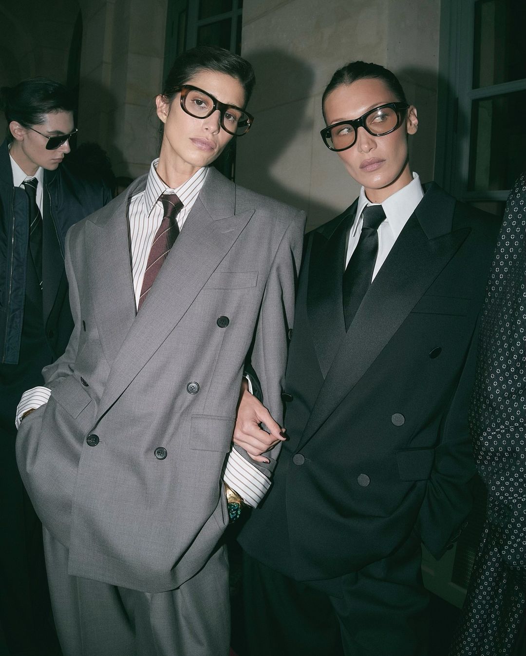 時尚要從 T 台走入民間,最直接的方法就是依靠名人效應。在名人之中,Bella Hadid 無疑是最會演繹 Geek Chic 的代表,她多次身穿鉛筆裙、窄身襯衫或 Oversized 西裝,搭配眼鏡現身街頭,把正裝穿得叛逆高級、性感又時髦,妥妥的時髦書呆子。