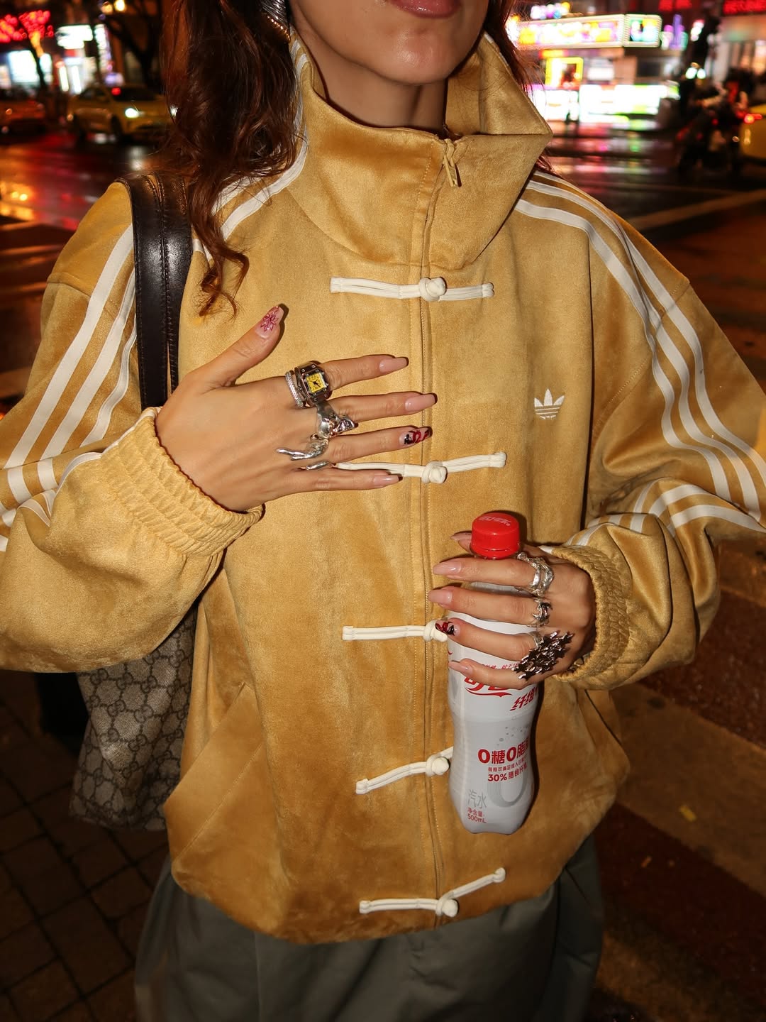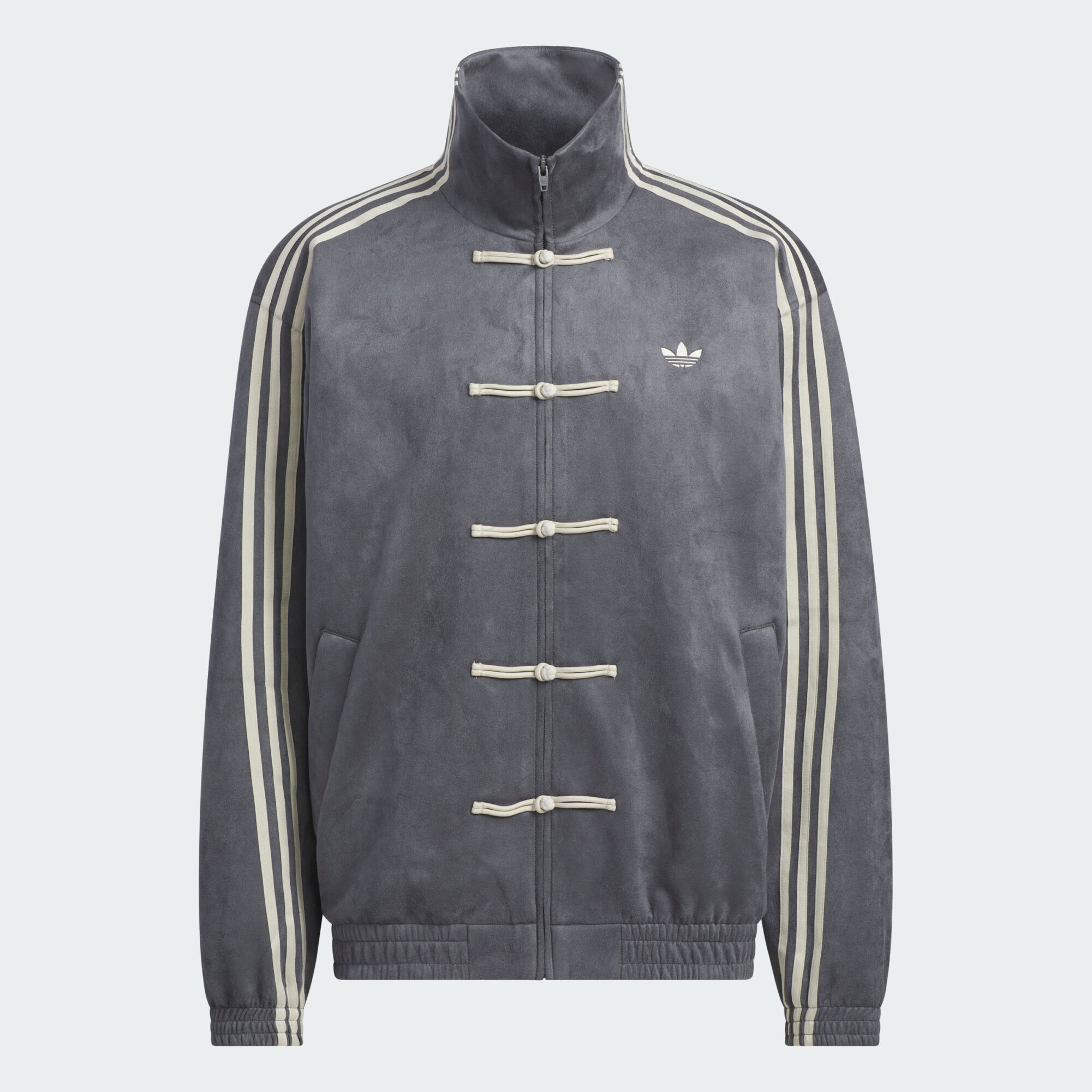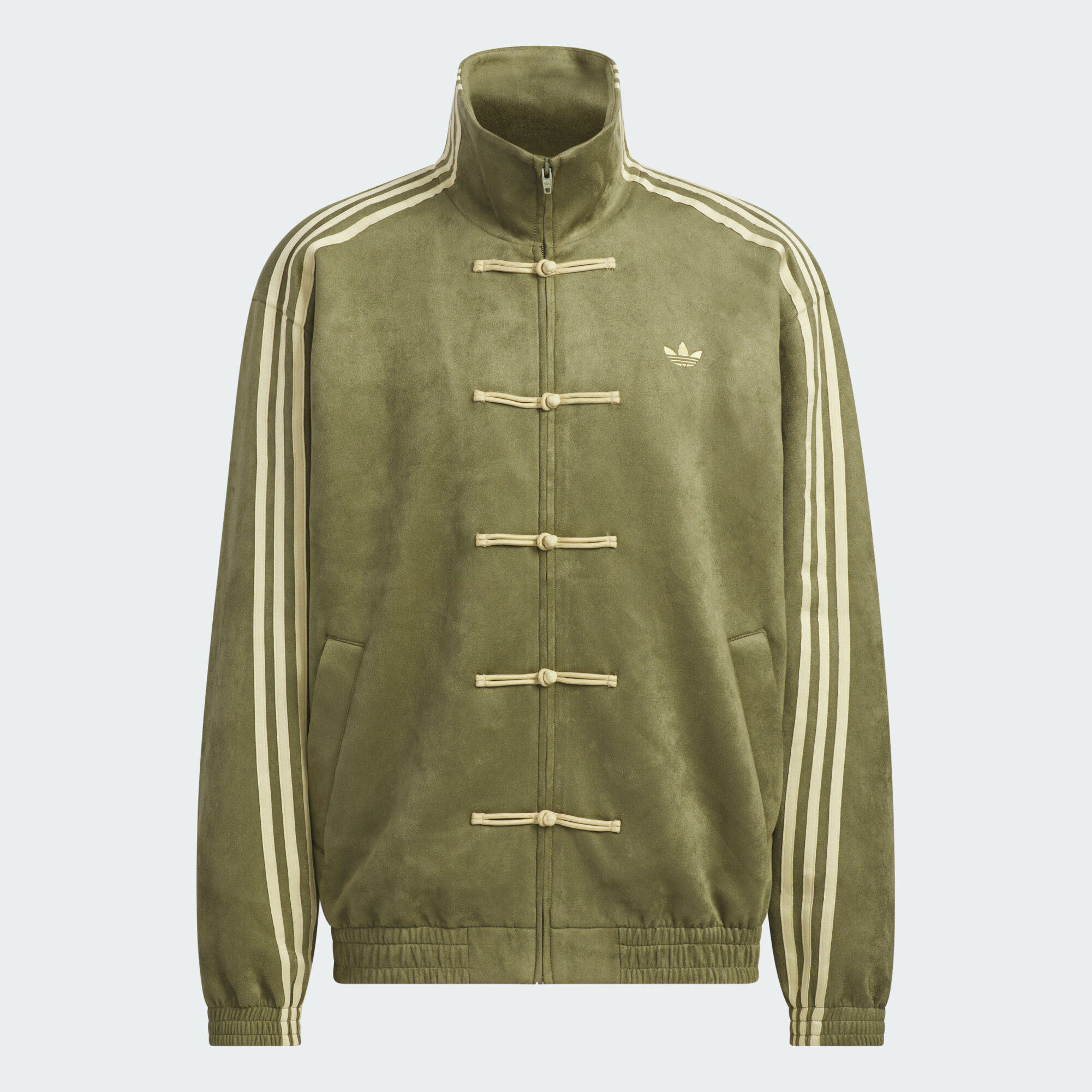 這款 adidas Originals「三葉草新中式外套」為柔軟麂皮絨面,將唐裝立領、盤扣細節結合adidas 經典三條線,帶來令人耳目一新的「新中式運動風」,共推出磚紅、天青、墨綠、煙灰與薑黃等配色。