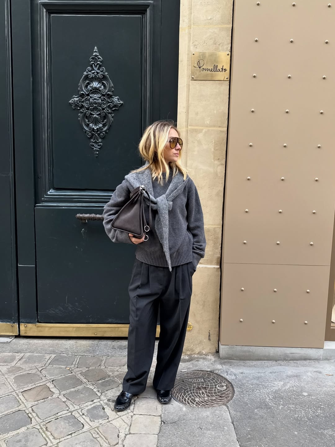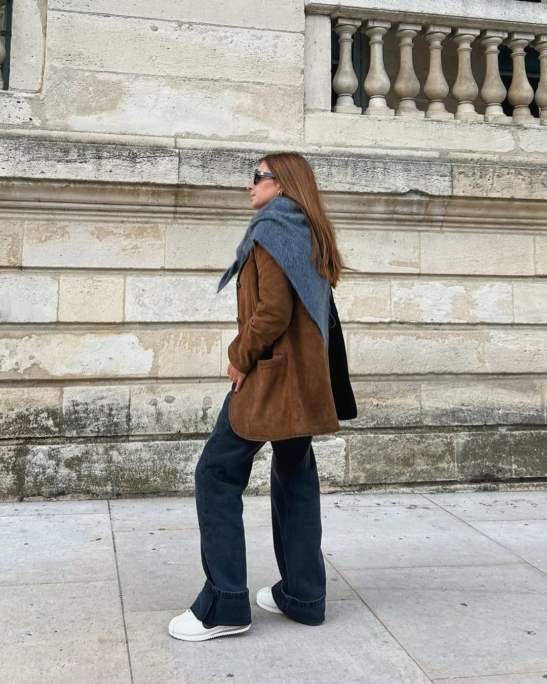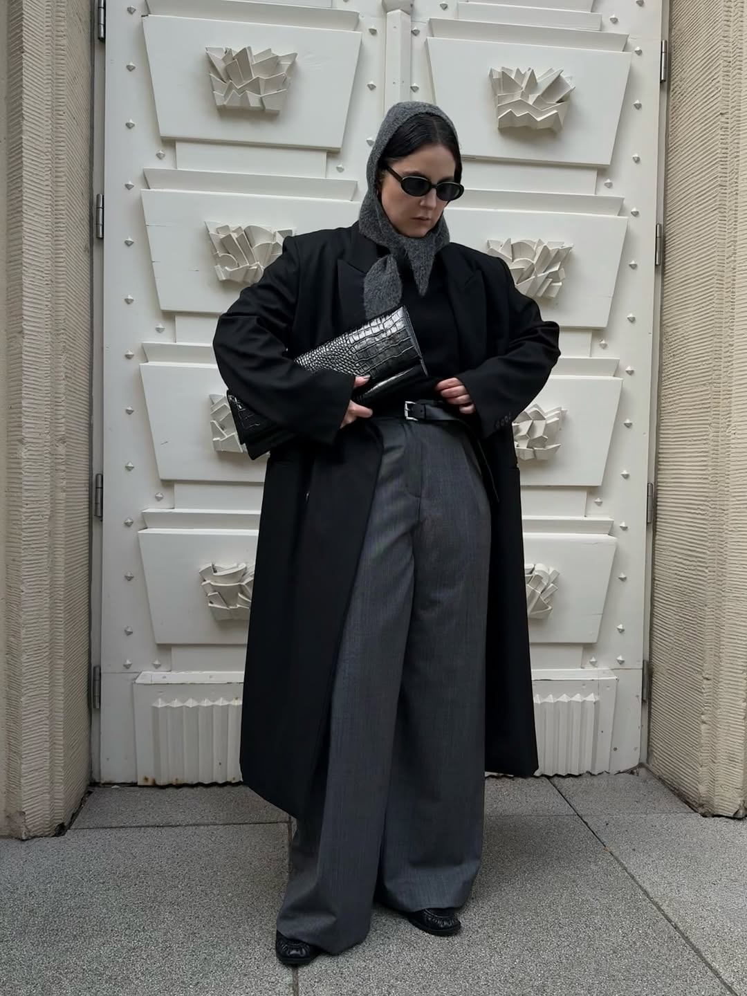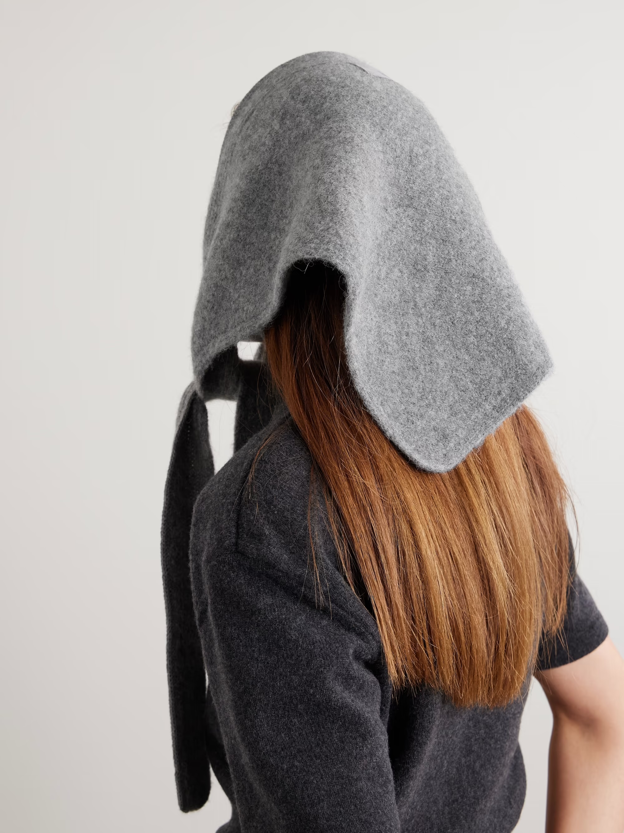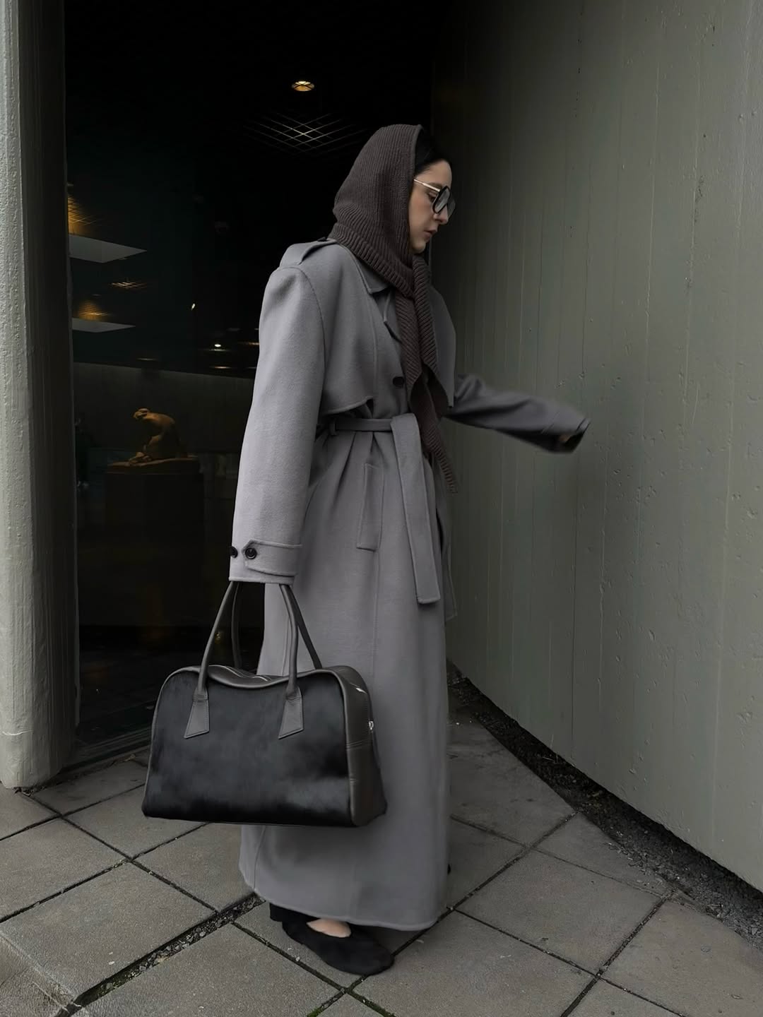 上回介紹 Kendall Jenner 的秋季穿搭時,她身穿 The Row 長版灰風衣,腰間繫了條綁帶加強腰身,裡頭則搭配了同材質的長裙,腳踩樂福鞋與白襪,風格簡約時髦,其中還有個不能忽視的亮點,那就是頭上的配件,仔細一看並不是絲巾,而是從脖子延伸而上的「三角圍巾」,低調地為造型增添亮點。