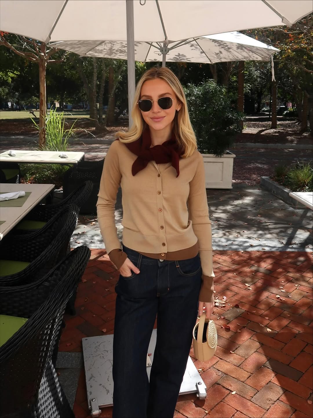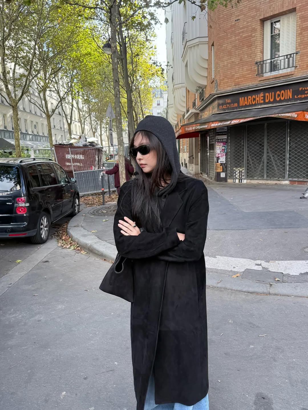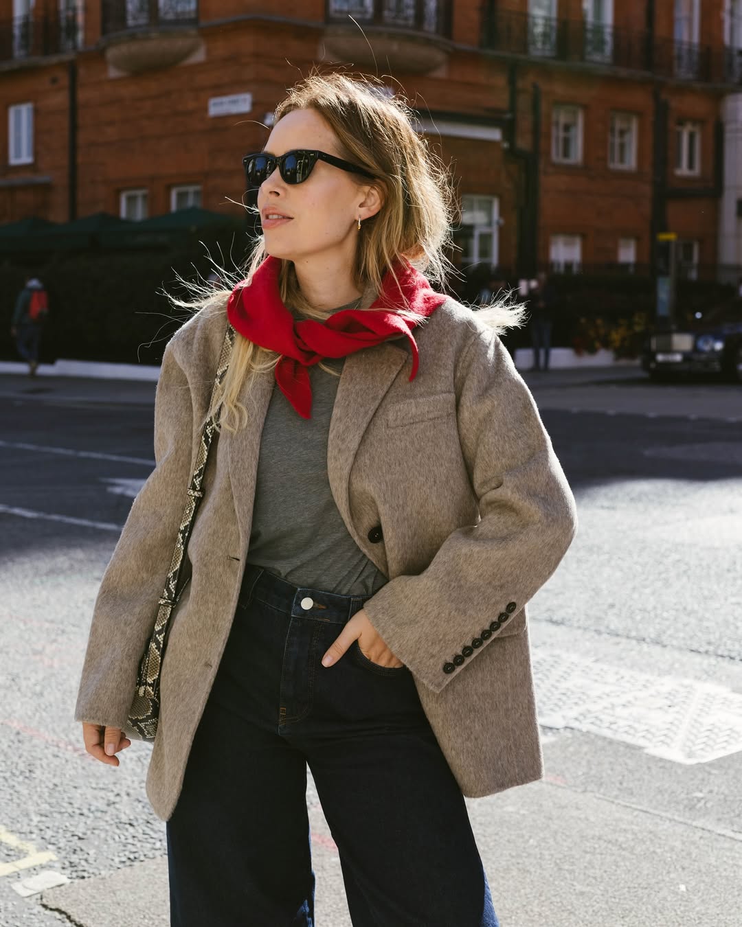 這個時尚的配件也在 Jennie 身上看到了,相較於 Kenadll 的知性高級感,Jennie 把三角圍巾詮釋得既酷帥又隨性,身穿坦克背心與牛仔垮褲,腳上搭配的是時髦的尖頭鞋,剛好中和上身的休閒感,讓造型有點攻擊性、有點態度。