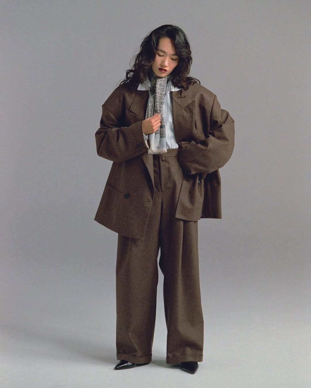 Soshiotsuki 融合了日本傳統服飾與西方正裝剪裁美學,剪裁精準、質感嚴謹,又深具實驗性,造出兼具復古韻味與現代感的新紳士風格。而說到 Soshiotsuki 最迷人的地方,就是很會設計 Power Suit,像是寬肩西裝外套搭配和服領線、或是可拆式袖子、領片,有正裝的結構,卻又比正裝自由、玩味許多。