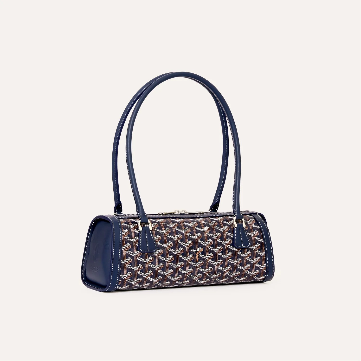 全新 Bonbonnière 包款選用 Goyardine 帆布搭配 Chevroches 小牛皮製成,皮革手柄加長設計,想手提或肩背都沒問題,還可以橫向或縱向背。