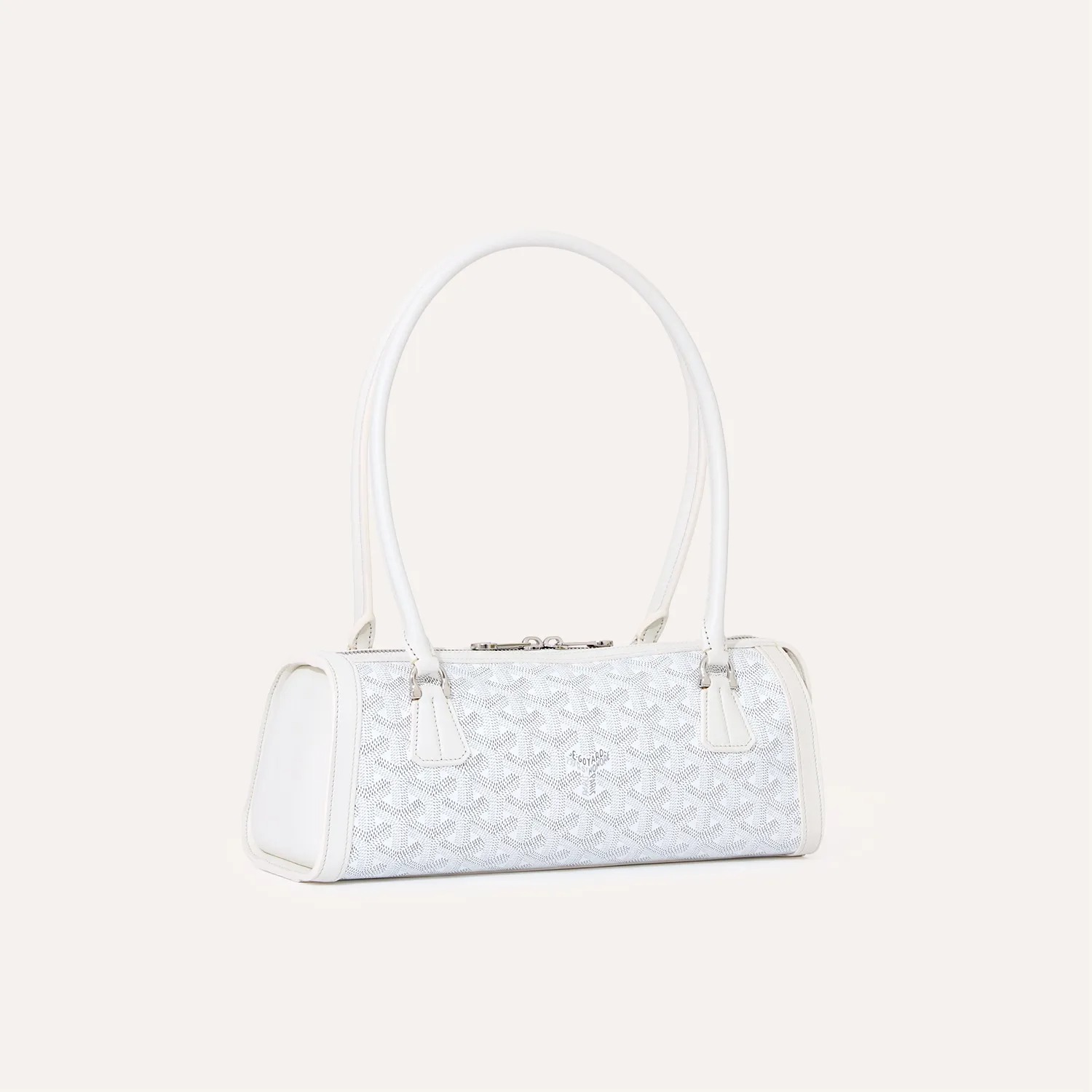 近年的包款越來越往橫向發展,像是爆款的 Miu Miu Arcadie、Alaïa Le Teckel 都是如此,最近在 Goyard 的官網上也發現了一款法棍包,以修長的外型搭配品牌標誌性圖騰,簡約復古,時髦又耐看。