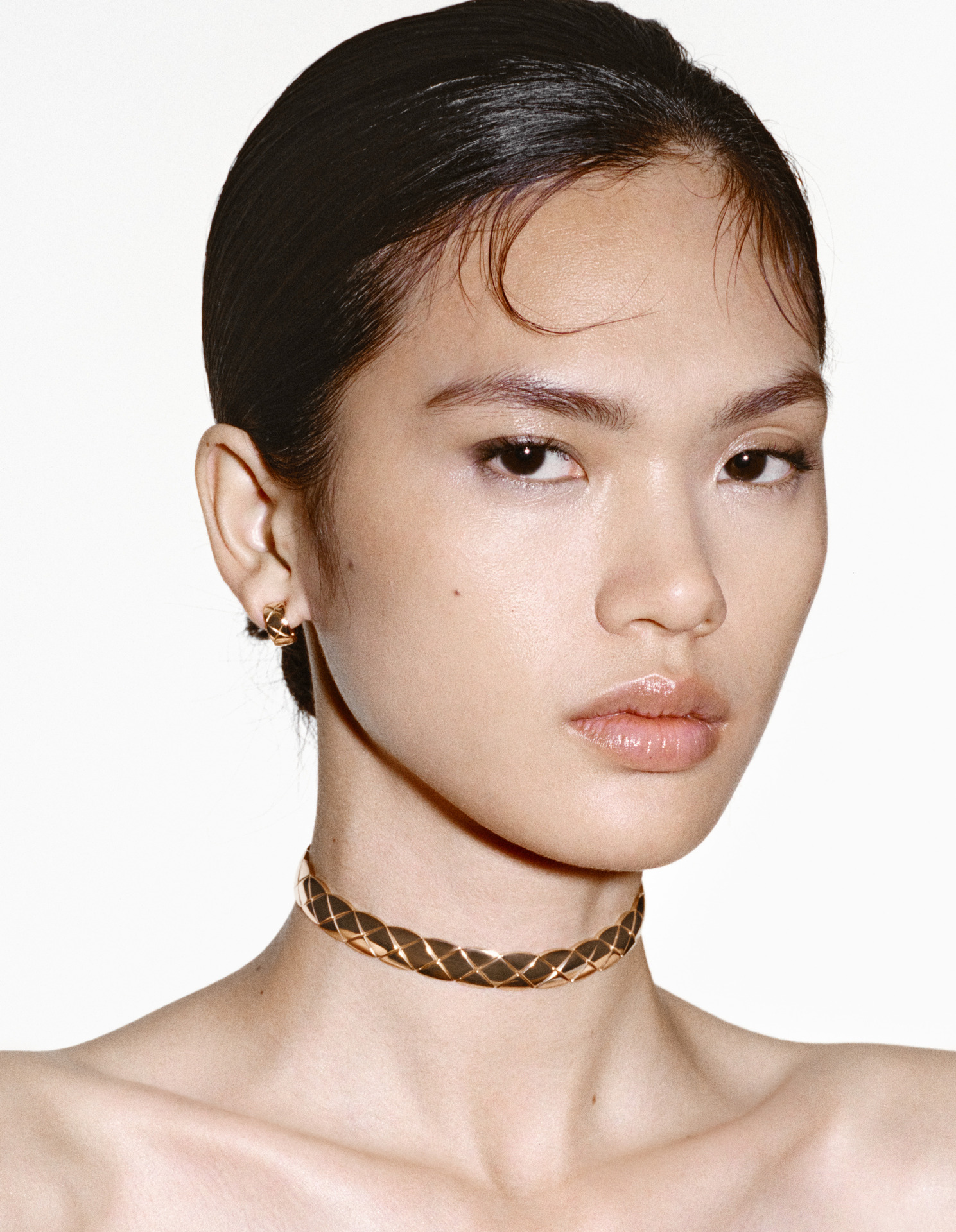 隨著廣告一同釋出的 2026 年新品中,又以兩款講述柔韌之美的項鍊特別引人注目。延續了 Gabrielle Chanel 設計語彙中解放女性身體的「柔軟(Suppleness)」概念,CHANEL 高級珠寶創意工作室為全新 Coco Crush 系列注入前所未有的靈動姿態,帶來柔軟短項鍊與貼合頸鍊兩款全新創作,其菱格紋圖騰以網狀交織鉸接結構,搭配滑扣設計,不僅宛如第二層肌膚的舒適,更能完美貼合身形,可說是鉸接技術與設計風格的雙重突破。