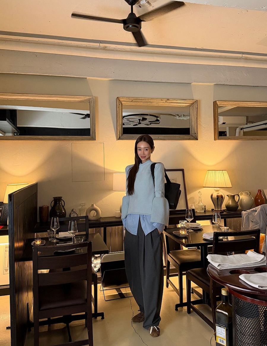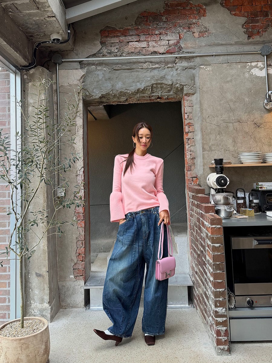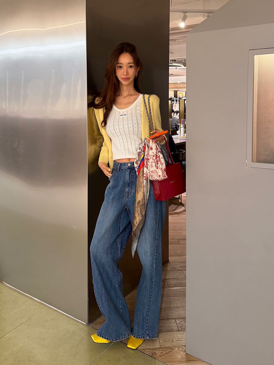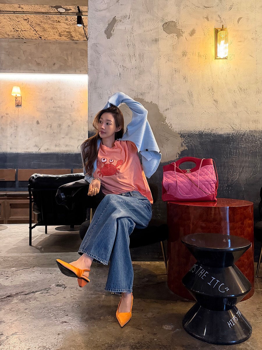 都說喇叭褲和尖頭鞋是打造長腿的一大利器,這對本身就高挑的 Hyo 來說也完全適用。翻開她的穿搭頁面,喇叭褲 / 繭型褲、尖頭鞋的出鏡率有夠高尤其是牛仔喇叭褲配尖頭鞋,有點攻擊性又帶點街頭休閒,搭配合身上衣,不僅有效拉長身材比例,還能使整體線條更加俐落,呈現一股毫不費力的高級感,時髦又幹練。