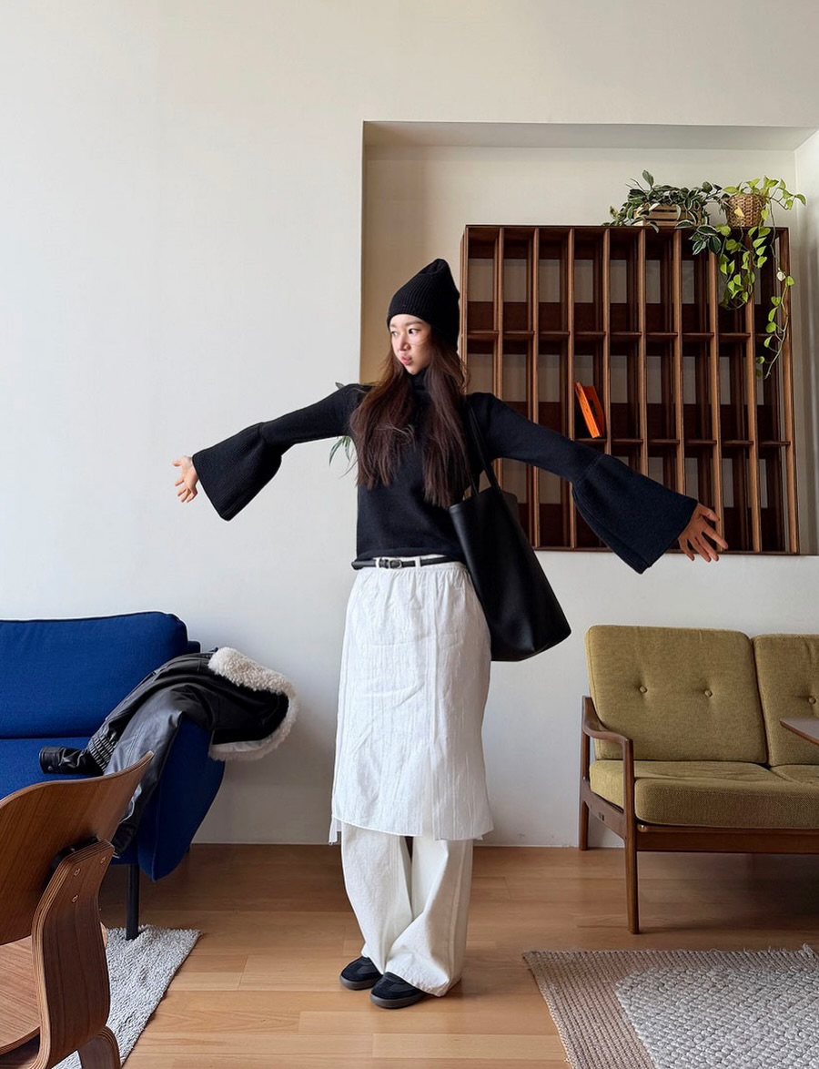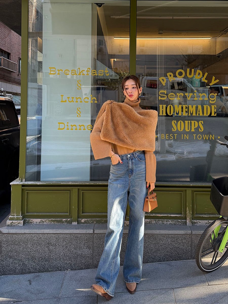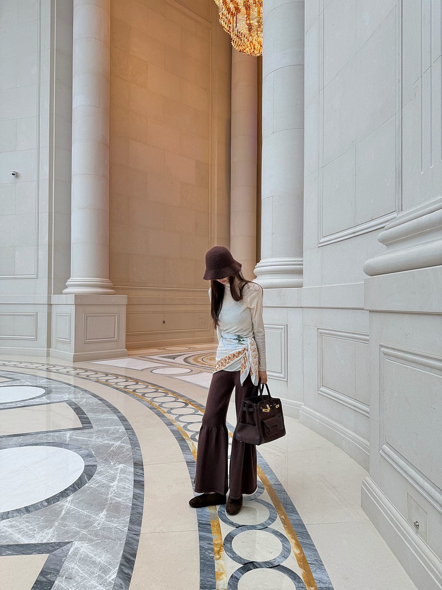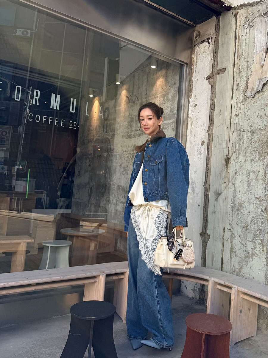 都說喇叭褲和尖頭鞋是打造長腿的一大利器,這對本身就高挑的 Hyo 來說也完全適用。翻開她的穿搭頁面,喇叭褲 / 繭型褲、尖頭鞋的出鏡率有夠高尤其是牛仔喇叭褲配尖頭鞋,有點攻擊性又帶點街頭休閒,搭配合身上衣,不僅有效拉長身材比例,還能使整體線條更加俐落,呈現一股毫不費力的高級感,時髦又幹練。