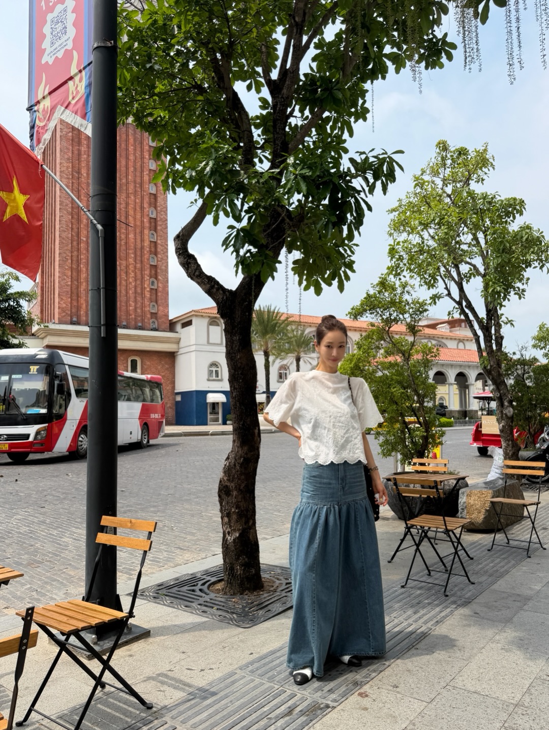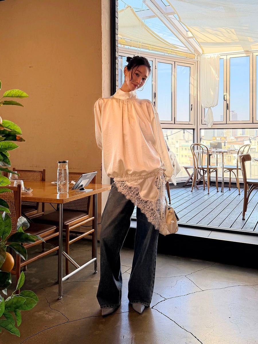 她的穿搭不複雜,而是偏好帶有設計巧思的單品,比如蓬蓬袖上衣、氣球褲、喇叭袖或花邊襯衫,即使單穿一件、不疊搭,也能輕鬆成為造型亮點。