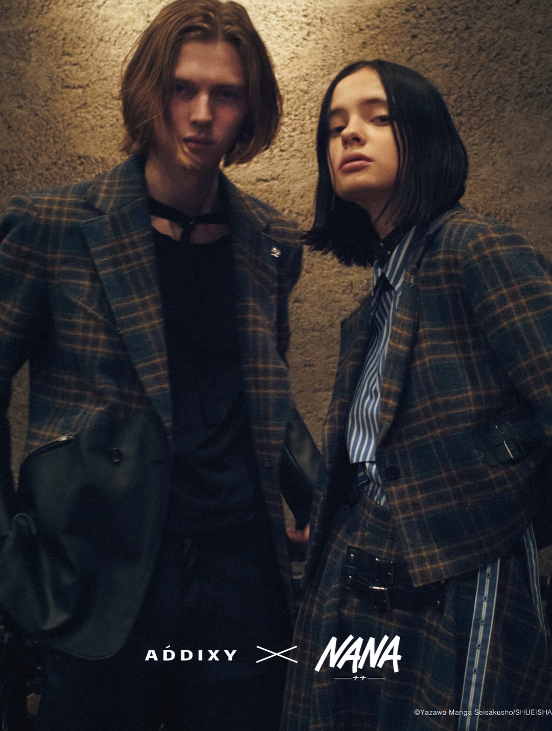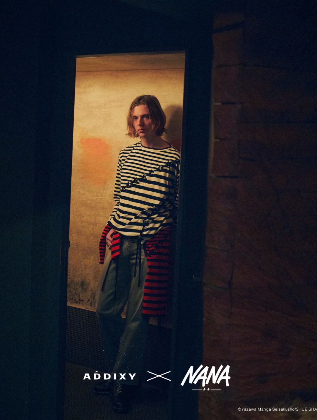 正是這份跨越時間的共鳴,日本服飾品牌 ADDIXY 攜手 NANA 推出全新 聯名系列,以漫畫中的三位核心角色——大崎娜娜(NANA)、本城蓮與岡崎真一為靈感,汲取他們各自鮮明的時尚風格,延伸出一系列單品。