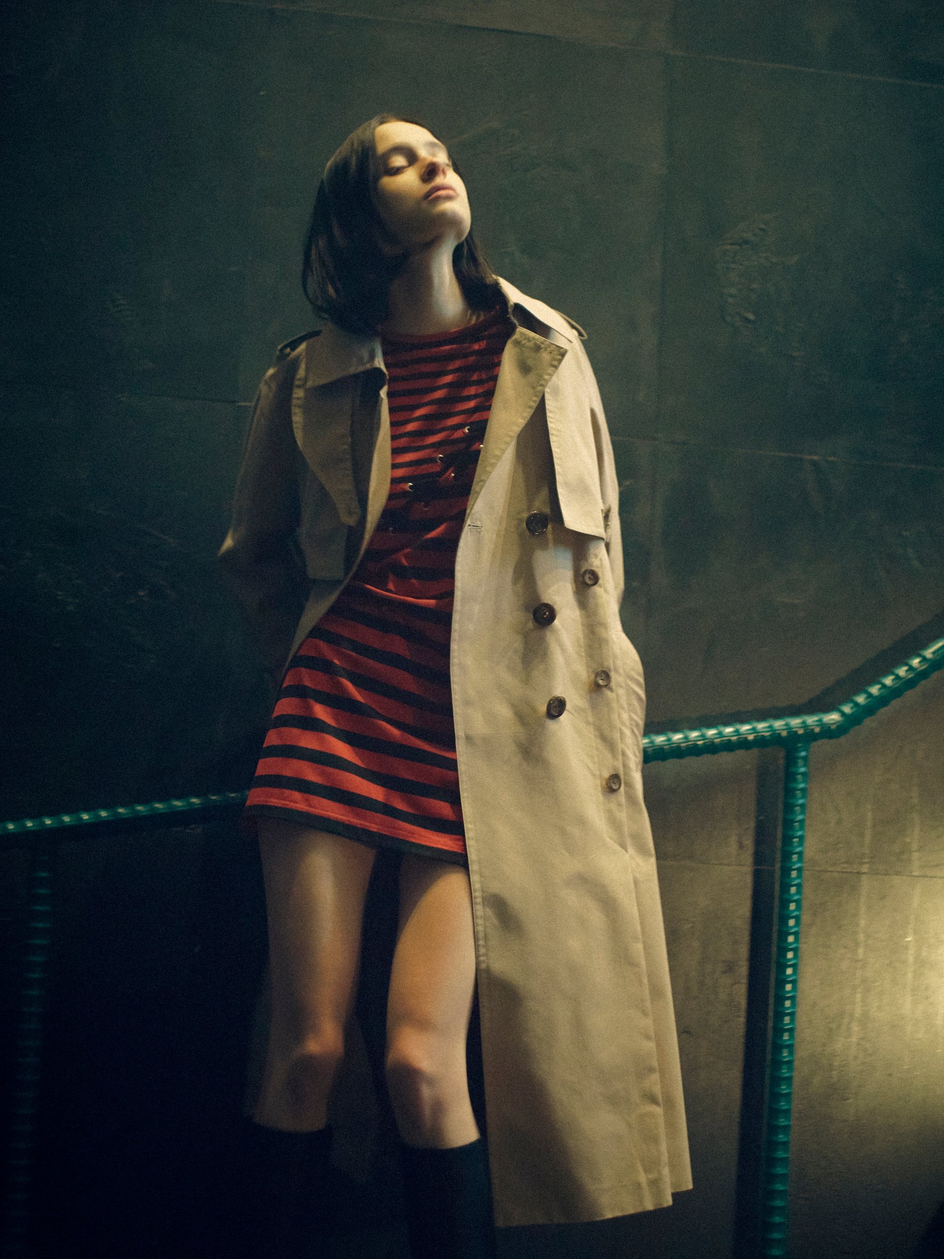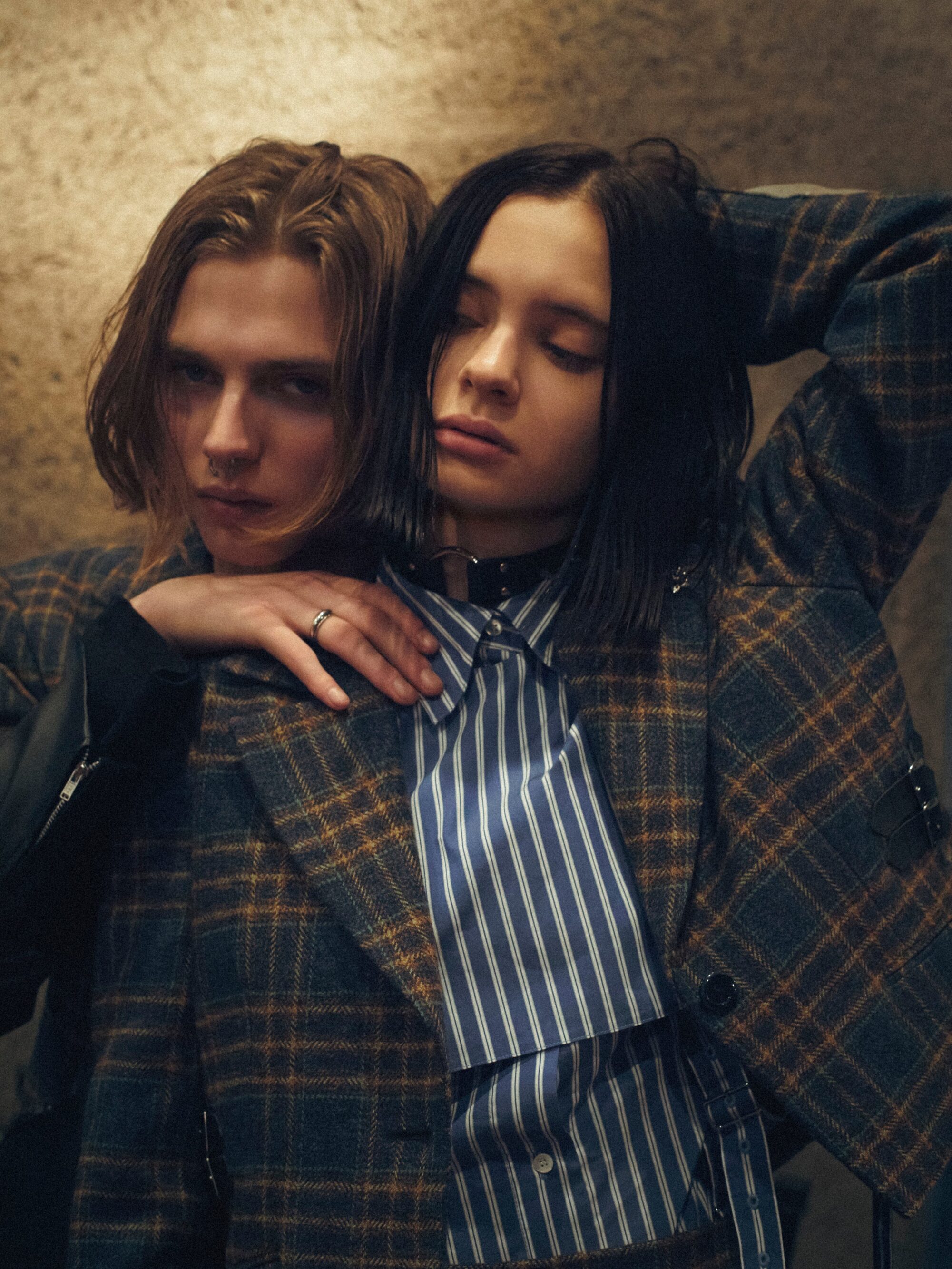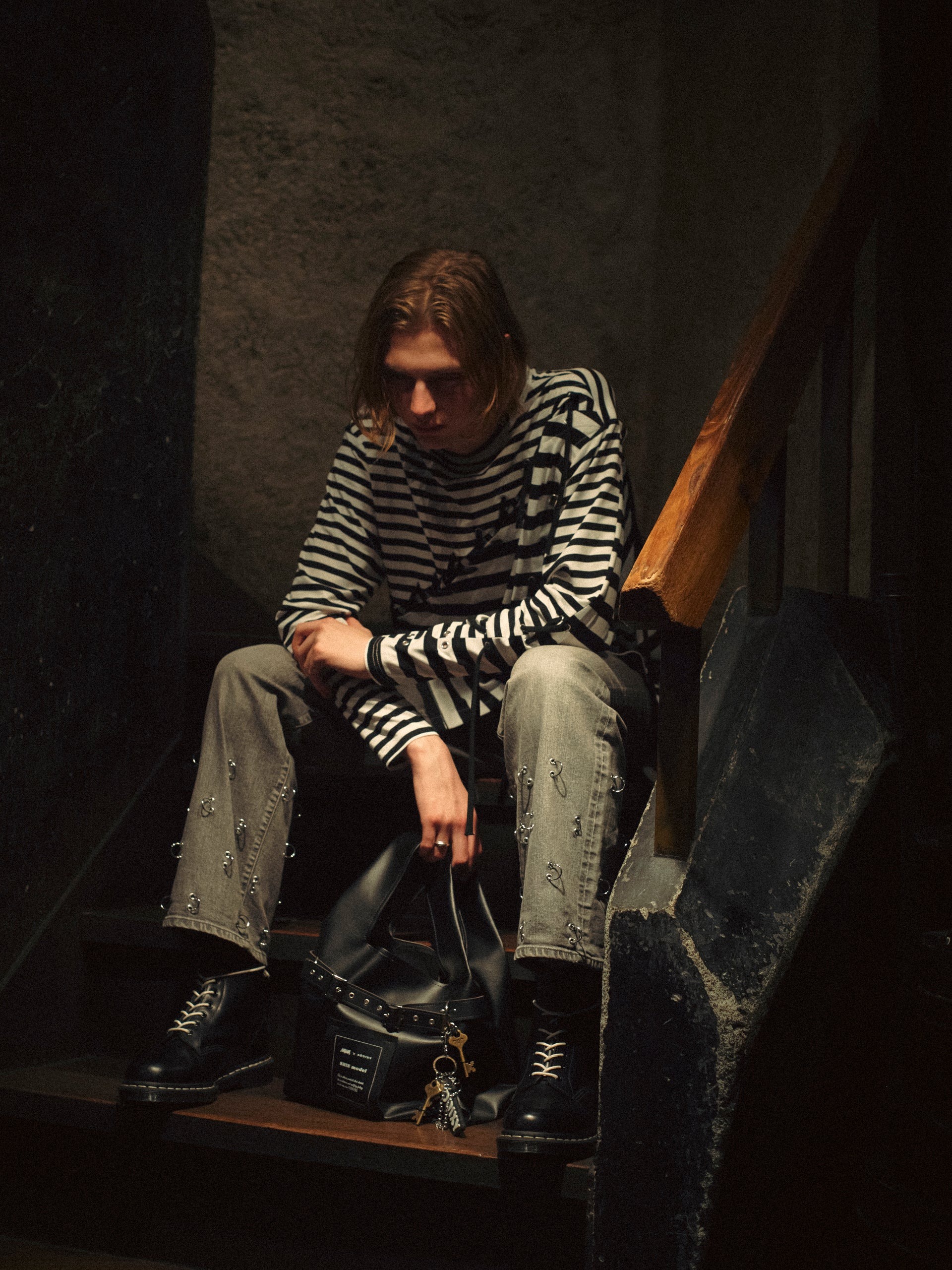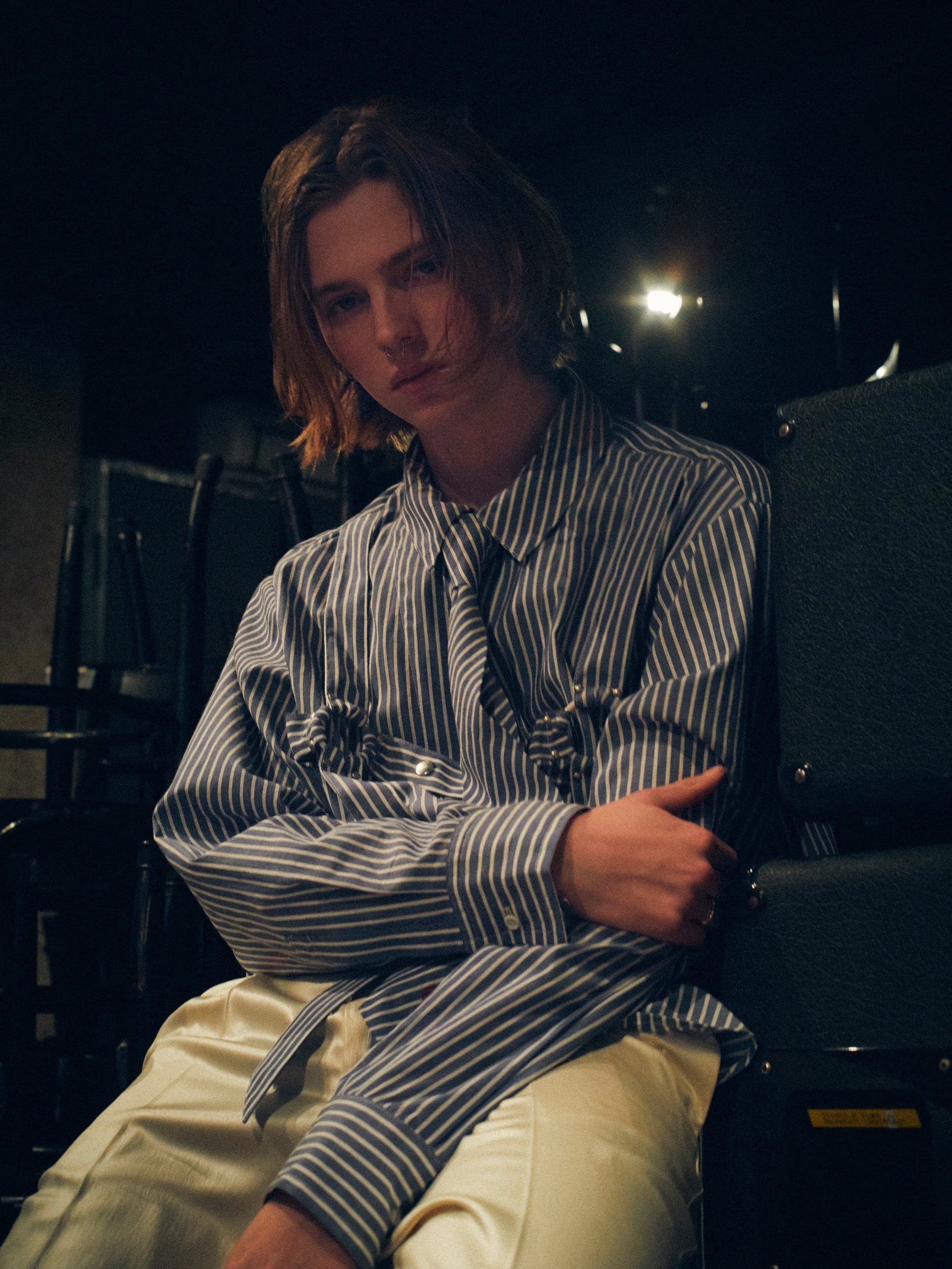 岡崎真一則以極具設計感的襯衫作為代表,帶有綁帶以及拼接設計,還繡有經典台詞 “Good night, Reira, sweet dreams”;另一件條紋上衣,則有著綁帶的細節設計,完美重現了真一那叛逆又迷人的獨特氣質。