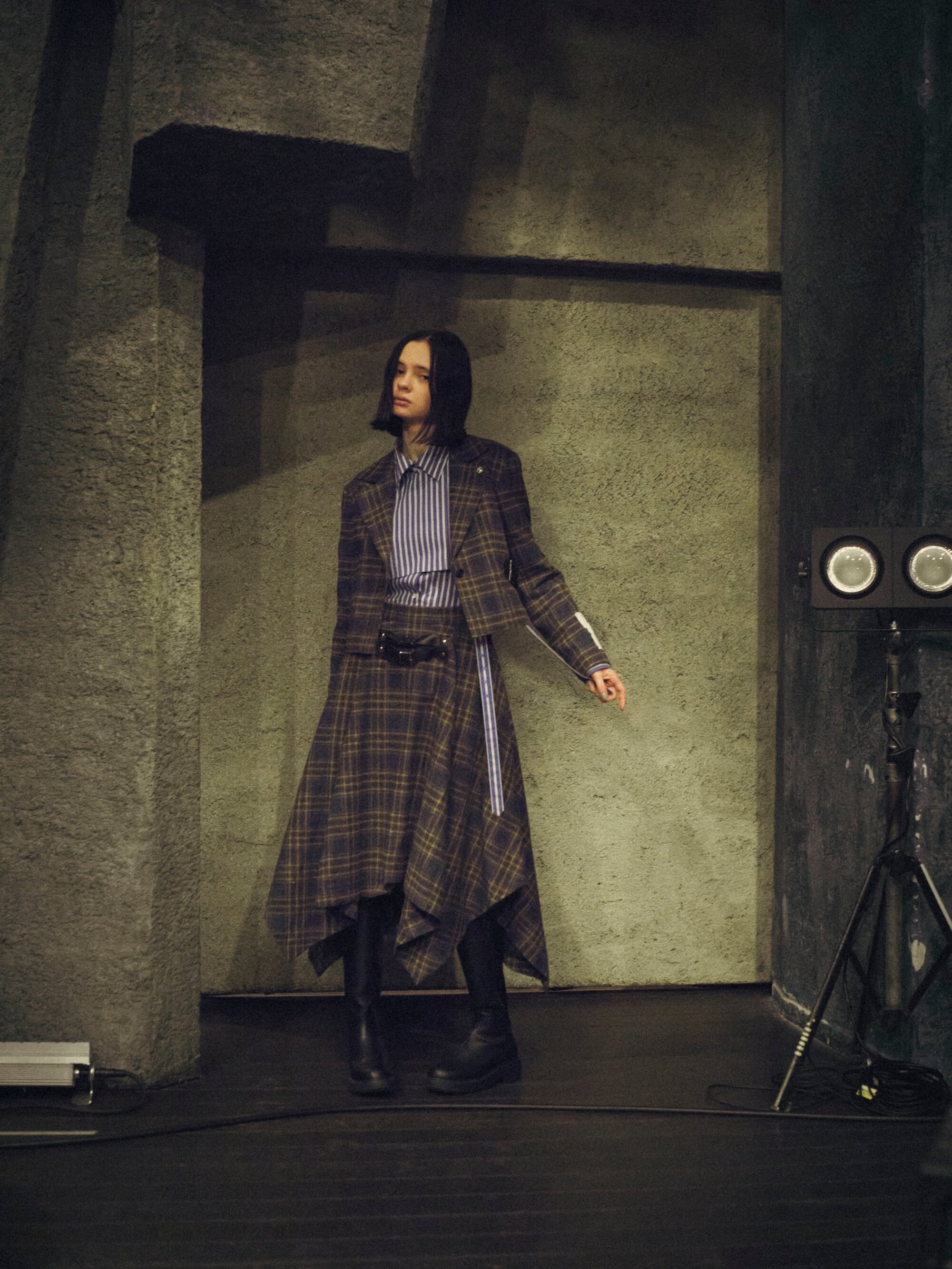 說到蓮,第一個聯想到的就是酷酷的皮衣。這款皮夾克拼接了格紋元素,藉此展現他在舞台上的閃閃發亮與私下孤獨的雙重特質。