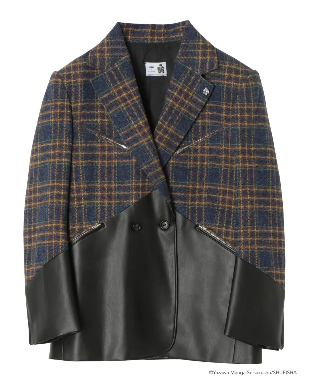 ADDIXY×NANA LEATHER CHECK JACKET JPY48,000;NANA & HACHI GRAPHIC TEE JPY12,000