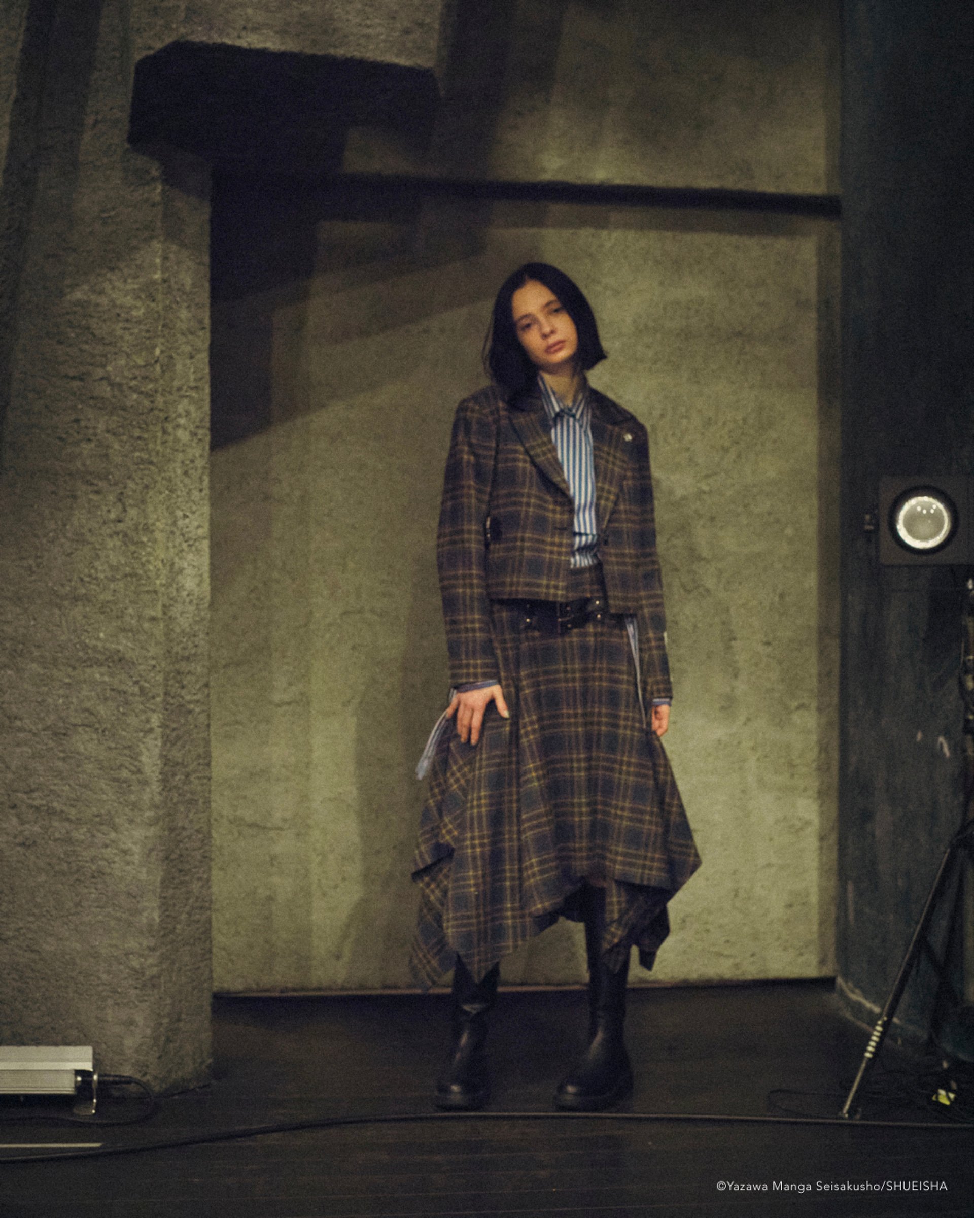 ADDIXY×NANA CHECK CROPPED JACKET JPY40,000;CHECK HEM SKIRT JPY29,000