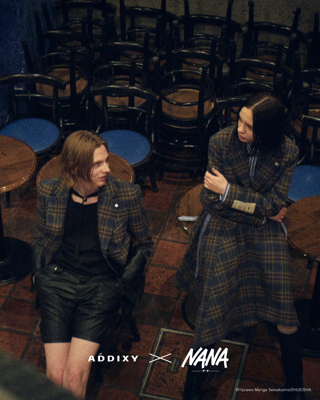 正是這份跨越時間的共鳴,日本服飾品牌 ADDIXY 攜手 NANA 推出全新 聯名系列,以漫畫中的三位核心角色——大崎娜娜(NANA)、本城蓮與岡崎真一為靈感,汲取他們各自鮮明的時尚風格,延伸出一系列單品。