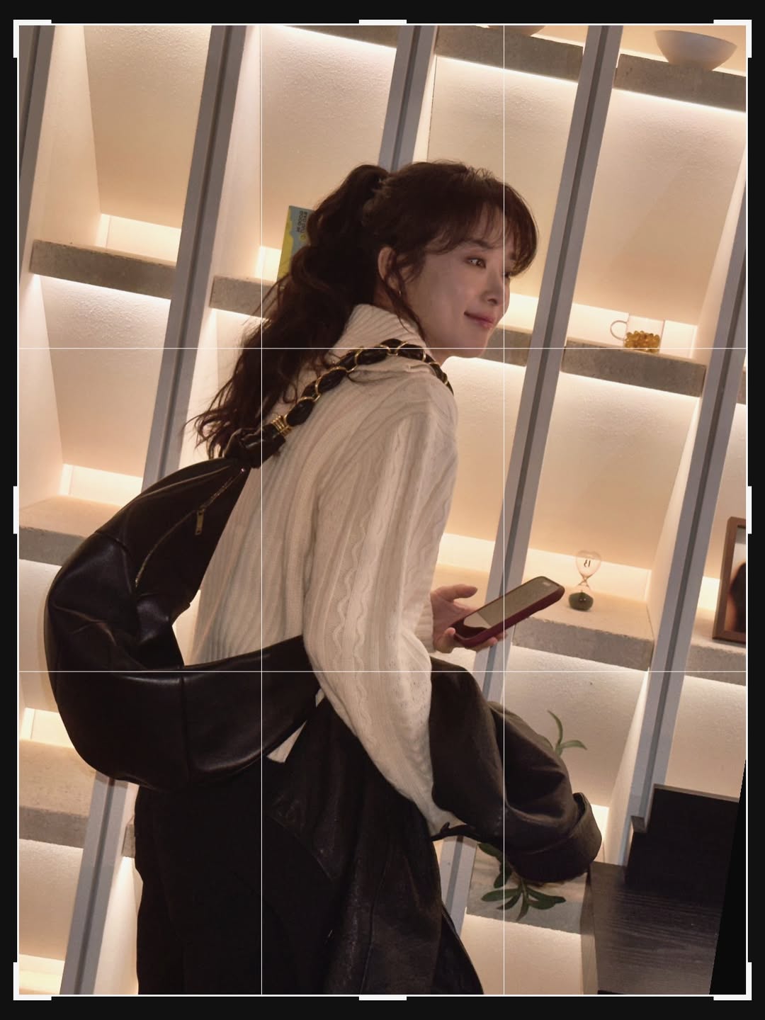 李清娥身上這款是 AMALIA Hobo 小羊皮手袋,配以編織 CASSANDRE 珠寶鍊條肩帶,兩端還有銅色金屬配件點綴,皮革柔軟,背起來剛好順身,很適合搭配平時的休閒裝扮,有種輕鬆自在的率性時髦氣息。