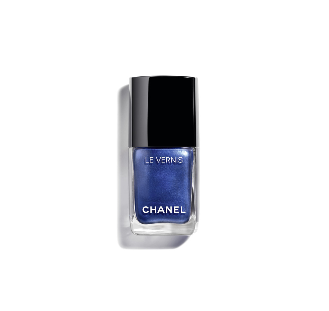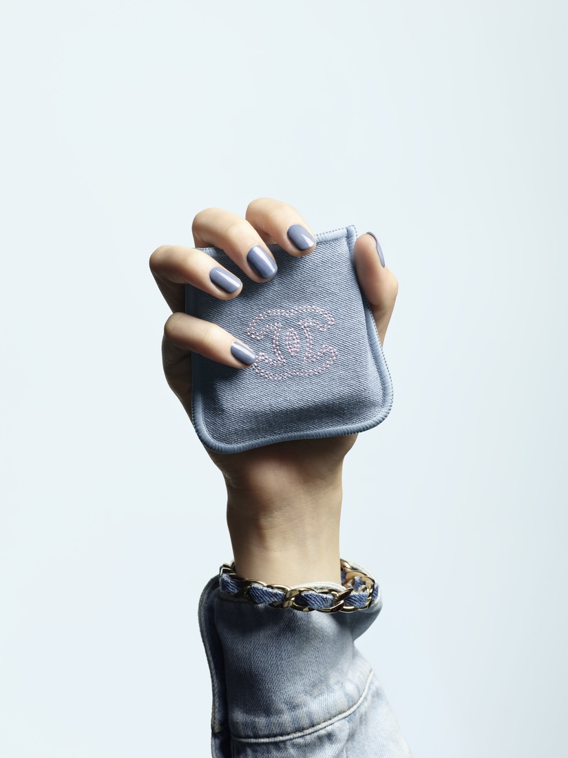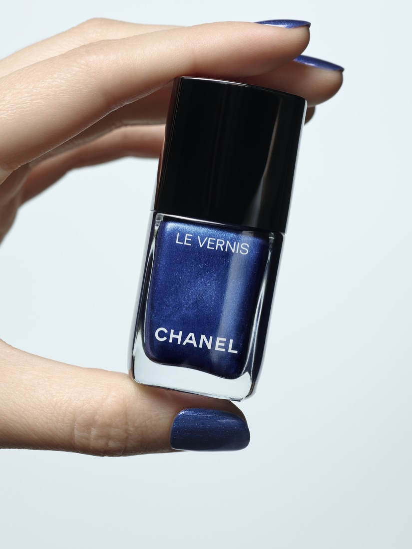 「香奈兒時尚釉光指甲油」 將丹寧色彩濃縮於指尖,推出 #冷冽藍 新色,就像原色丹寧的金屬光深藍色,綻放鏡面亮澤效果。