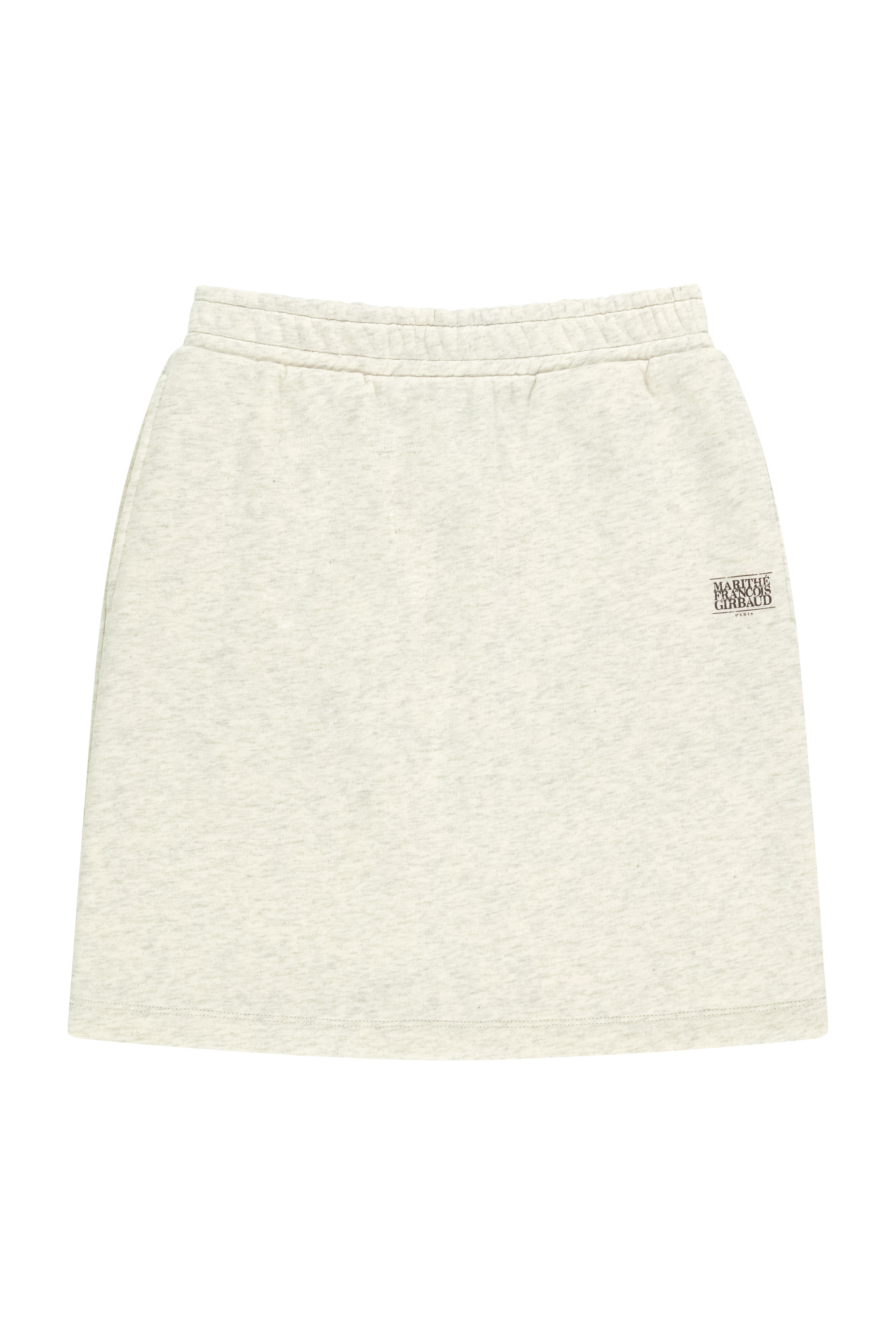 經典LOGO高領風衣外套 (灰藍色) NT$4,590;經典LOGO休閒棉質短裙 (燕麥色) NT$1,890