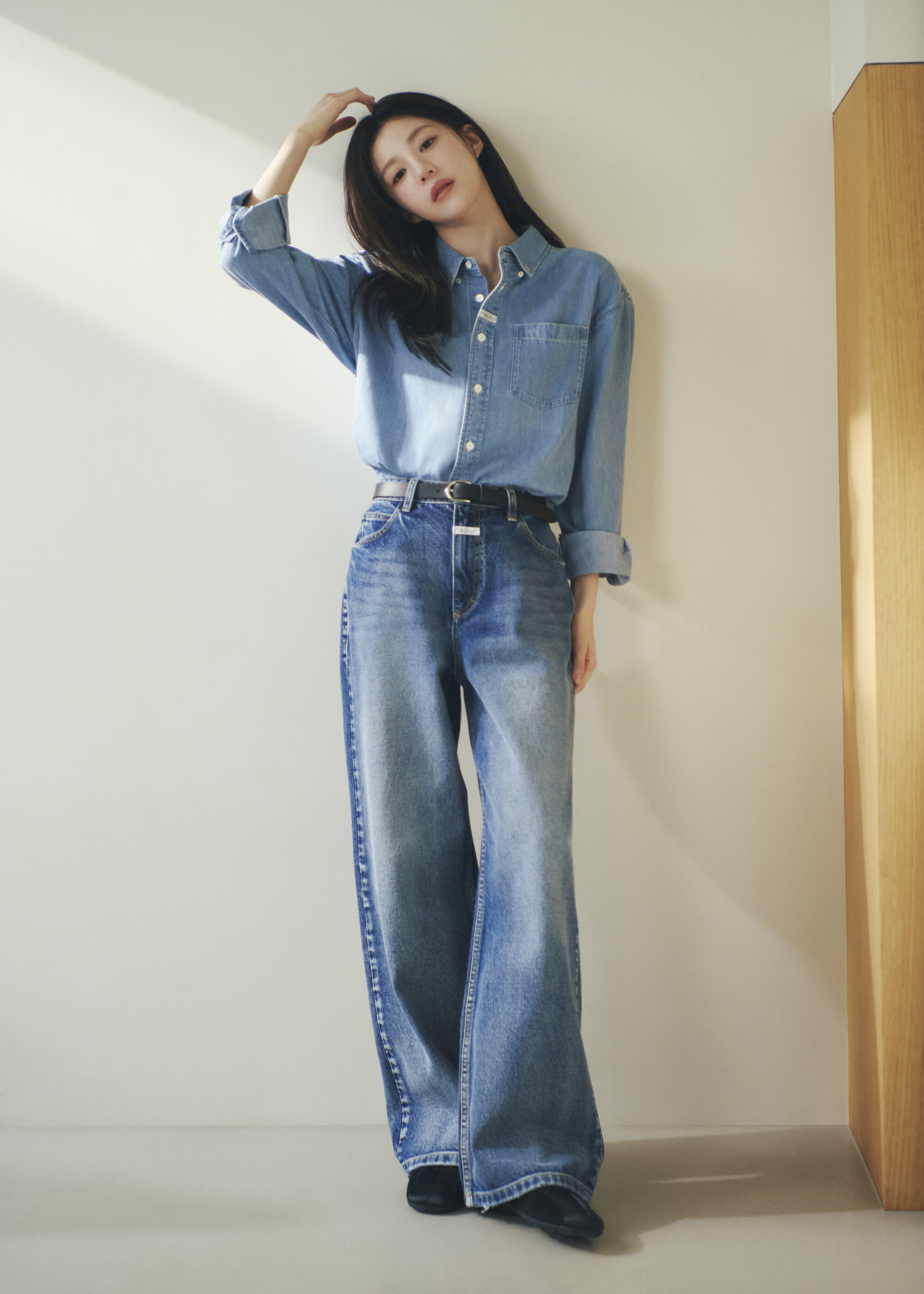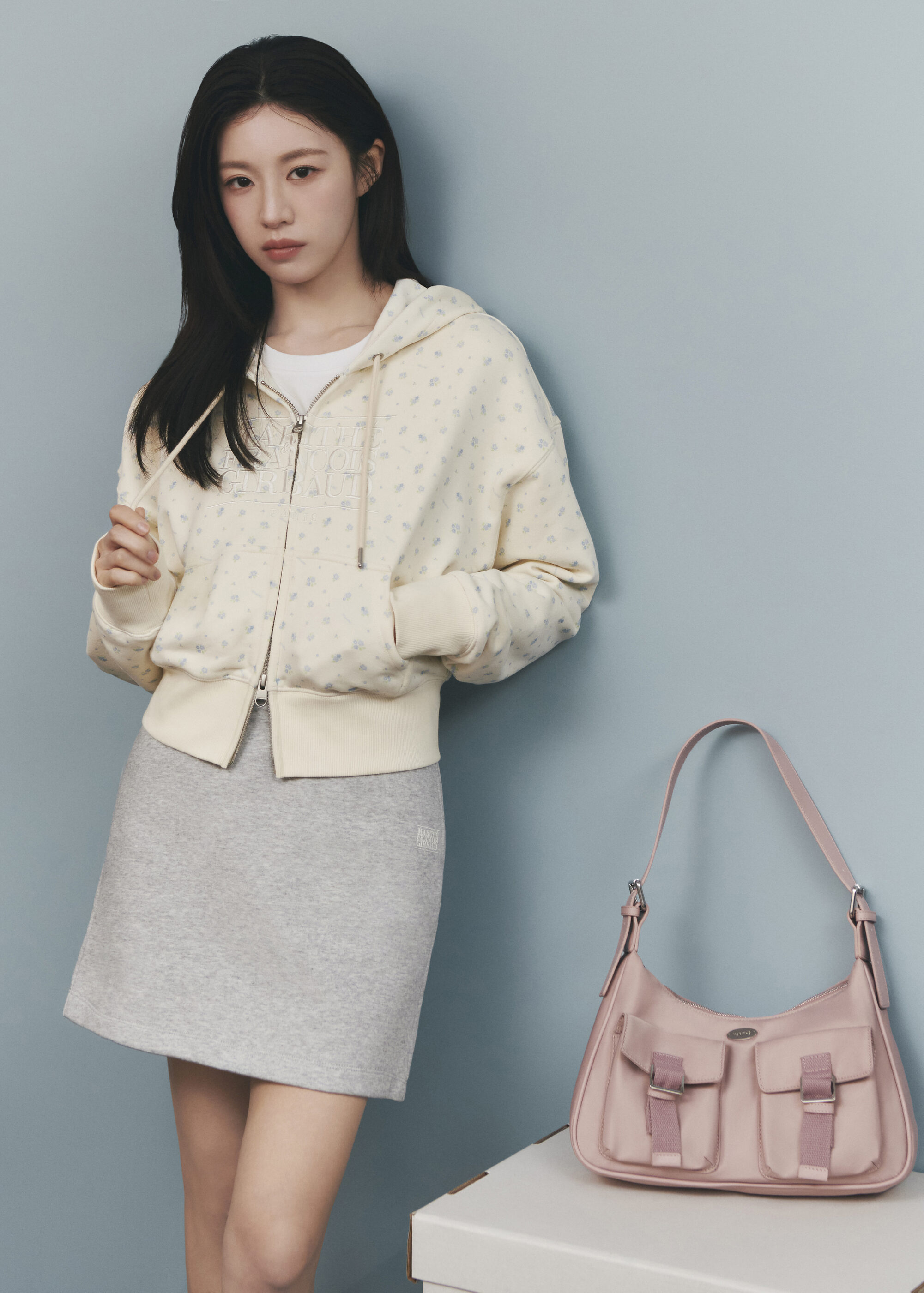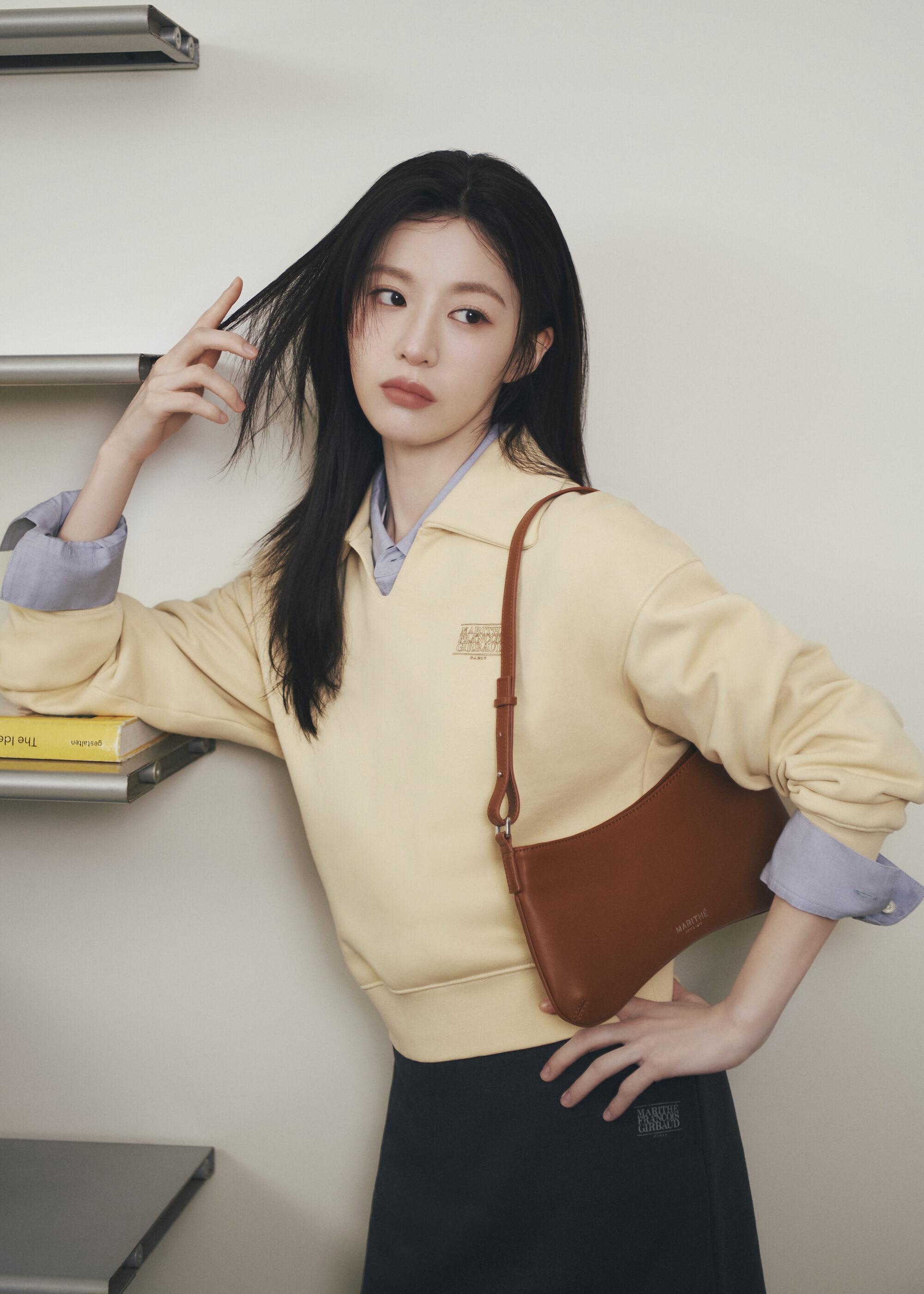 春季形象廣告由品牌代言人高允貞出鏡,她抹著淡妝,一連換上多套春日造型,像是牛仔套裝,清爽乾淨中帶點率性街頭感;另一套以灰色針織衫配上中長百褶裙,再搭中筒襪與芭蕾鞋,文藝又知性,日常穿輕鬆自在得剛剛好,讓人看了想複製貼上。