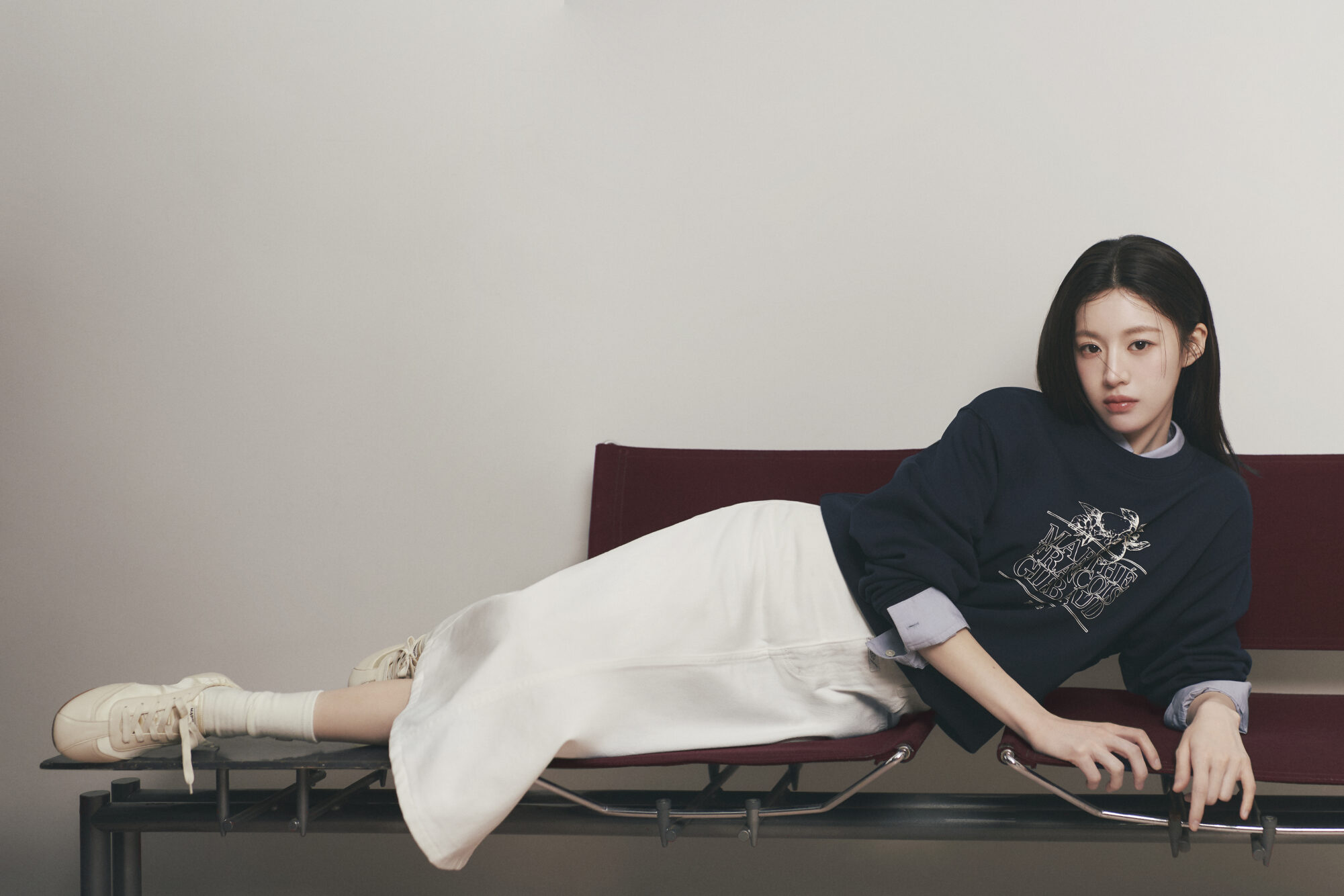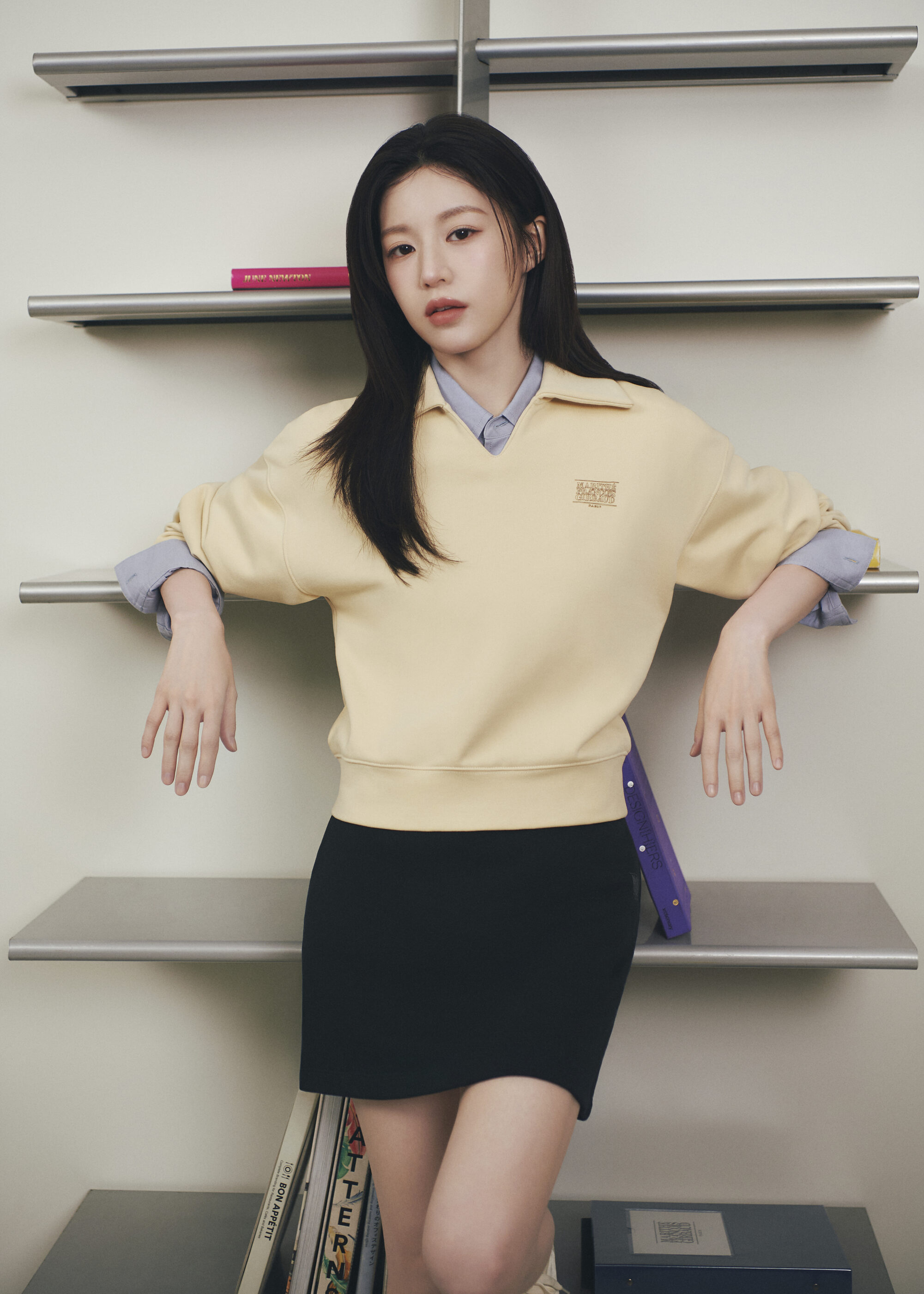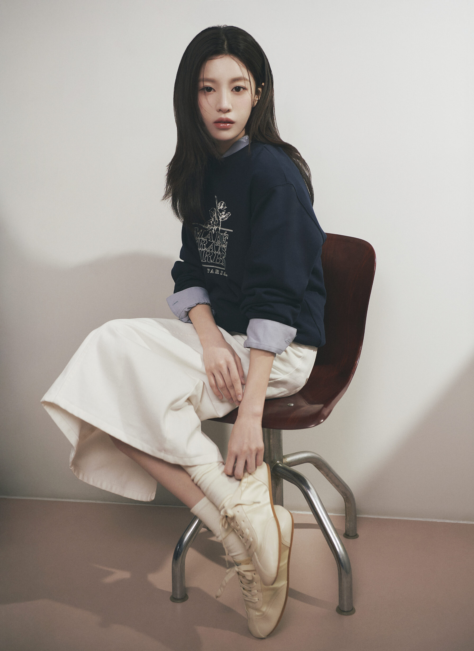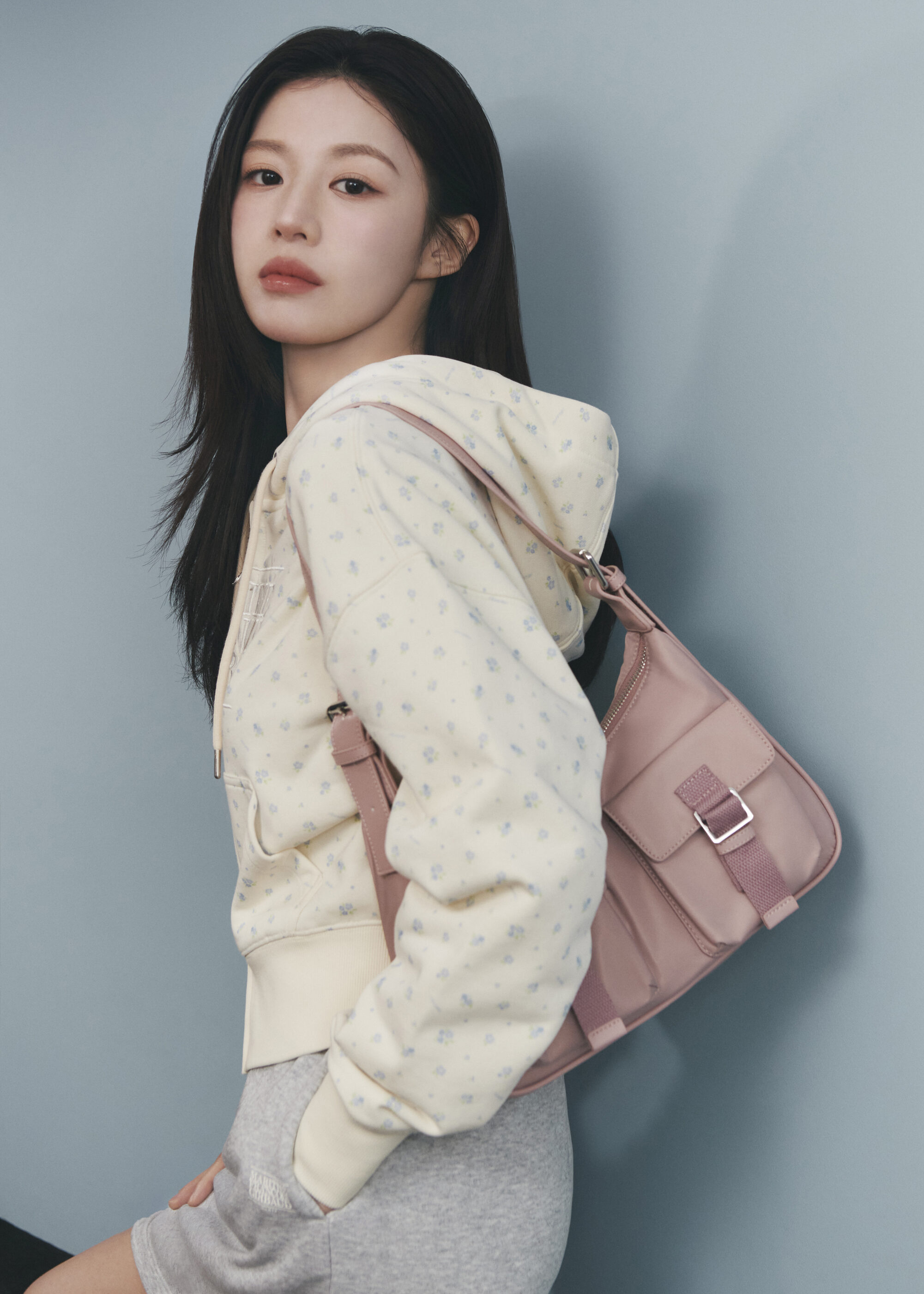 春季形象廣告由品牌代言人高允貞出鏡,她抹著淡妝,一連換上多套春日造型,像是牛仔套裝,清爽乾淨中帶點率性街頭感;另一套以灰色針織衫配上中長百褶裙,再搭中筒襪與芭蕾鞋,文藝又知性,日常穿輕鬆自在得剛剛好,讓人看了想複製貼上。