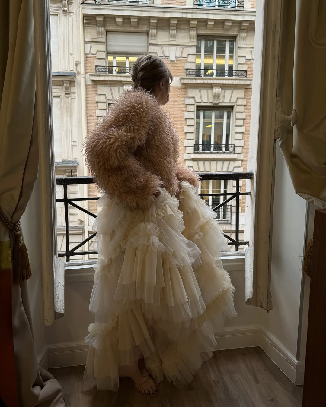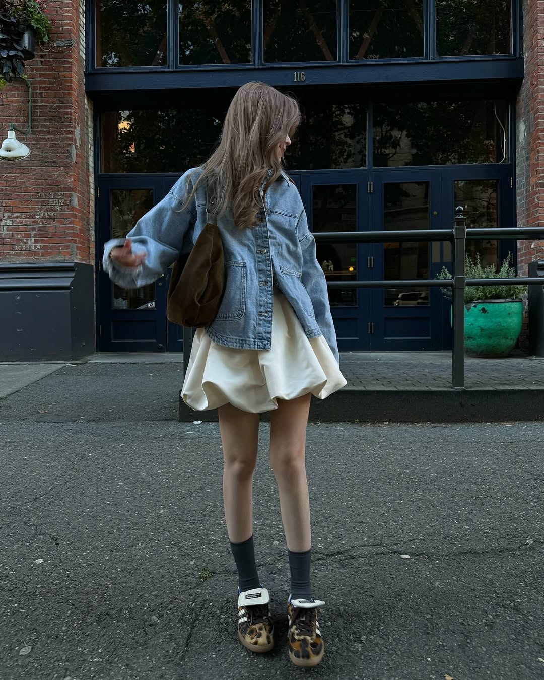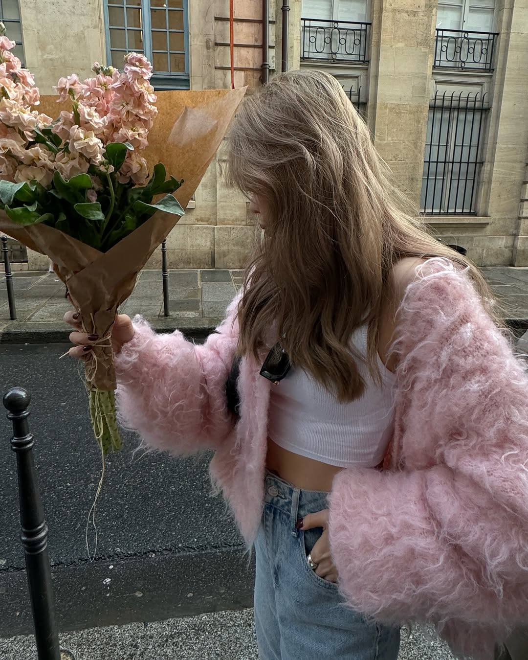 就連毛茸茸的上衣與外套,也在 Kei 的搭配下顯得不過分可愛,比如搭配具有光澤感的綢緞長裙,穿搭立刻高級精緻了起來,穿去參加正式場合剛剛好;或者來一件牛仔褲或運動棉褲,多了分街頭休閒,更多了幾分隨性的時髦態度,浪漫又帶點叛逆。