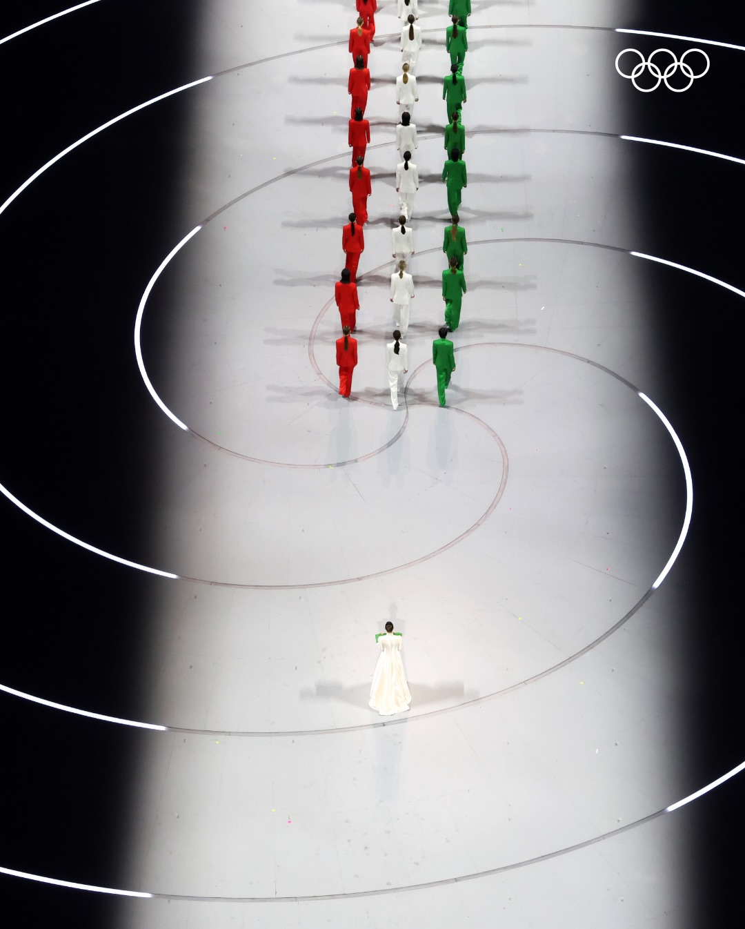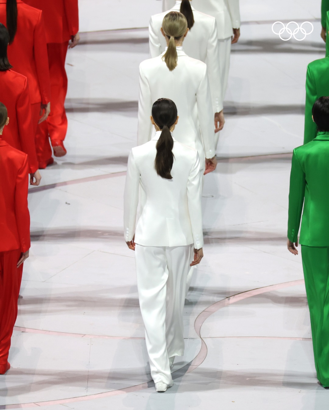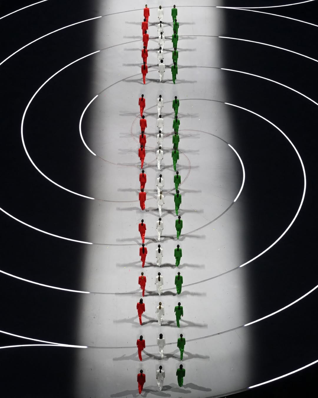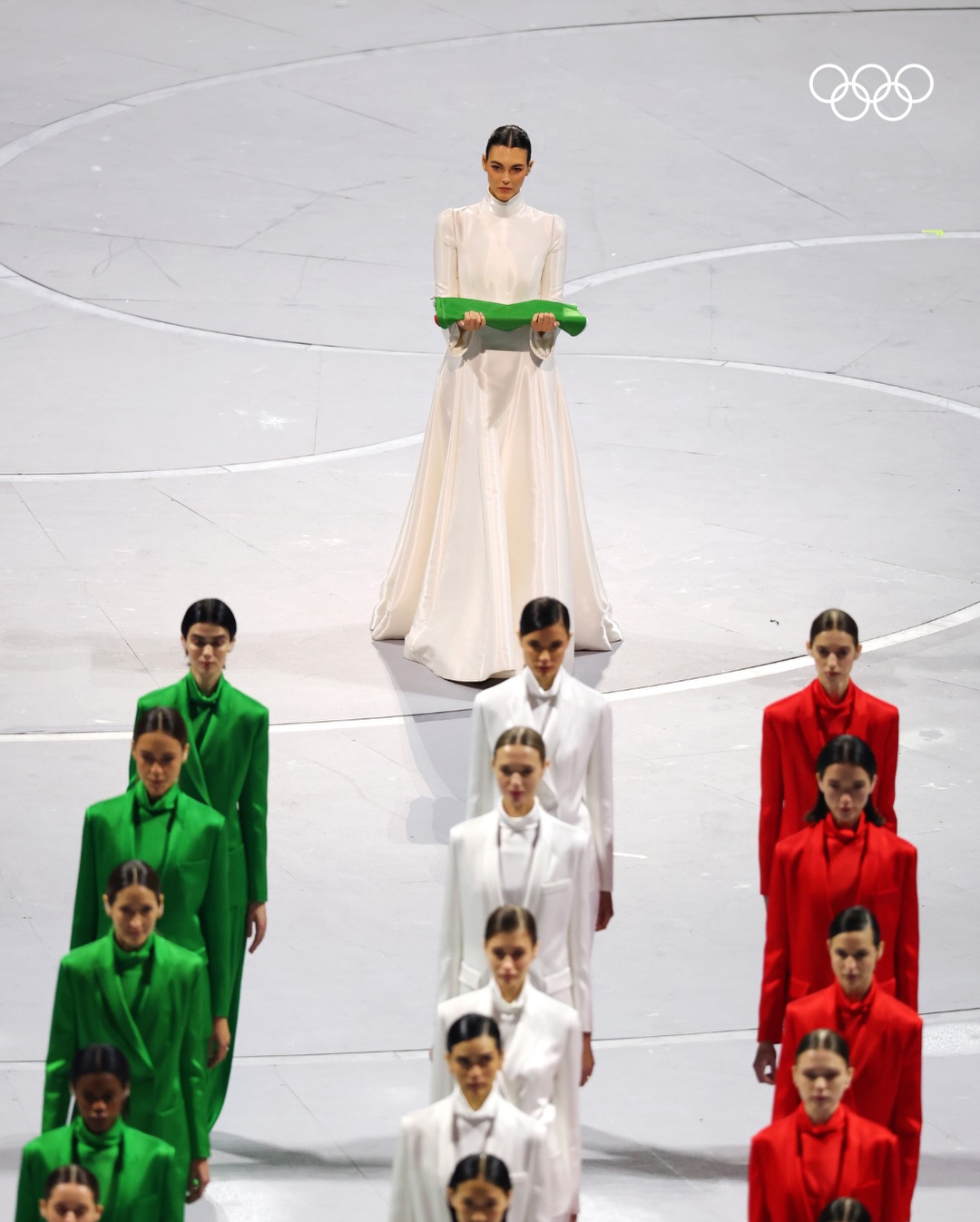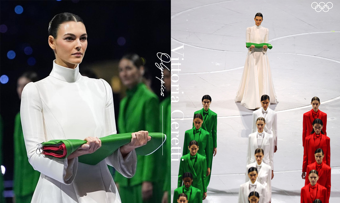 選在「時尚之都」米蘭舉行,在體育競賽外,典禮的時尚美學自然也成為眾人關注焦點,而開幕式上的最美風景,就出現在義大利超模 Vittoria Ceretti 和 60 位模特兒共同走上舞台的這一幕。