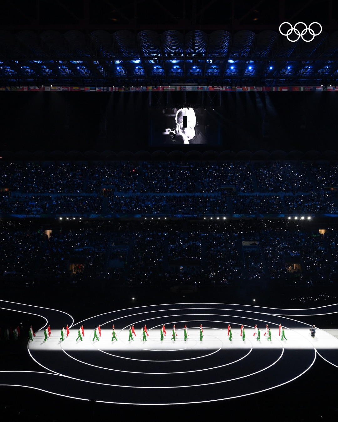 奧運官方也特別於社群貼文寫下:「向義大利時尚致敬!義大利三色旗以令人驚豔的風格現身!由已故時尚象徵 Giorgio Armani 設計的綠、白、紅三色服裝,將伸展台演繹成義大利優雅的強大表現。」為本屆冬奧開幕式留下令人動容的一幕。