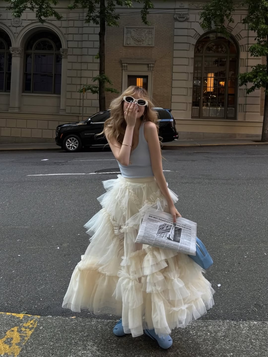 >>> 今夏白裙正流行,尤其蓬鬆有層次的「蛋糕短裙」好多人在穿,和芭蕾風有夠搭