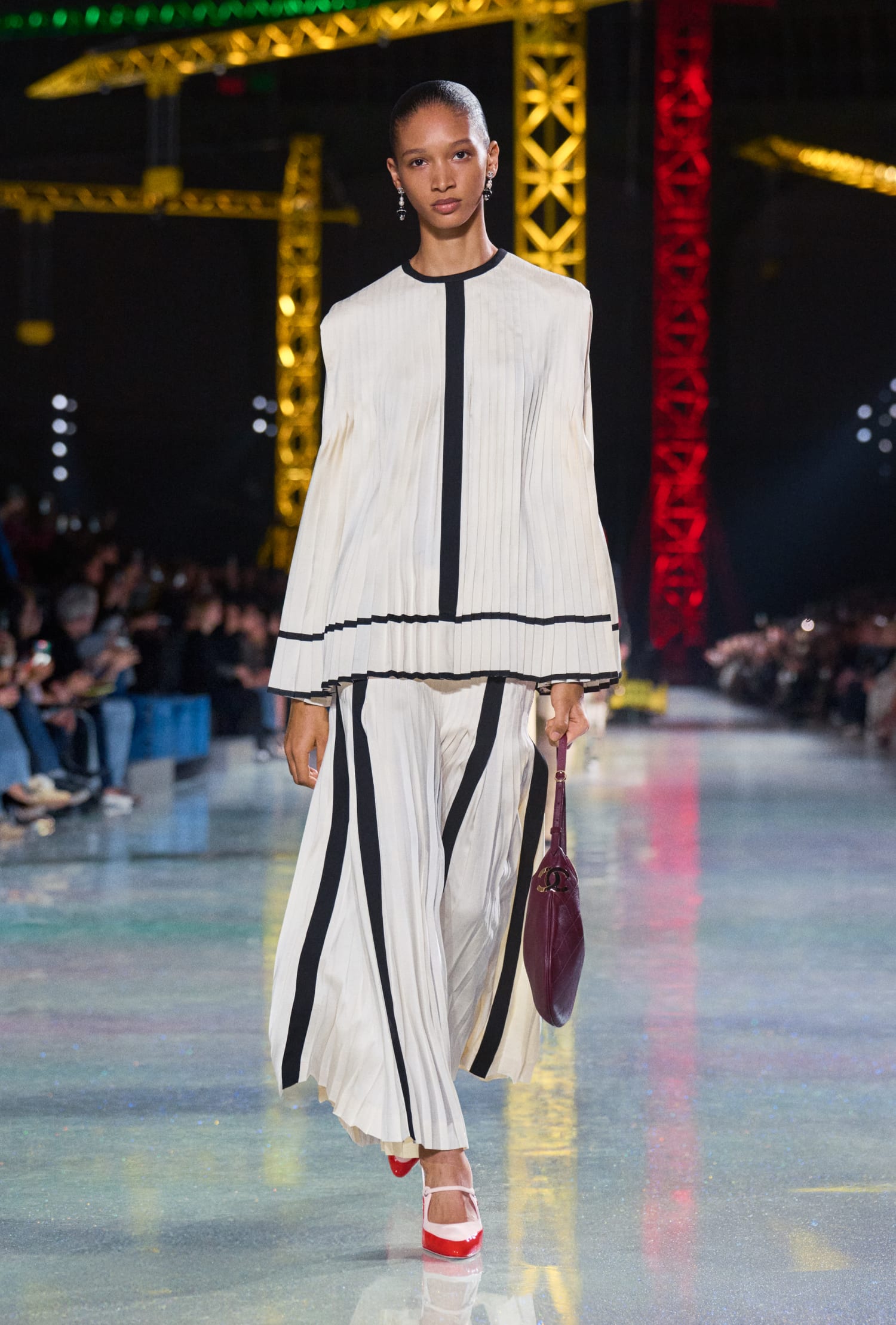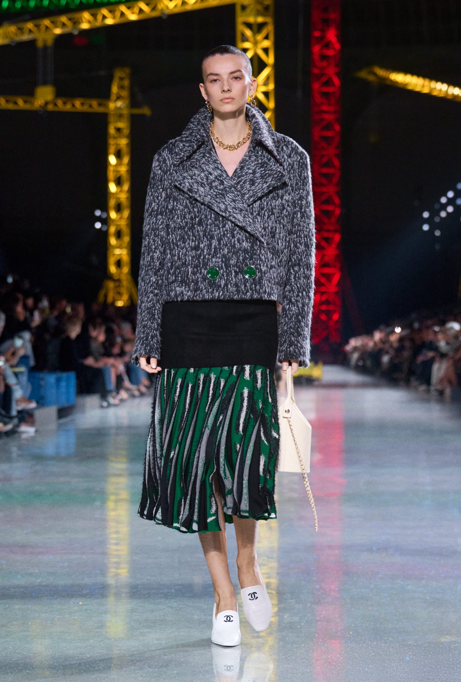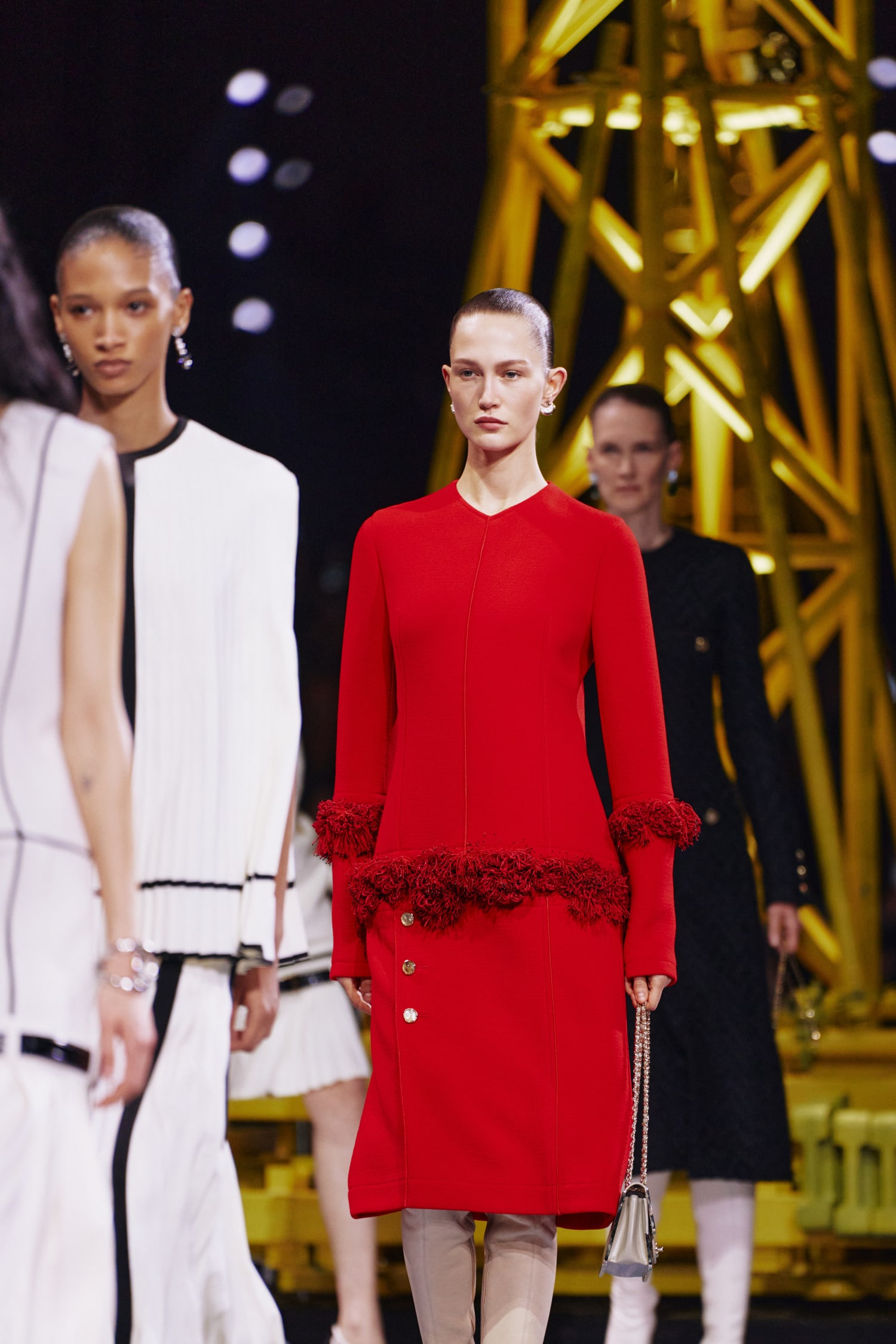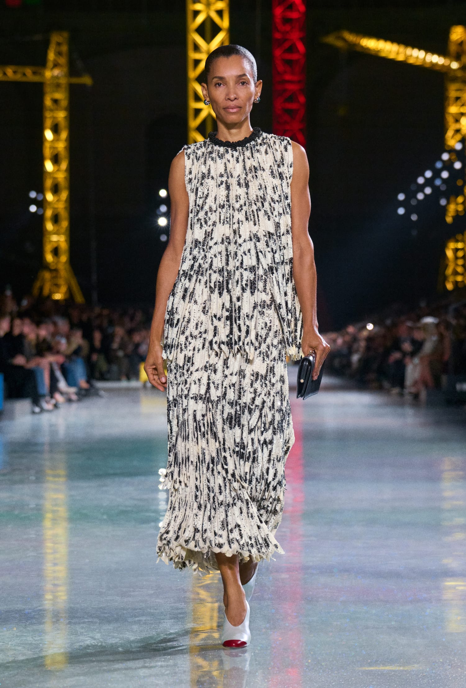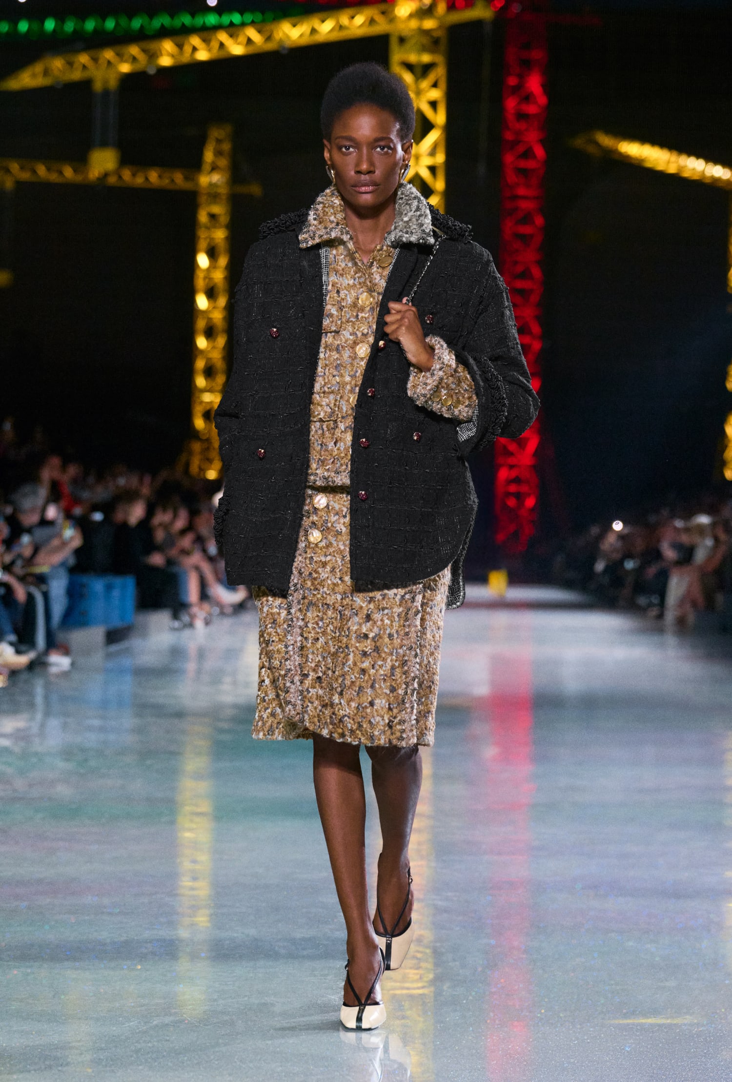 此外,斜紋軟呢不只出現在端莊的套裝上,也以工裝襯衫及布勞森外套等全新形式現身,並與 1920 年代風格的真絲針織布料交織,以及透過加入金屬絲、拆解成薄紗型態,呈現更輕盈的流動感,為整個系列添上讓人驚喜不斷的豐富細節。