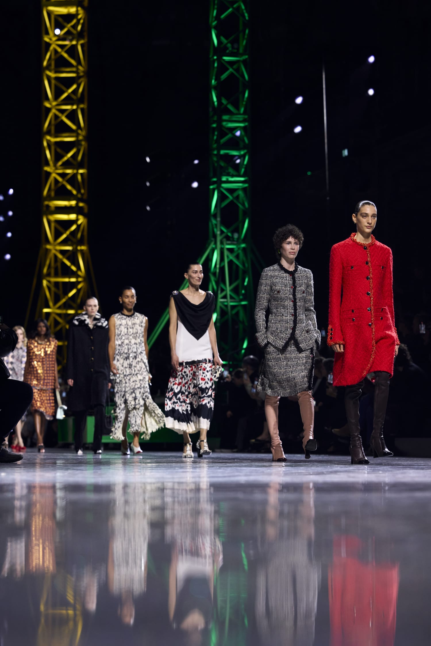 在 Remix 了 Lady Gaga《Just Dance》的秀場音樂聲中,CHANEL 藝術總監 Matthieu Blazy 帶來他在品牌的第二個高級時裝系列,這一季,他從 Gabrielle Chanel 所言「時尚既是白日蟄伏的毛毛蟲,也是入夜旋舞的蝴蝶。」出發,與 Gabrielle Chanel 展開跨時空對話的第二篇章,從白晝到黑夜,從簡約到絢麗,為 CHANEL 女性刻劃一趟破繭成蝶的蛻變之旅。