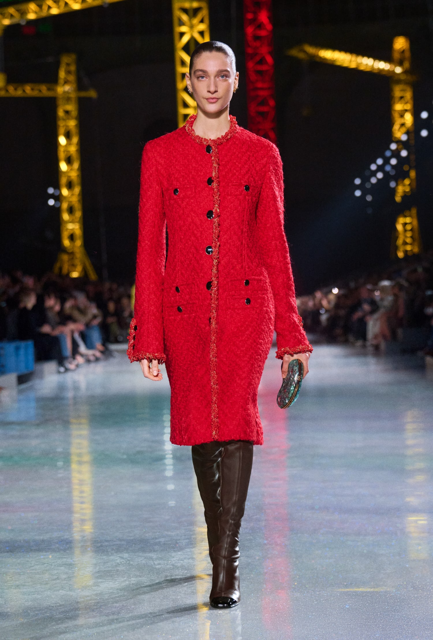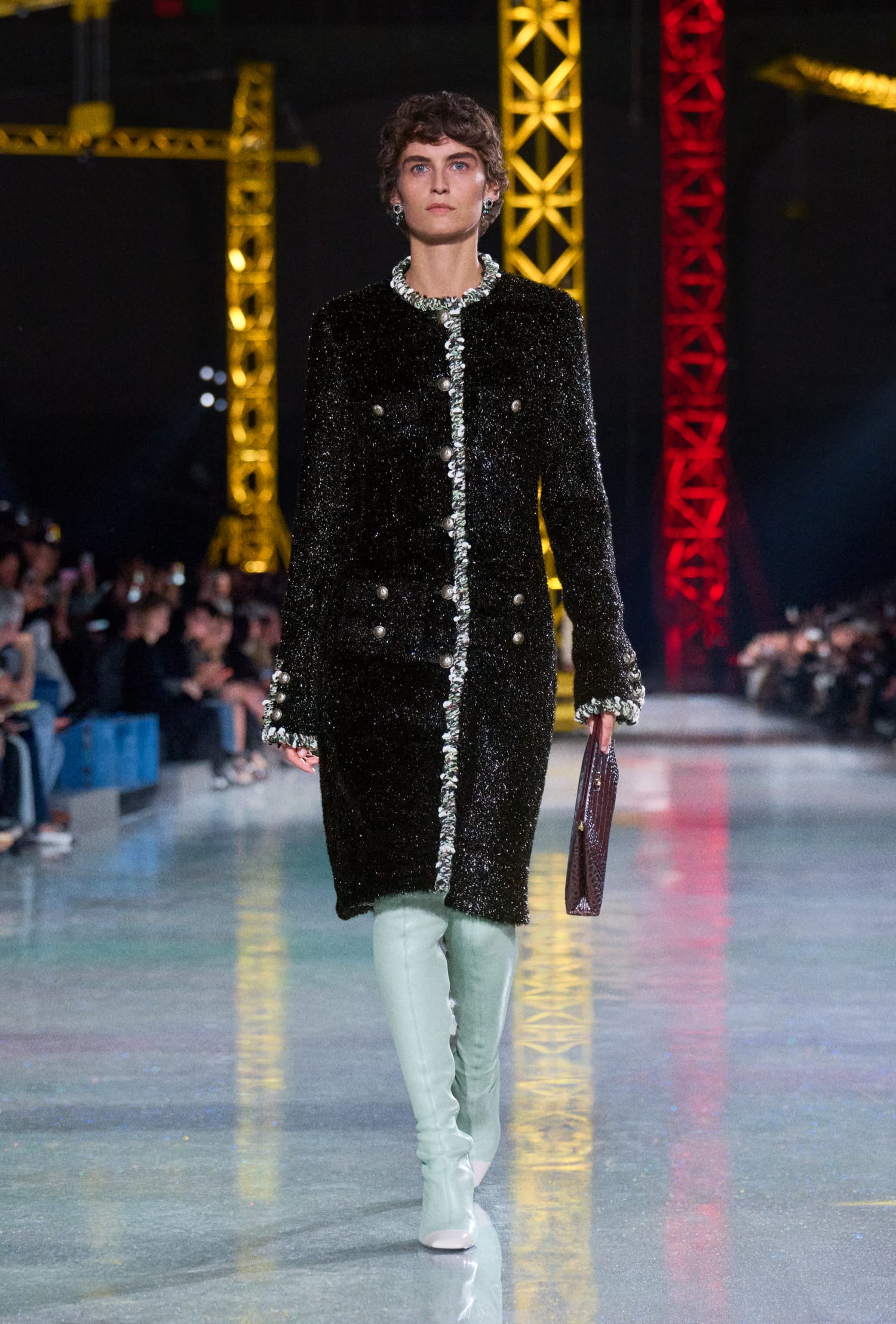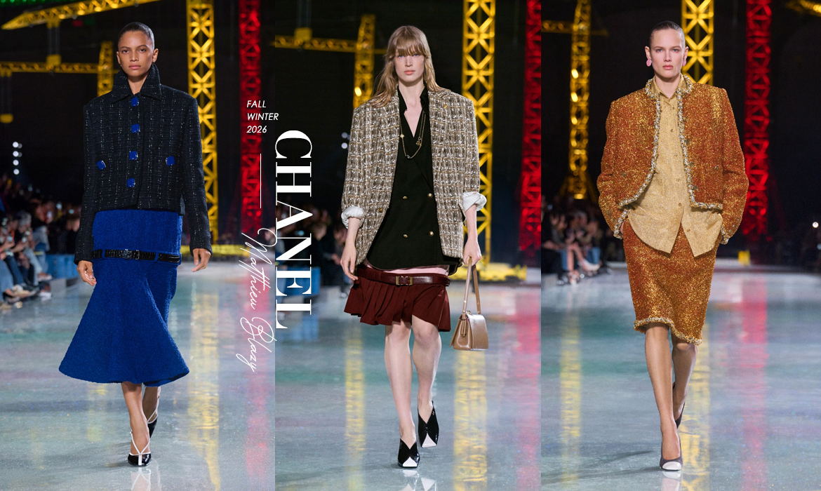 巴黎大皇宮內,架起了色彩鮮明的巨型起重機裝置,隨著夜幕降臨,玻璃穹頂點上繁星,Matthieu Blazy 持續為 CHANEL 重構並搭建新的基石,也為女性建造夢想的願景,而 Gabrielle Chanel 一句受訪時說的「時尚既是毛毛蟲,也是蝴蝶」,成了整個 2026 秋冬系列的開端。