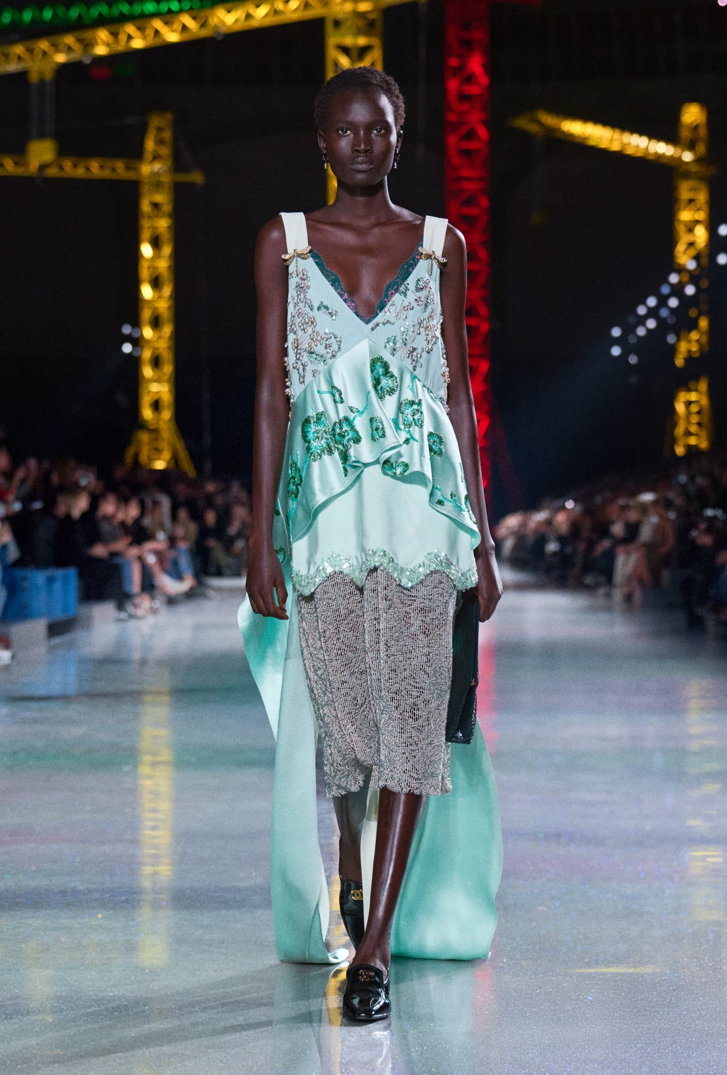 隨著大秀逐漸鋪陳推進,破繭而出的「蝴蝶」在緞面及蕾絲連身裙中輕盈現身,並在繁複華麗的晚裝中展翅起舞。