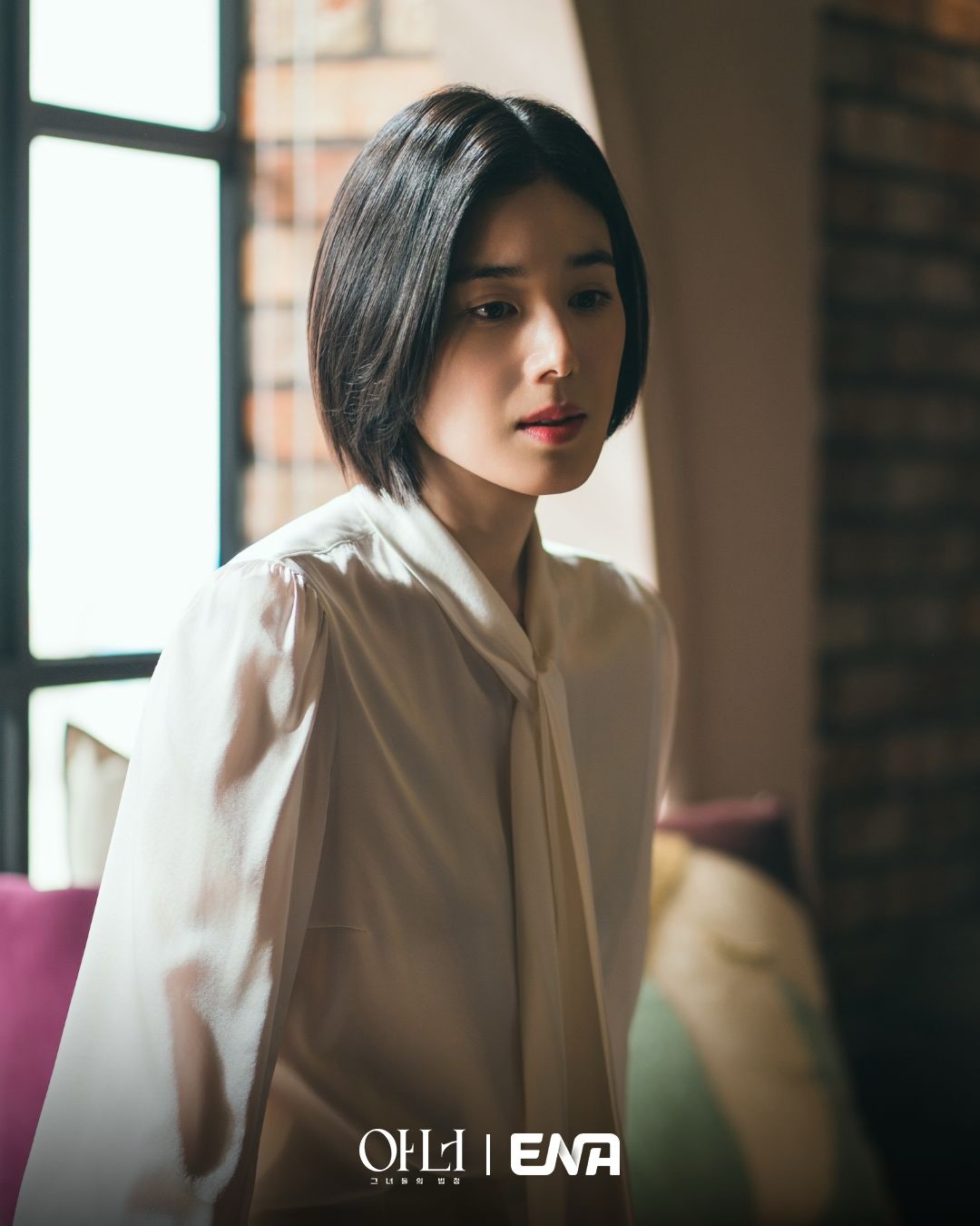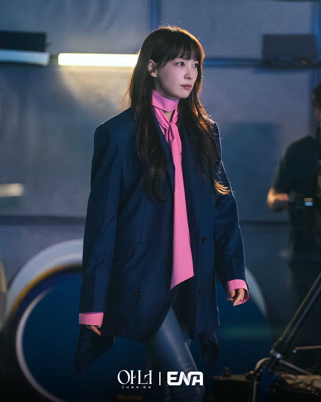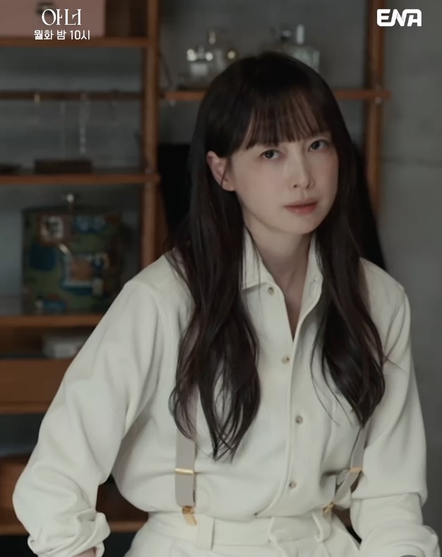 姜信宰(鄭恩彩 飾)是有錢人家的千金,穿衣風格就是妥妥的老錢風,最常以綢緞襯衫亮相,線條流暢、質地細緻,在光線下自然泛著低調光澤。看似沒有什麼穿搭技巧,卻以版型與材質取勝,剪裁合身,配色和諧,搭配起來相當耐看,有種不言而喻的高級感。