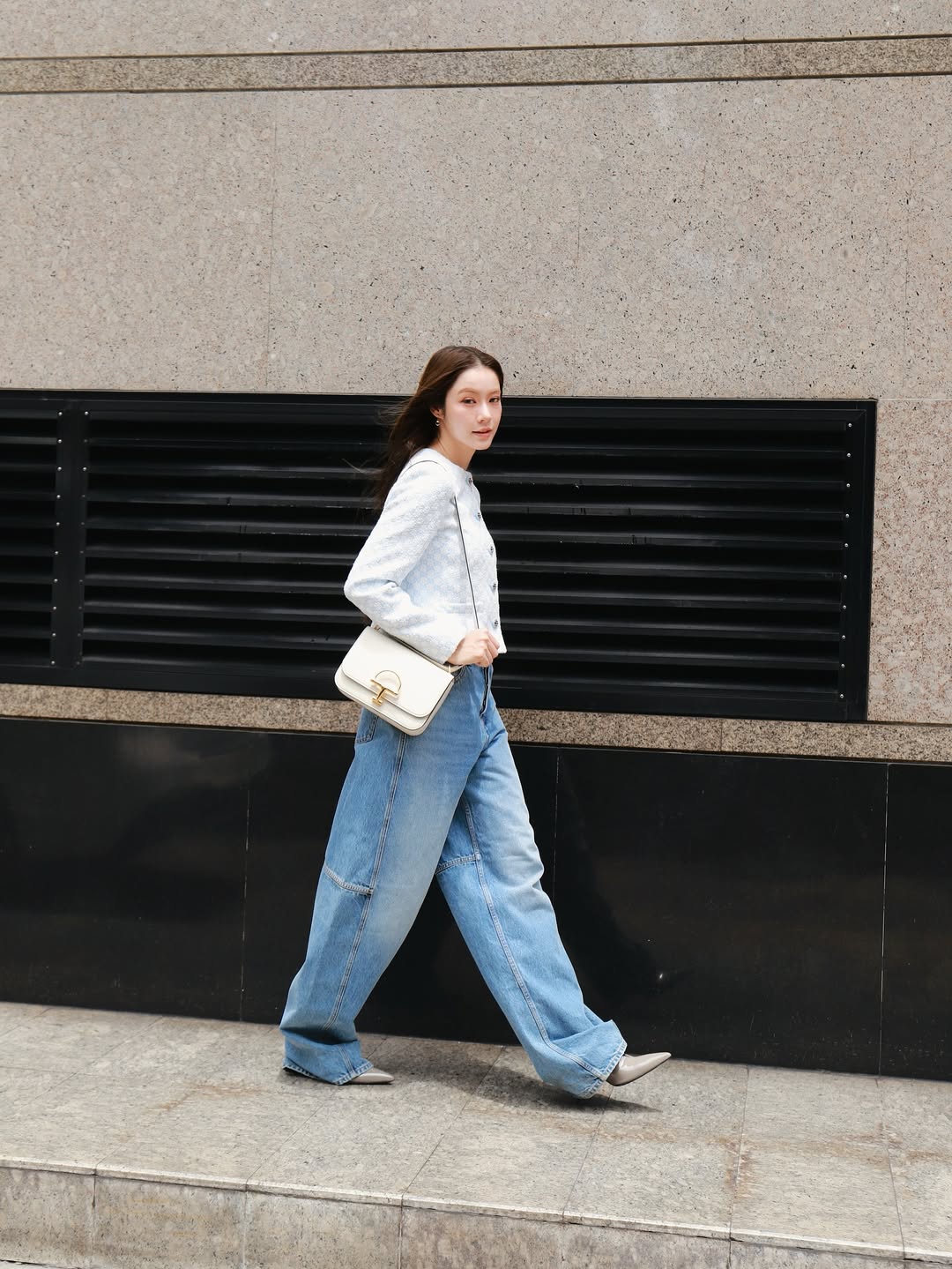 除了這幾位我們熟悉的名字,還注意到了一位泰國人氣演員 Namtan Tipnaree,從機場時的格紋夾克配白裙到大秀當天的卡其褲裝,簡約率性,有種不刻意用力的時髦感,立刻被吸引住目光。