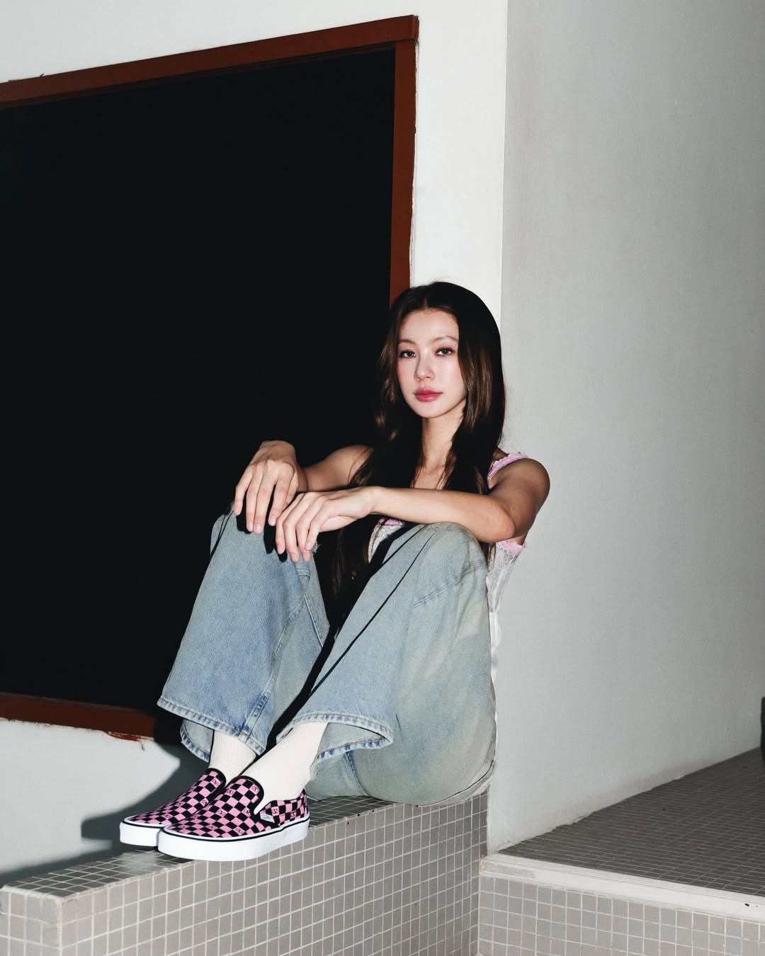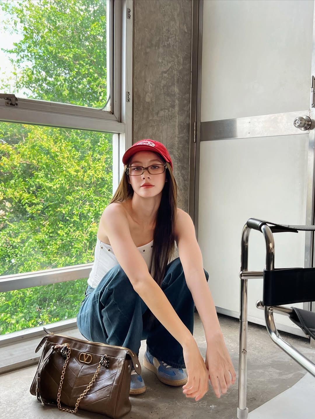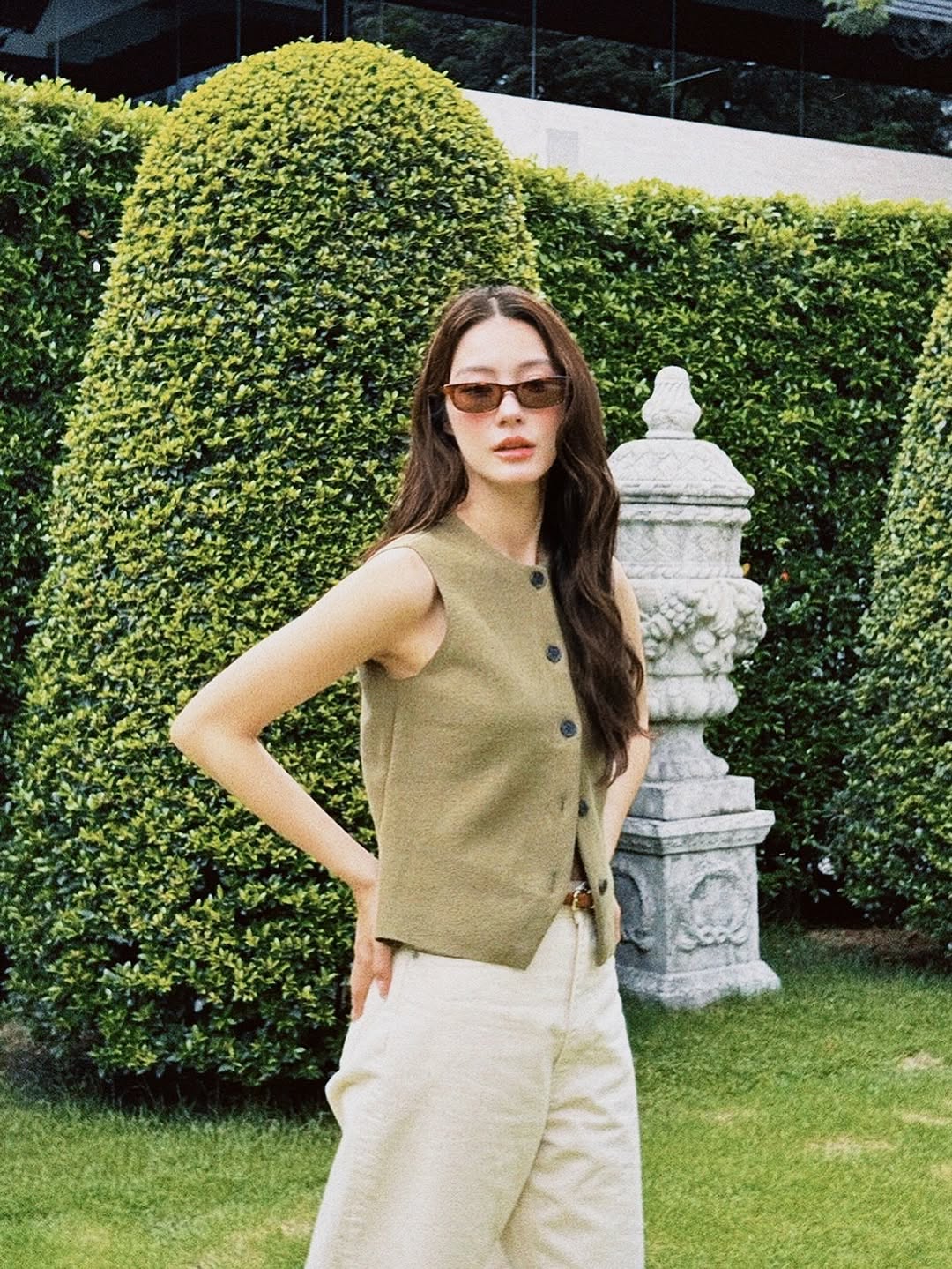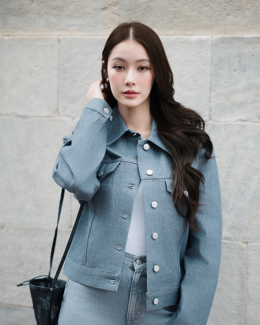 翻開她的頁面會發現,Namtan 不太疊穿,也不太會佩戴滿滿當當的配件首飾,大多以俐落單品完成穿搭,例如寬鬆直筒牛仔褲就是她相當常穿的單品之一,搭配合身背心,既展現身形線條,又帶點帥氣,又辣又酷的。