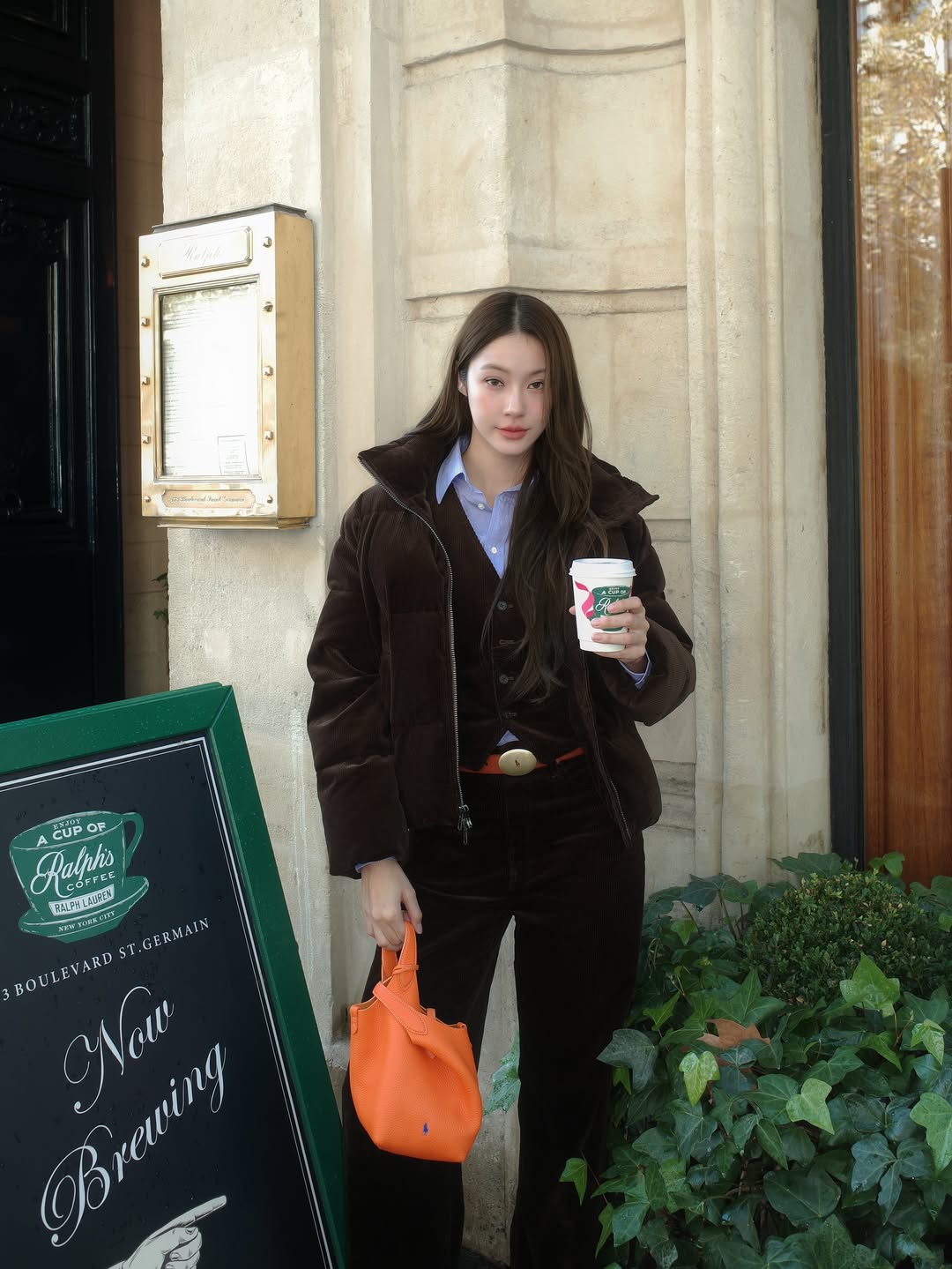 偶爾她也會選擇簡單的 T-shirt,外搭一件駝色大衣,更有隨性的味道,這樣舒服又有態度的穿搭風格也讓她多了一種自然親切的魅力,很適合作為造型靈感來源。