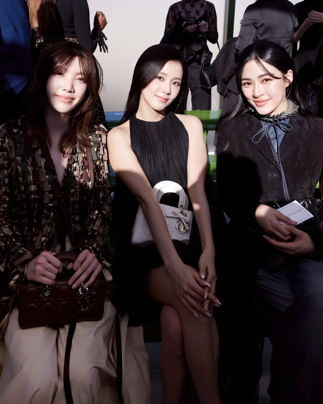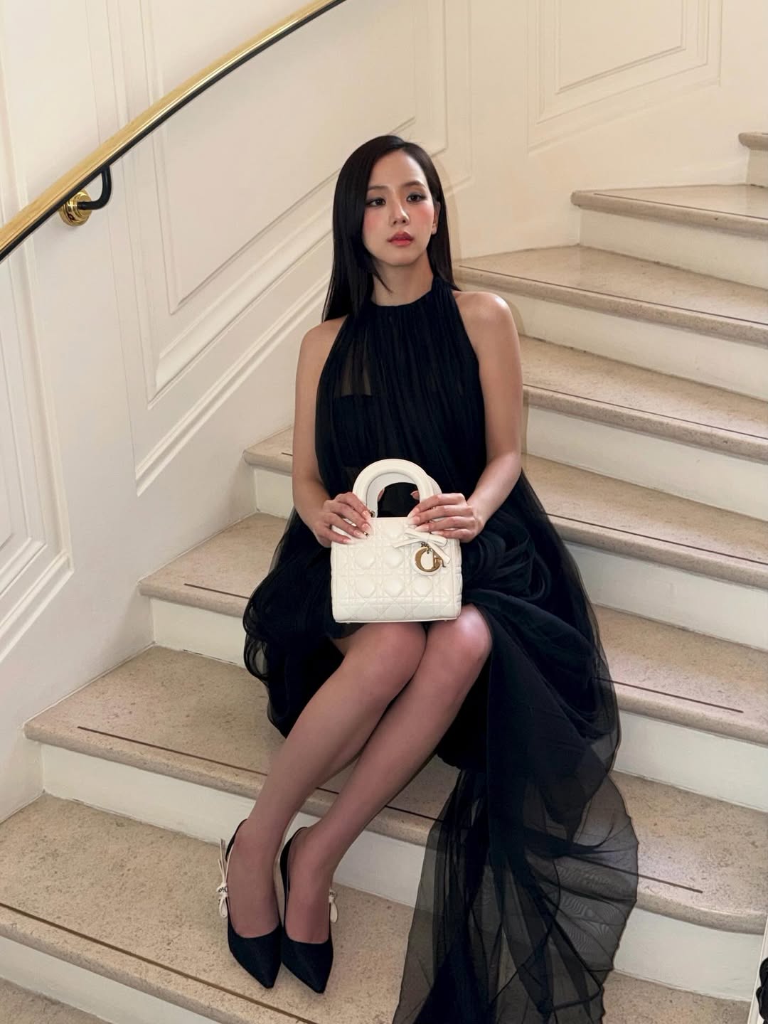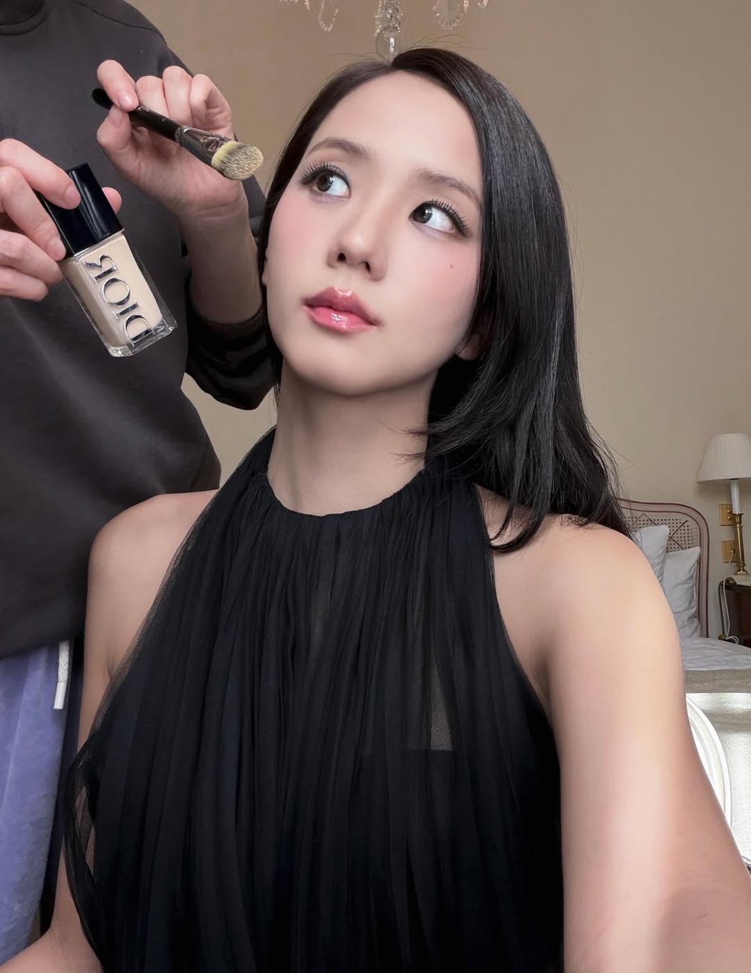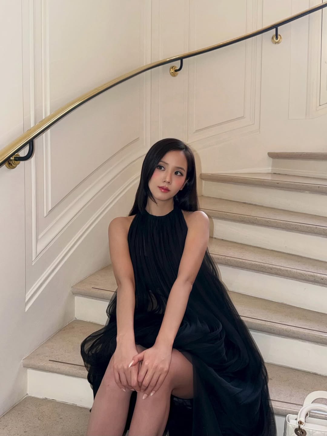 Dior 品牌大使 Jisoo 以一身黑色洋裝優雅現身,這一套來自 2026–2027 秋冬系列的黑色百褶絲質,削肩搭配 A 字剪裁,下擺為不對稱設計,帶點透膚感的絲質為造型增添一絲性感,搭配黑色尖頭跟鞋,造型簡約優雅。這天 Jisoo 的妝容更是畫龍點睛的一筆,以銀灰色眼妝搭配粉嫩頰彩,柔美與個性並存,清清淡淡的卻散發精緻高級的氣場。