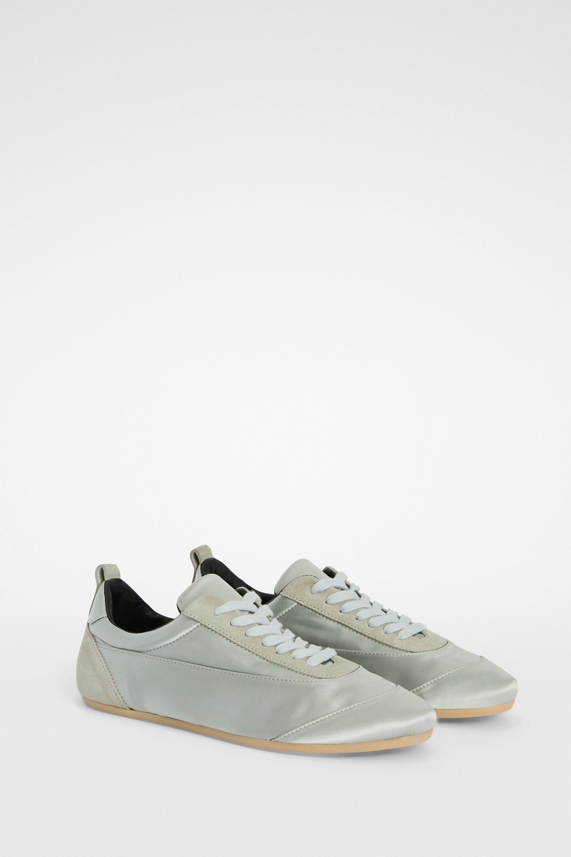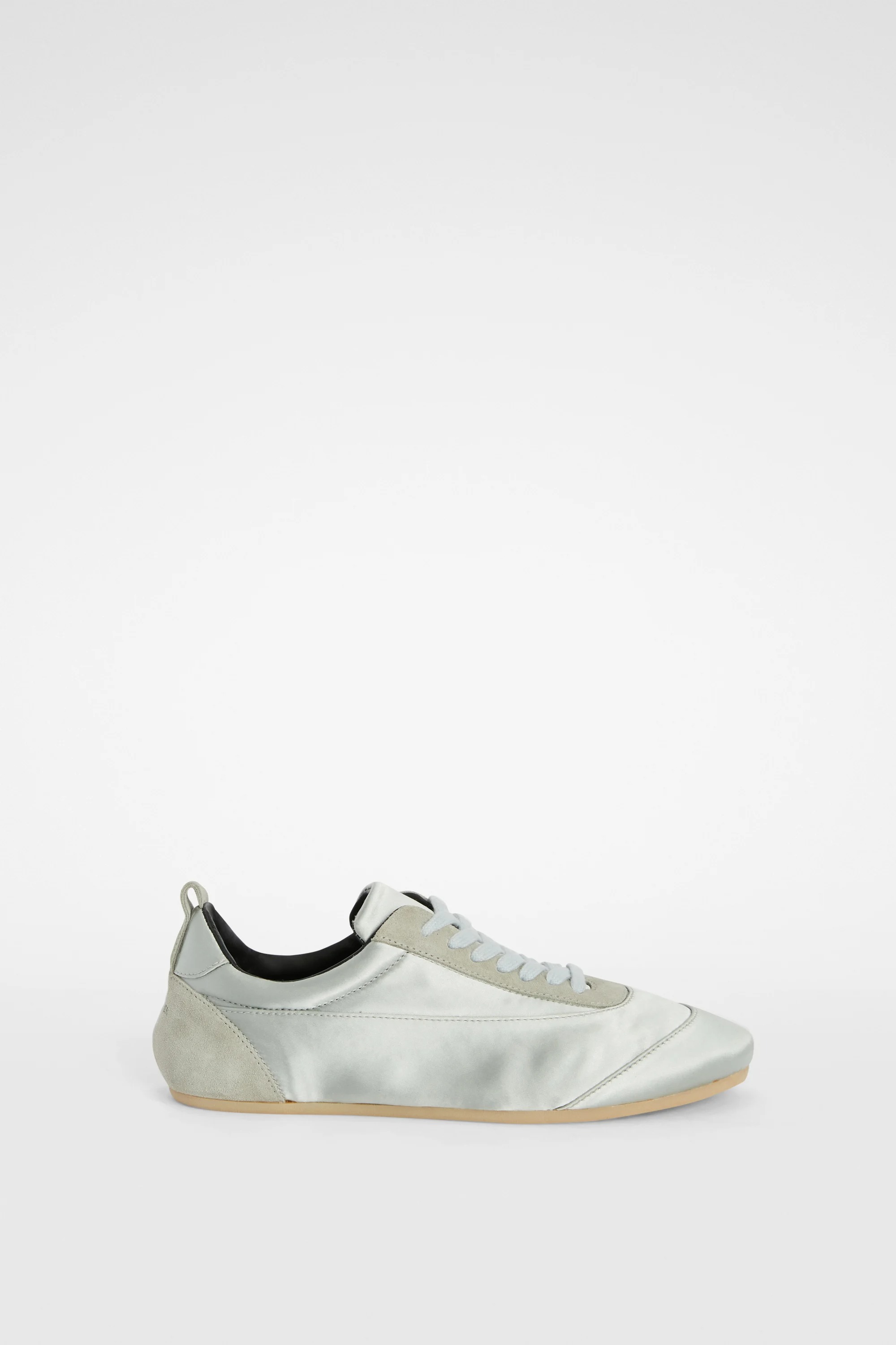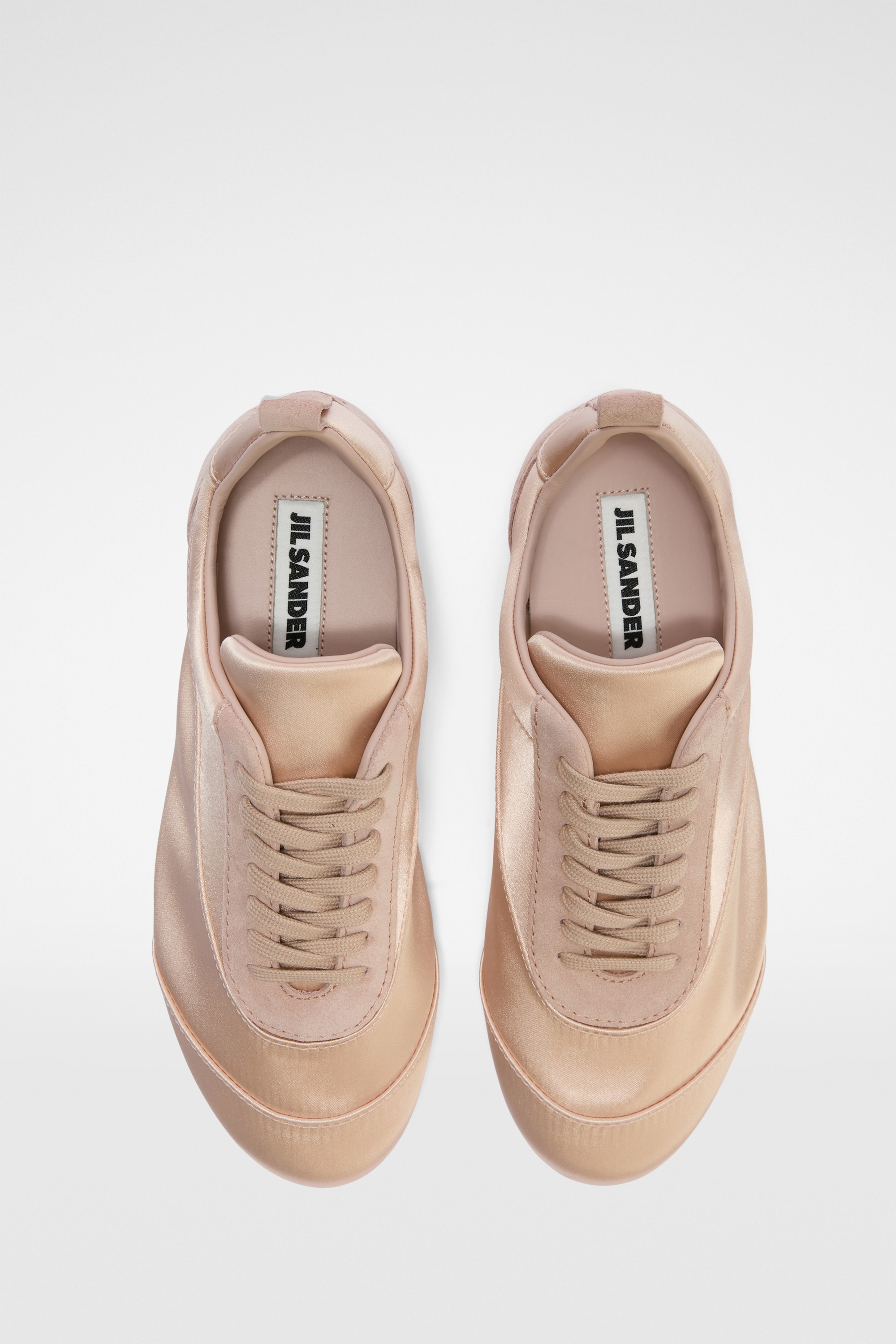 Jil Sander 這款 Etage 運動鞋以緞面材質為主體,為原本俐落的輪廓注入細膩光澤。鞋型延續品牌一貫的極簡語言,線條乾淨流暢,沒有多餘裝飾,但緞面的柔和質感又為整體增添了一絲輕盈與浪漫氣息。
