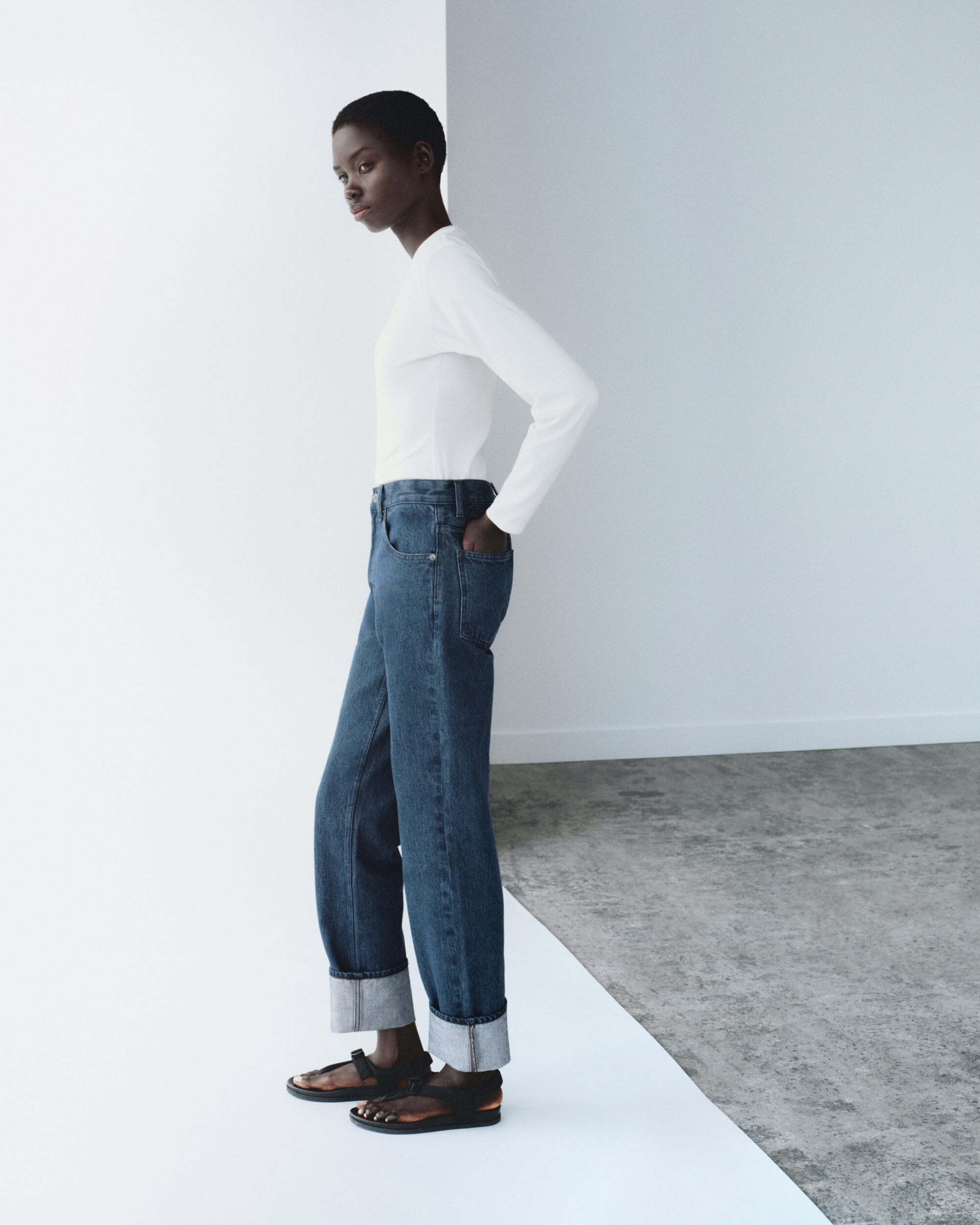 長褲部分則推薦「新款寬版錐形牛仔褲」,有著仿舊刷色與微錐剪裁,融入工裝口袋與車縫線細節;以及「女裝高腰直筒長褲」以俐落西裝輪廓延續 Lemaire 一貫的極簡設計語彙。