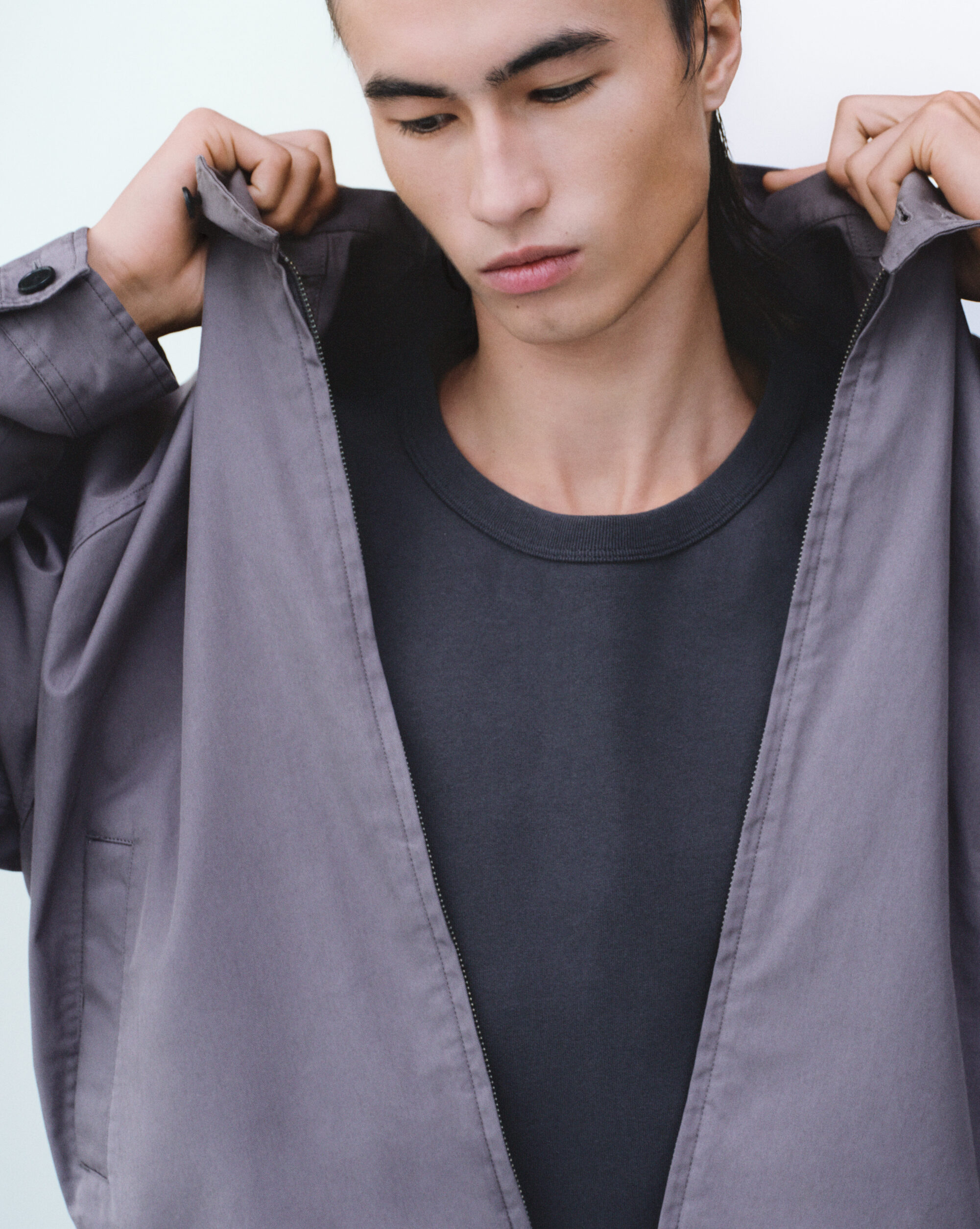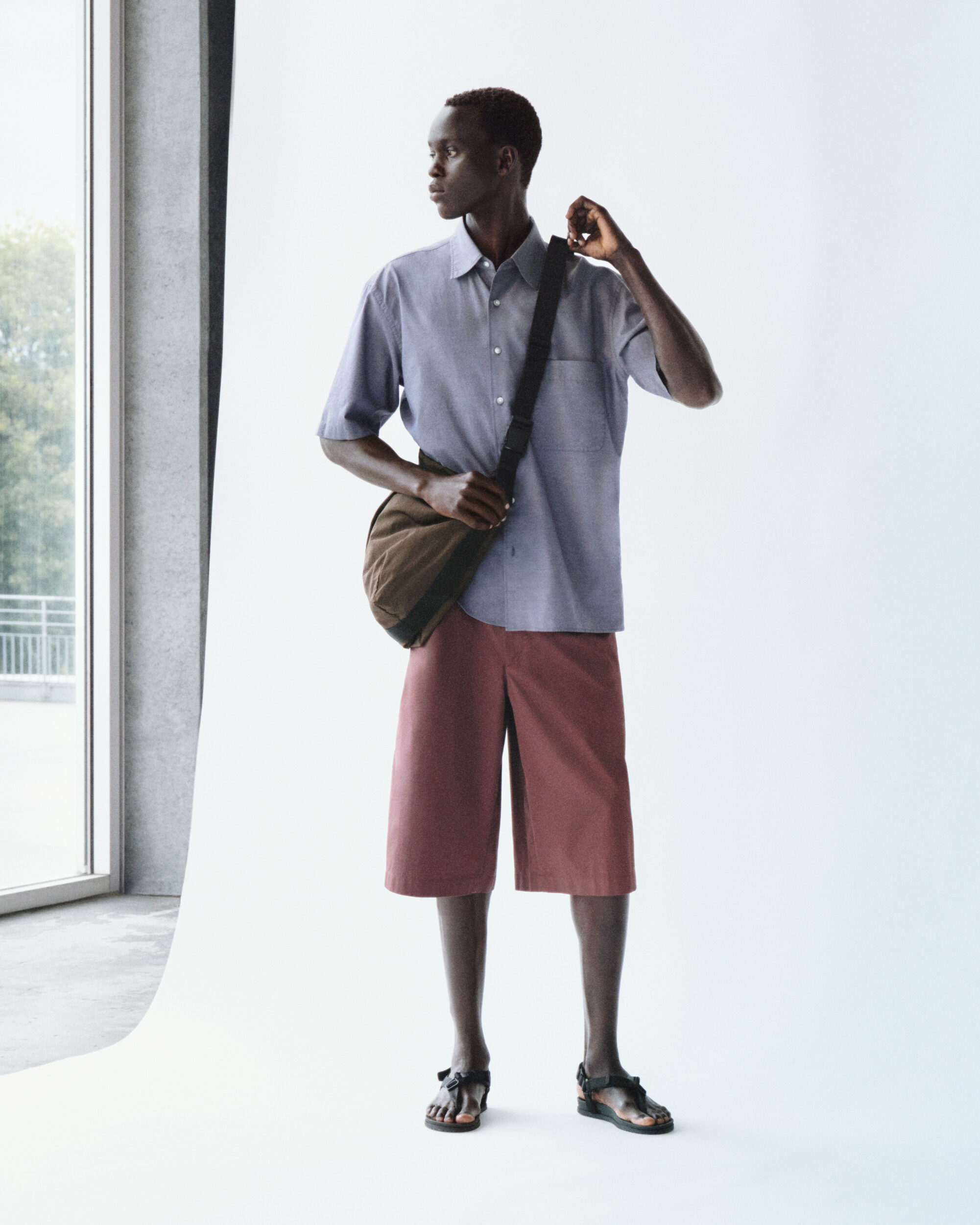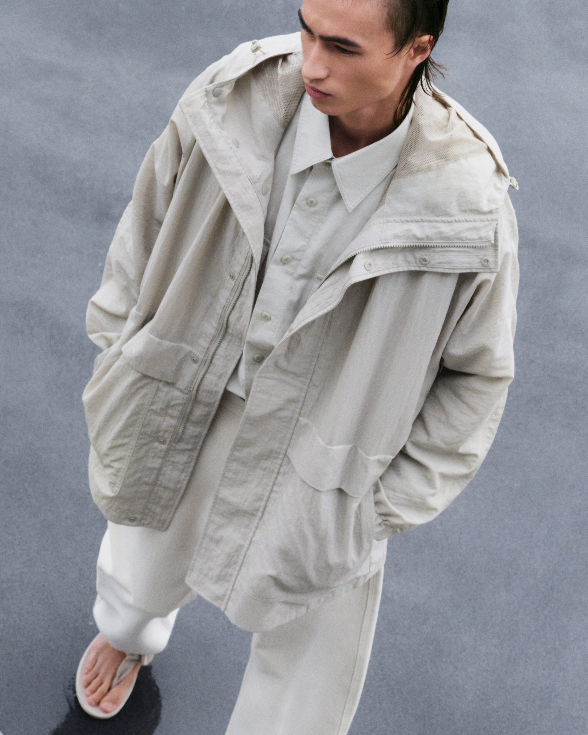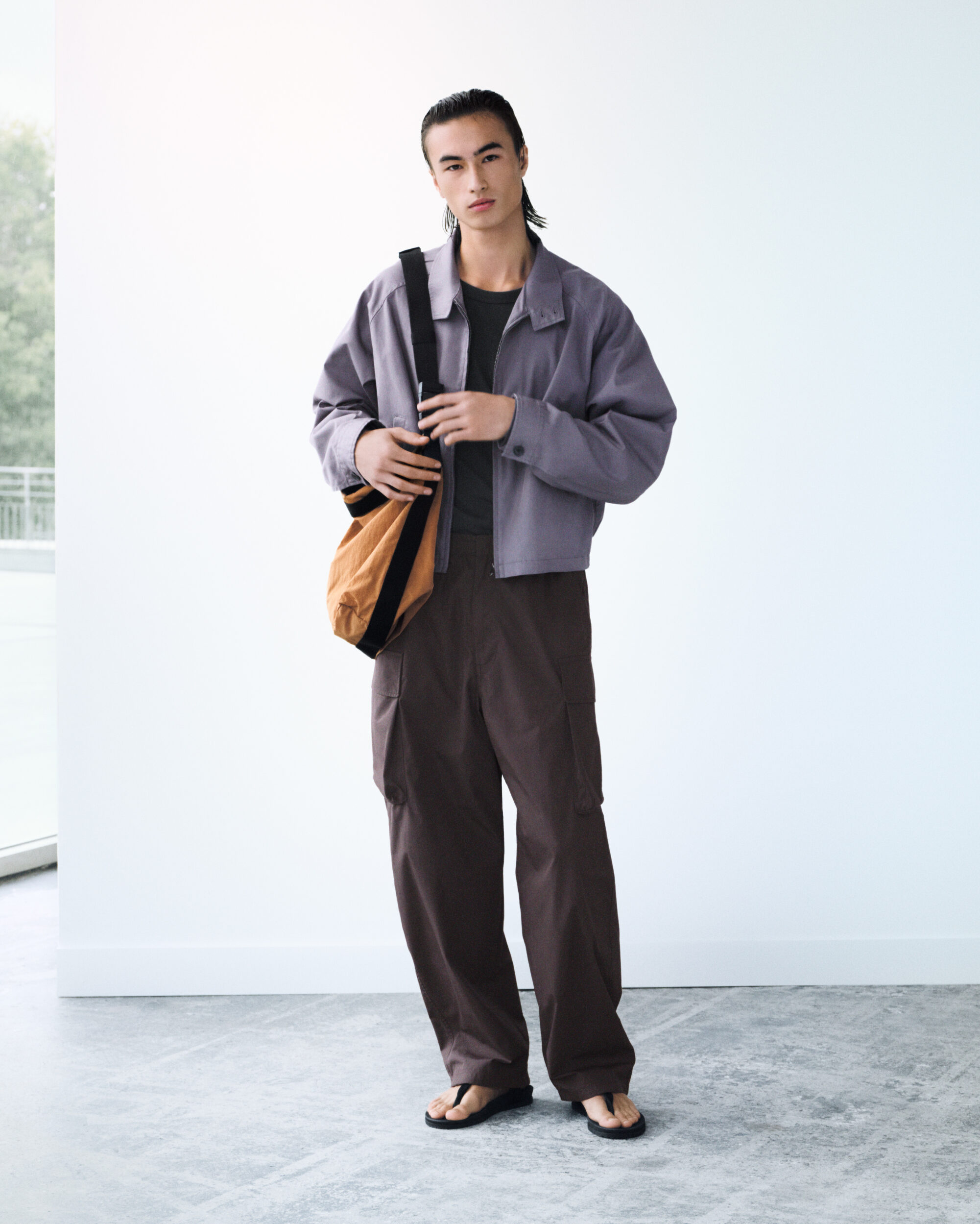 男裝寬版襯衫採用 100% 純棉方格紋布料,搭配霧面光澤鈕釦,風格極簡俐落;還有春夏受歡迎的防曬機能單品,100% 輕量尼龍打造,具備優良UPF50+抗UV 與防潑水機能,展現率性姿態。