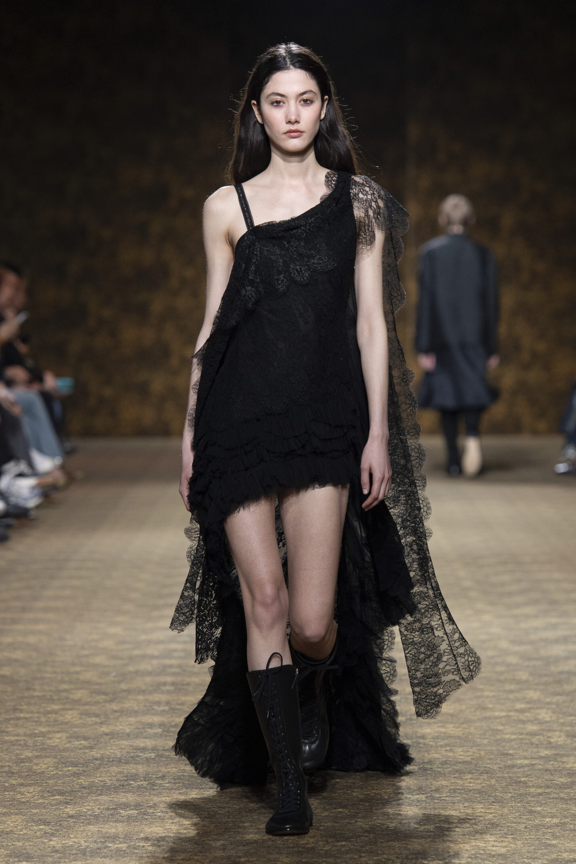 SHIATZY CHEN 在 2026 秋冬系列的秀場空間,如一幅穿越大唐的流動畫卷:宮廷的出遊、山水的行旅,隨模特兒步伐徐徐展開,衣裳飄逸,線條與色彩呼應盛世氣象,書寫著當代的盛唐風華。