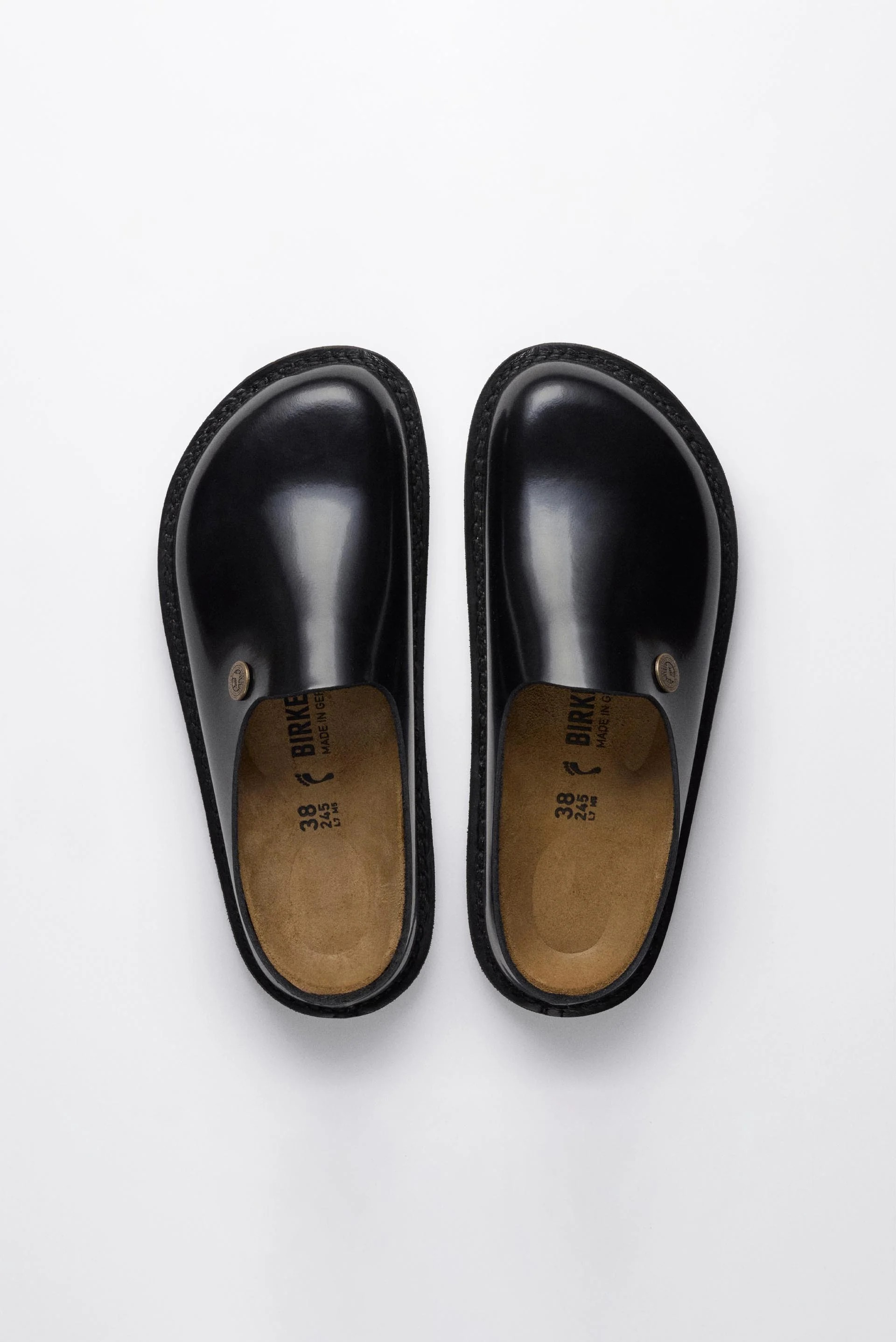 最後 Collector 為 Amsterdam鞋型,以拋光黑色皮革勾勒出俐落線條,搭配壓印 Birkenstock 字樣,風格簡約耐看。
