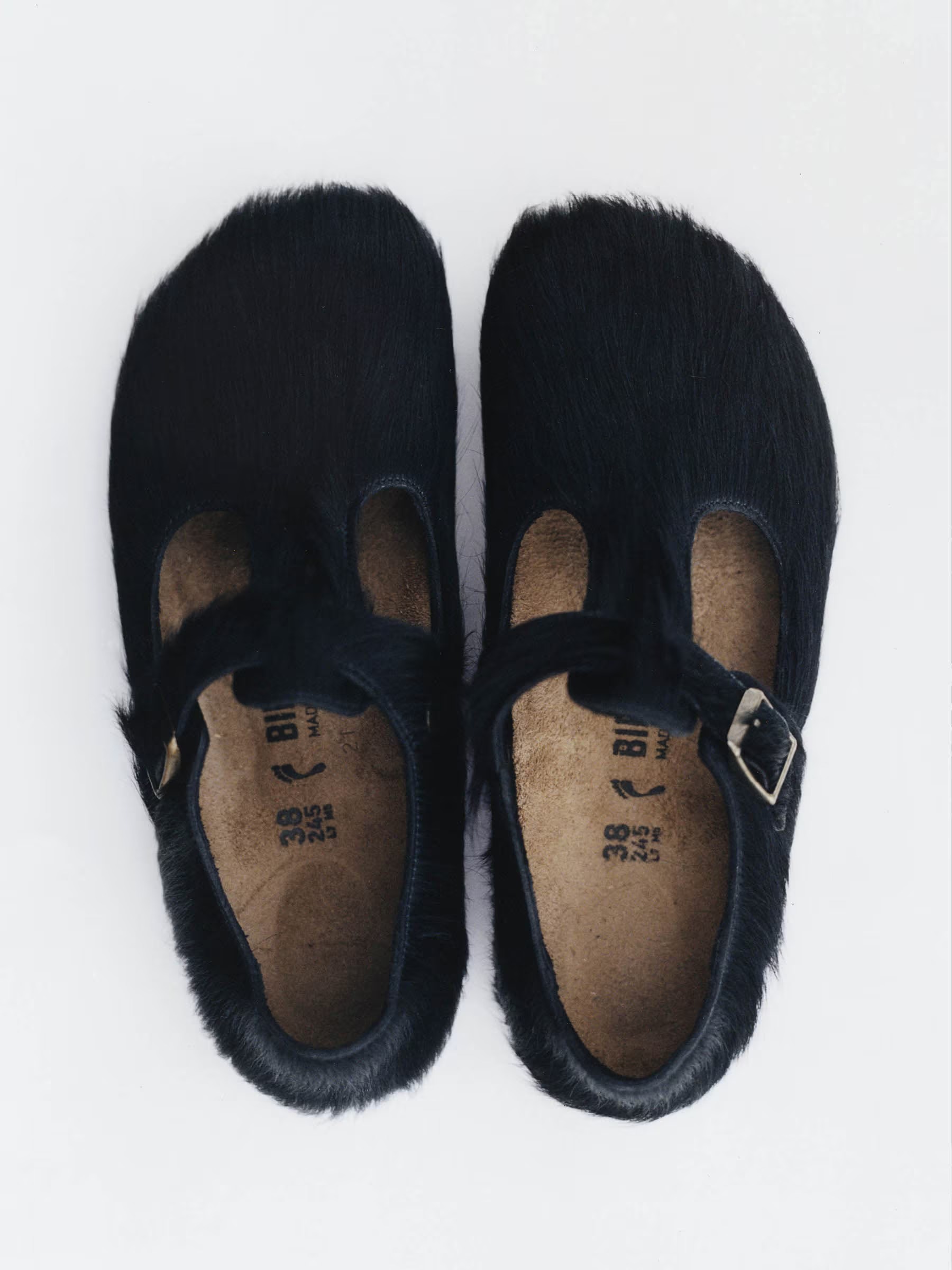 Rebel 以 Paris 的瑪莉珍鞋為基礎,採用黑色小馬毛打造,搭配標誌性扣環,風格帶點暗黑叛逆。