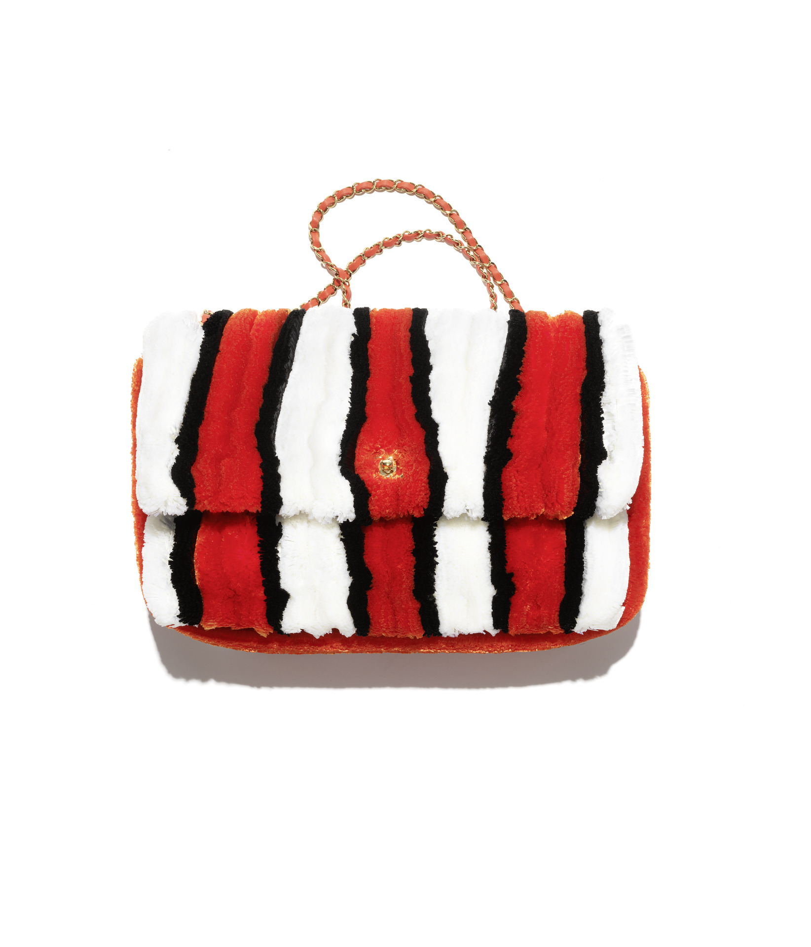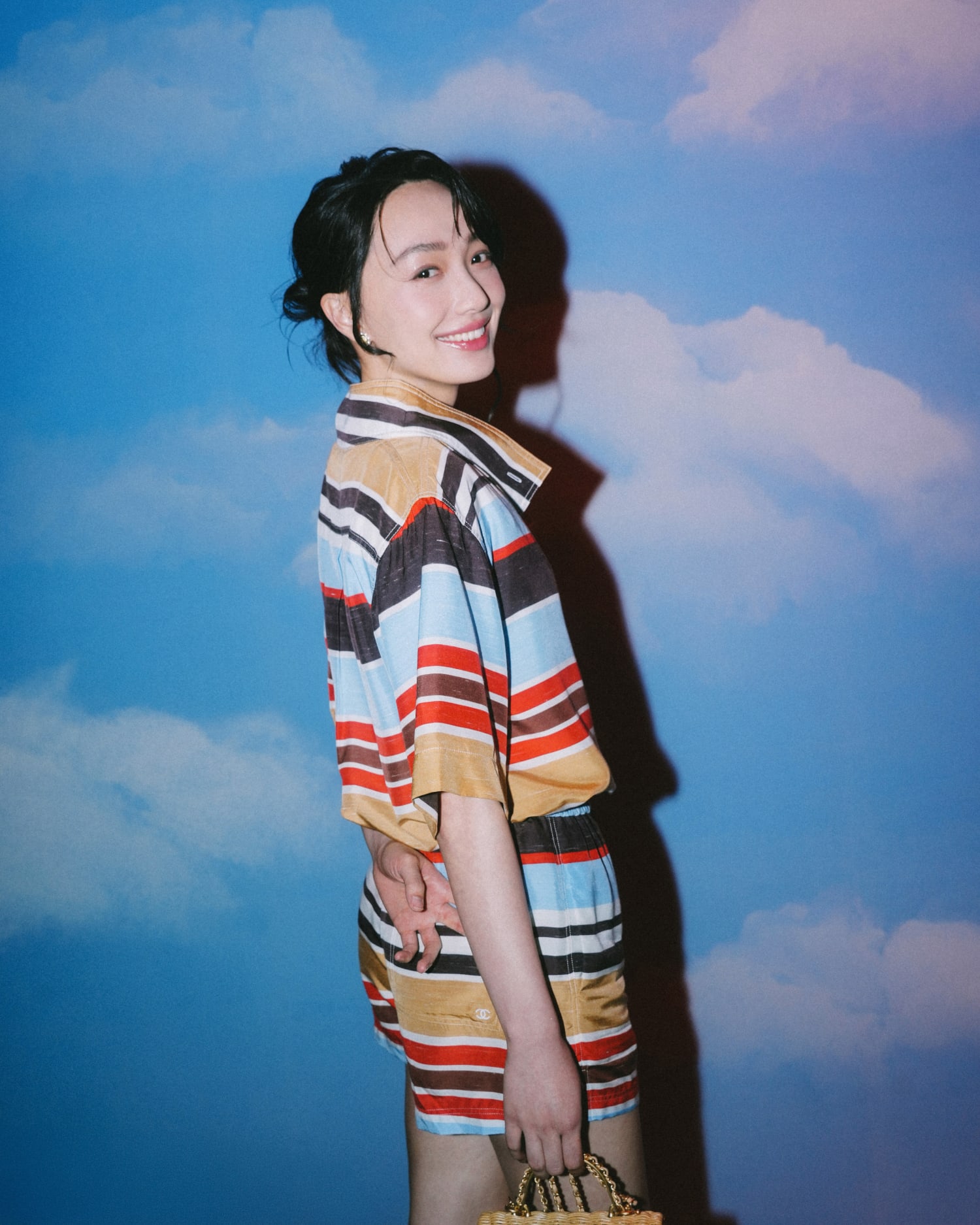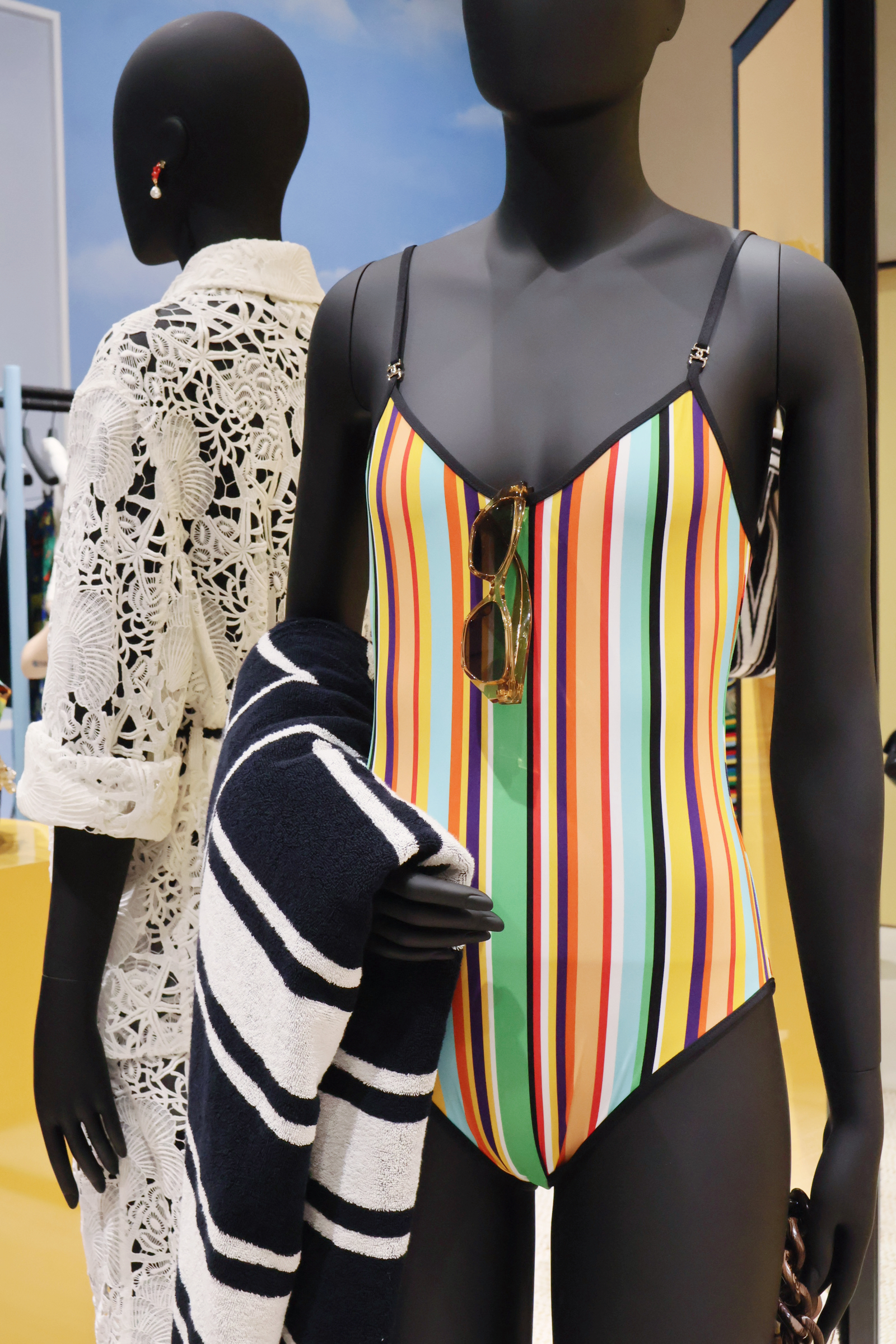 不僅如此,Gabrielle Chanel 在 1910 年代在法國海邊受到水手與漁夫穿著的「布列塔尼條紋上衣」(Breton stripe)啟發,將這個原本屬於男性的功能性服裝轉化為休閒女裝的典故,也讓 Matthieu Blazy 獲得靈感,成為本次 Coco Beach 系列中的多款彩色條紋單品。